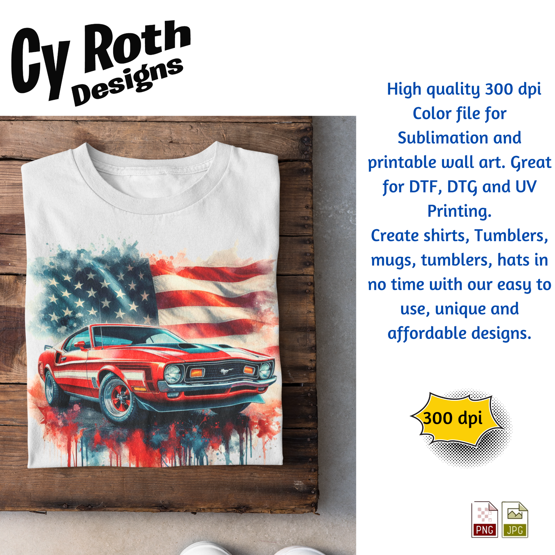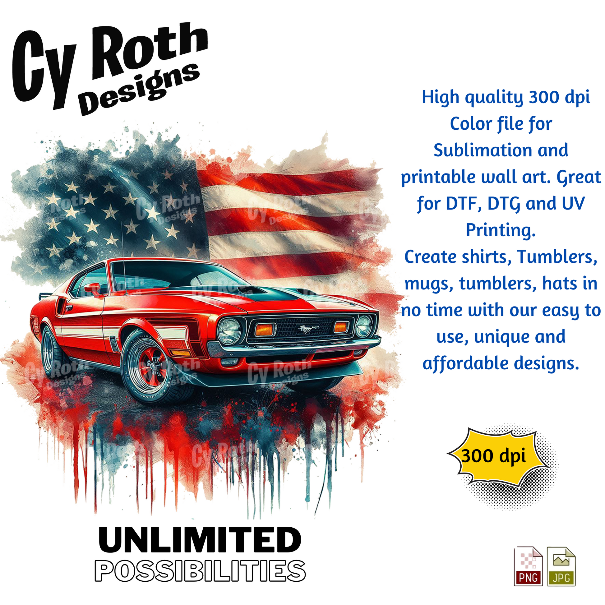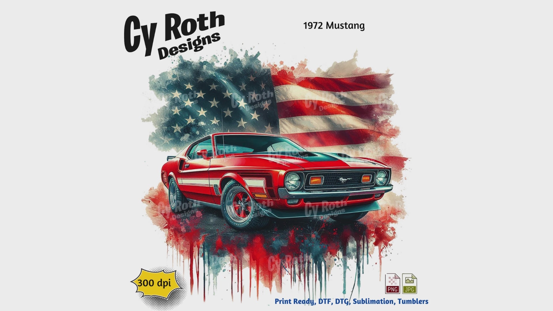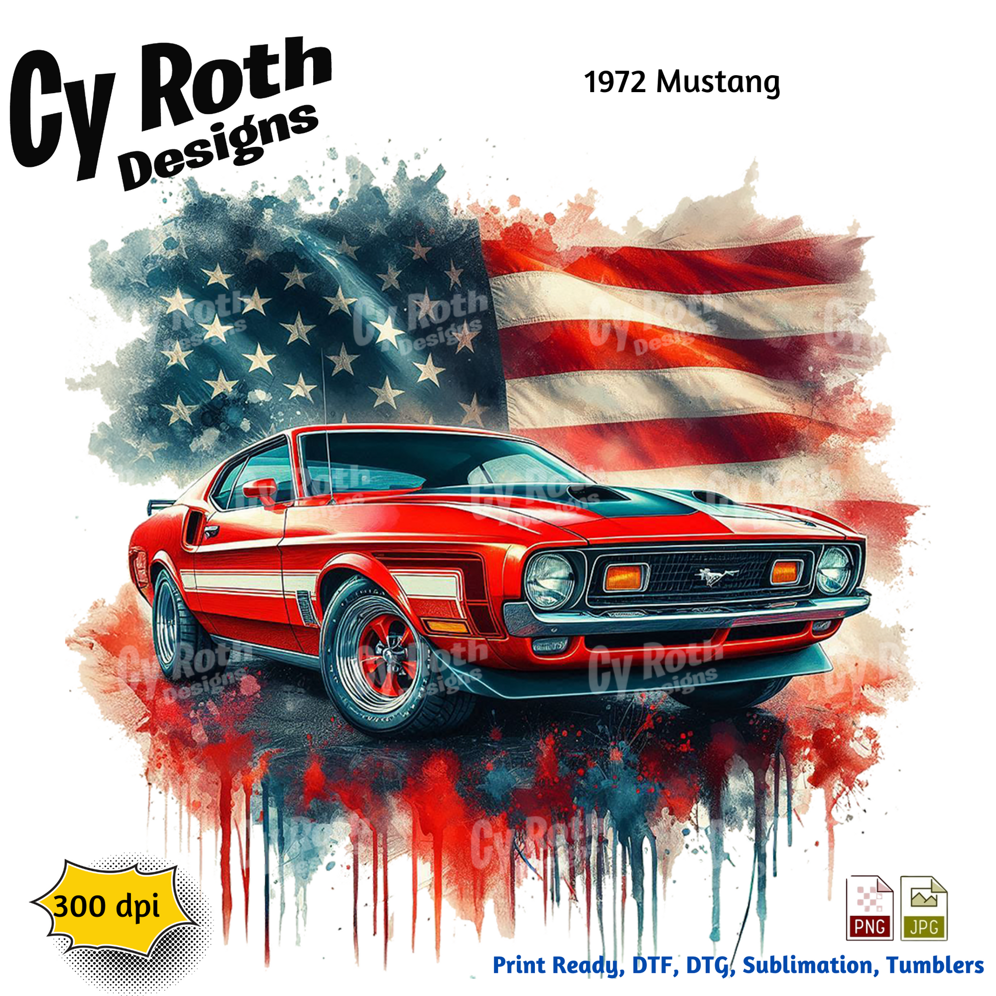 1972 Ford Mustang sublimation file to make tumblers, t-Shirts, Printable Wall Art, Sweatshirts. Great to make personalized gifts. Popular junk journal image also.
