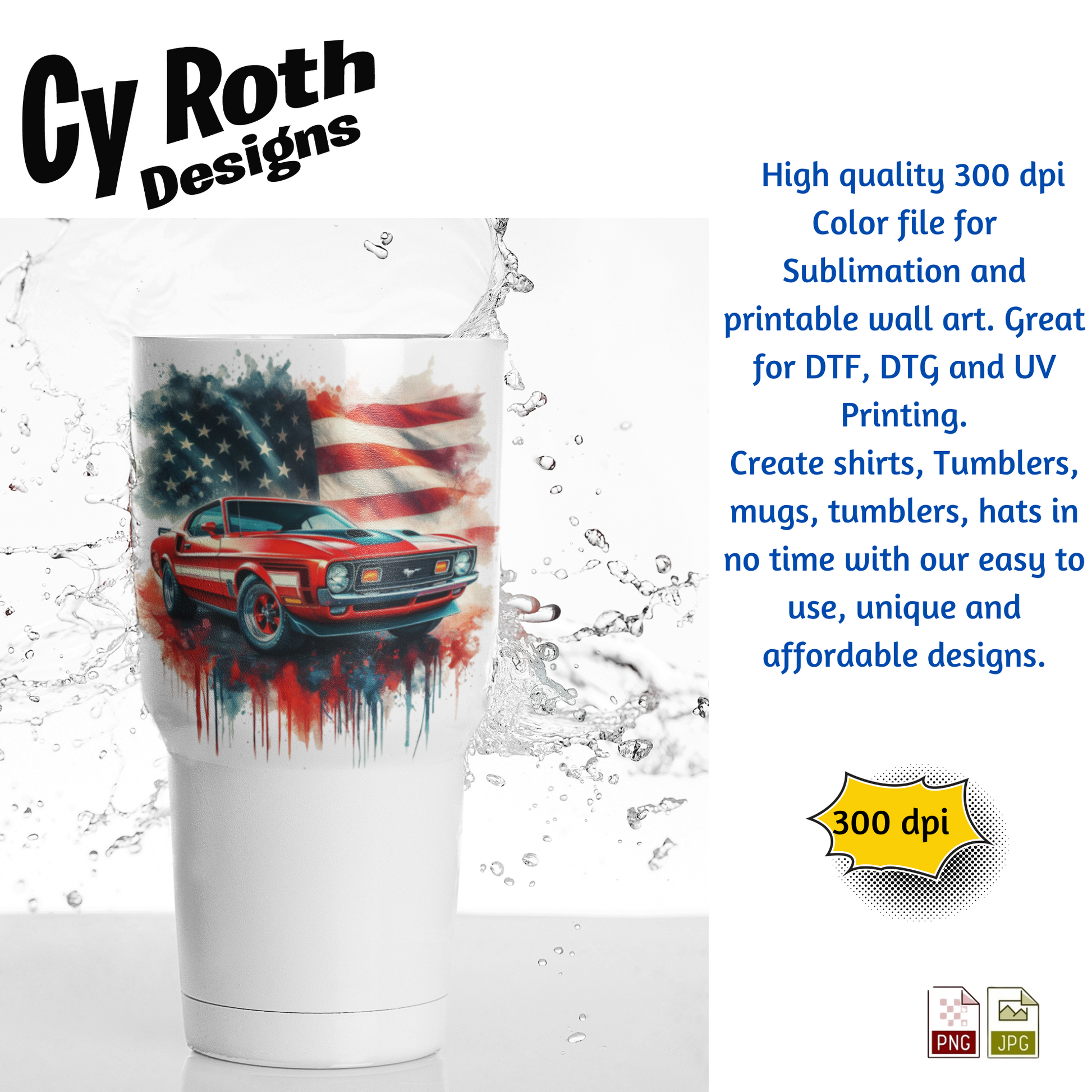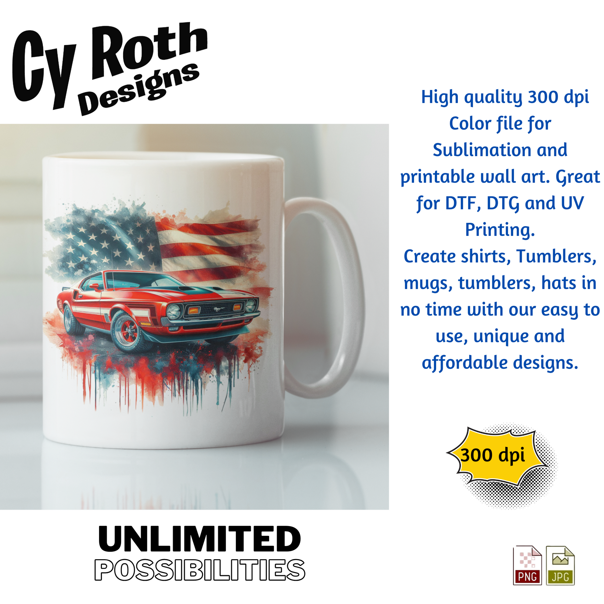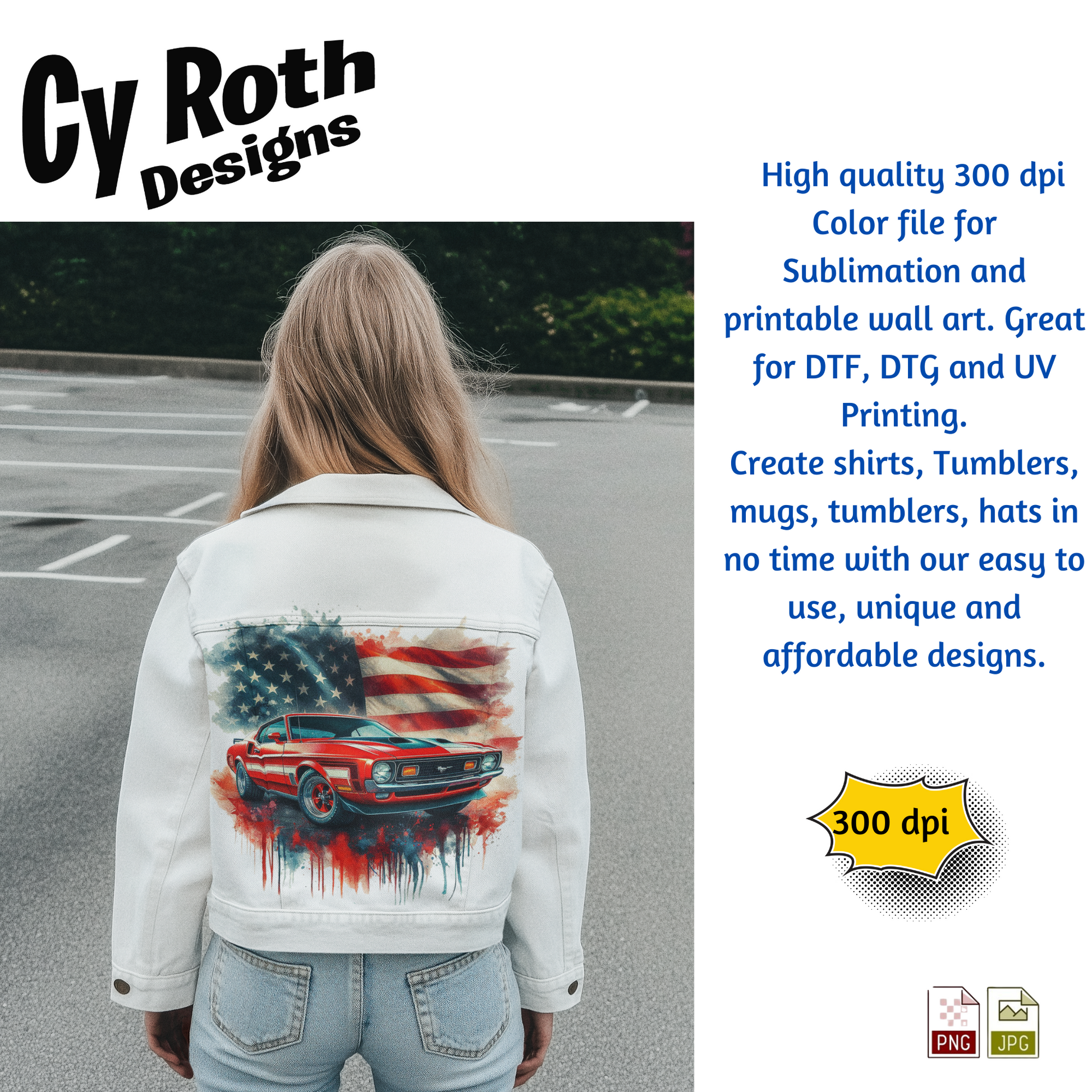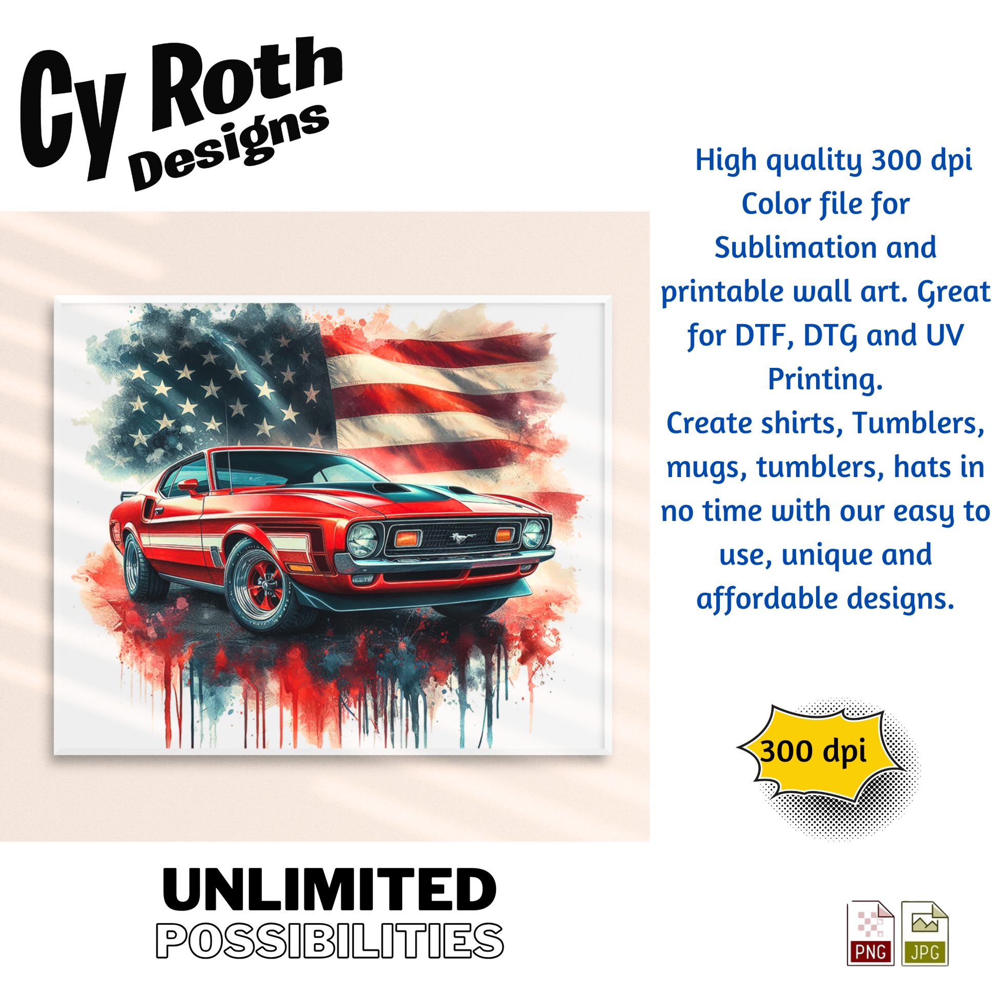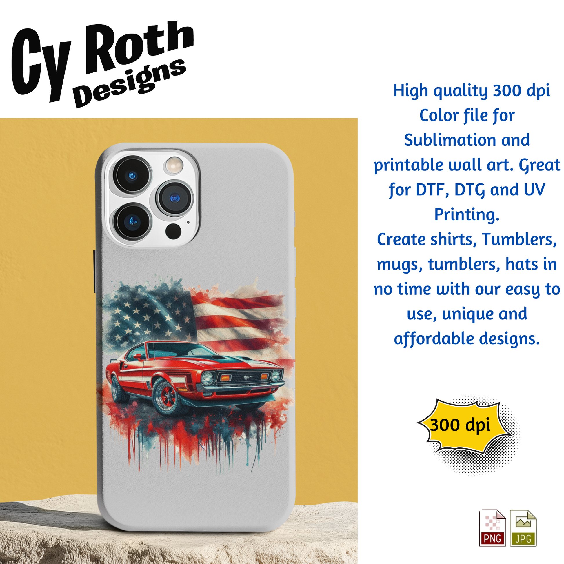 1972 Ford Mustang sublimation file to make tumblers, t-Shirts, Printable Wall Art, Sweatshirts. Great to make personalized gifts. Popular junk journal image also.