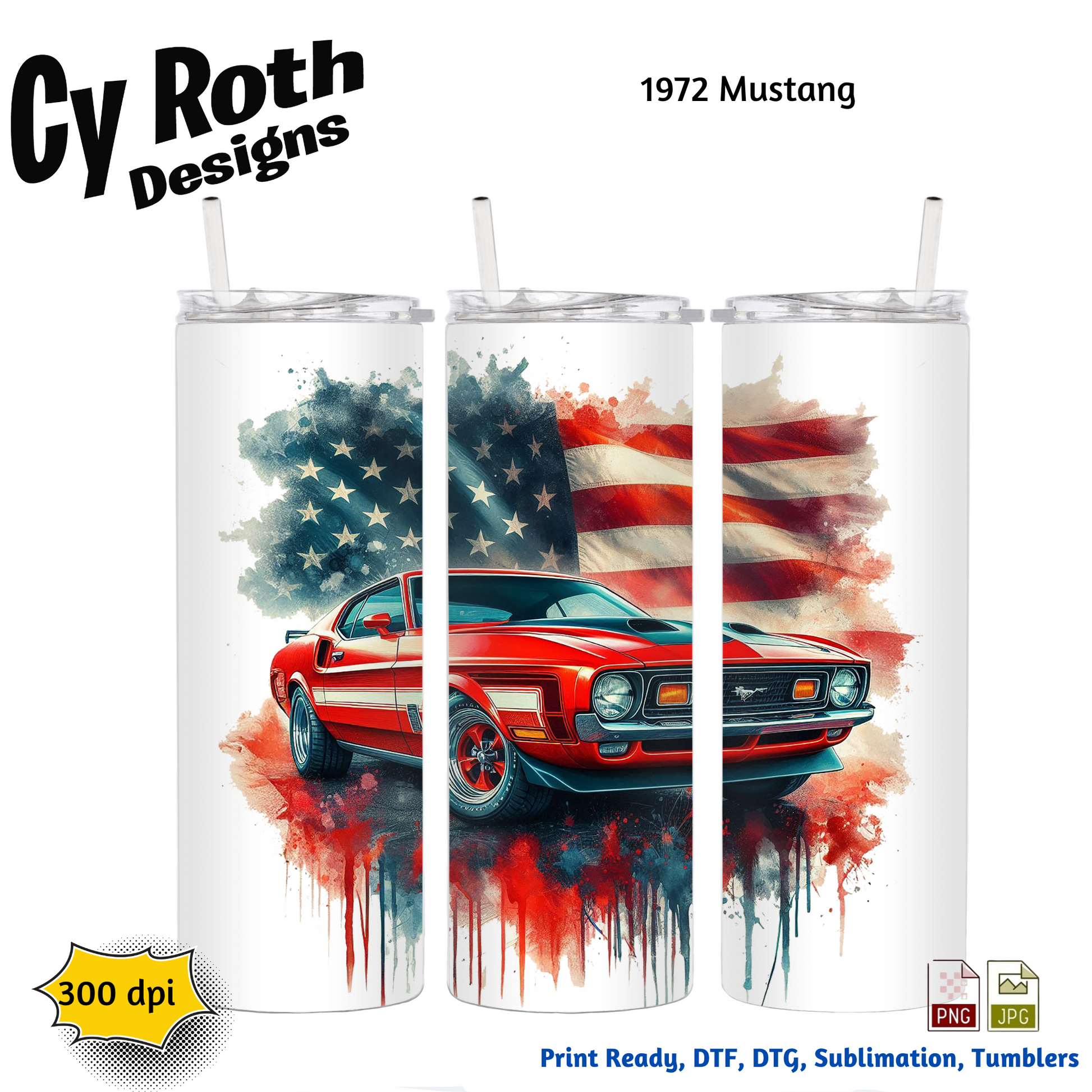 1972 Ford Mustang Sublimation Wall Art 20oz skinny Tumbler PNG JPG file, shirt PNG, Junk Journal image