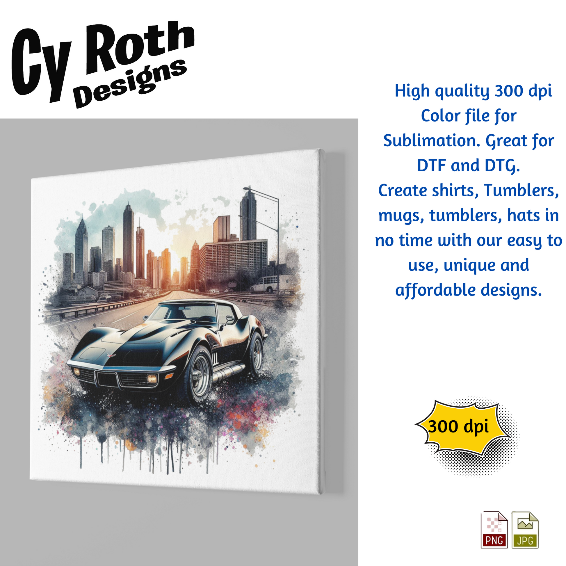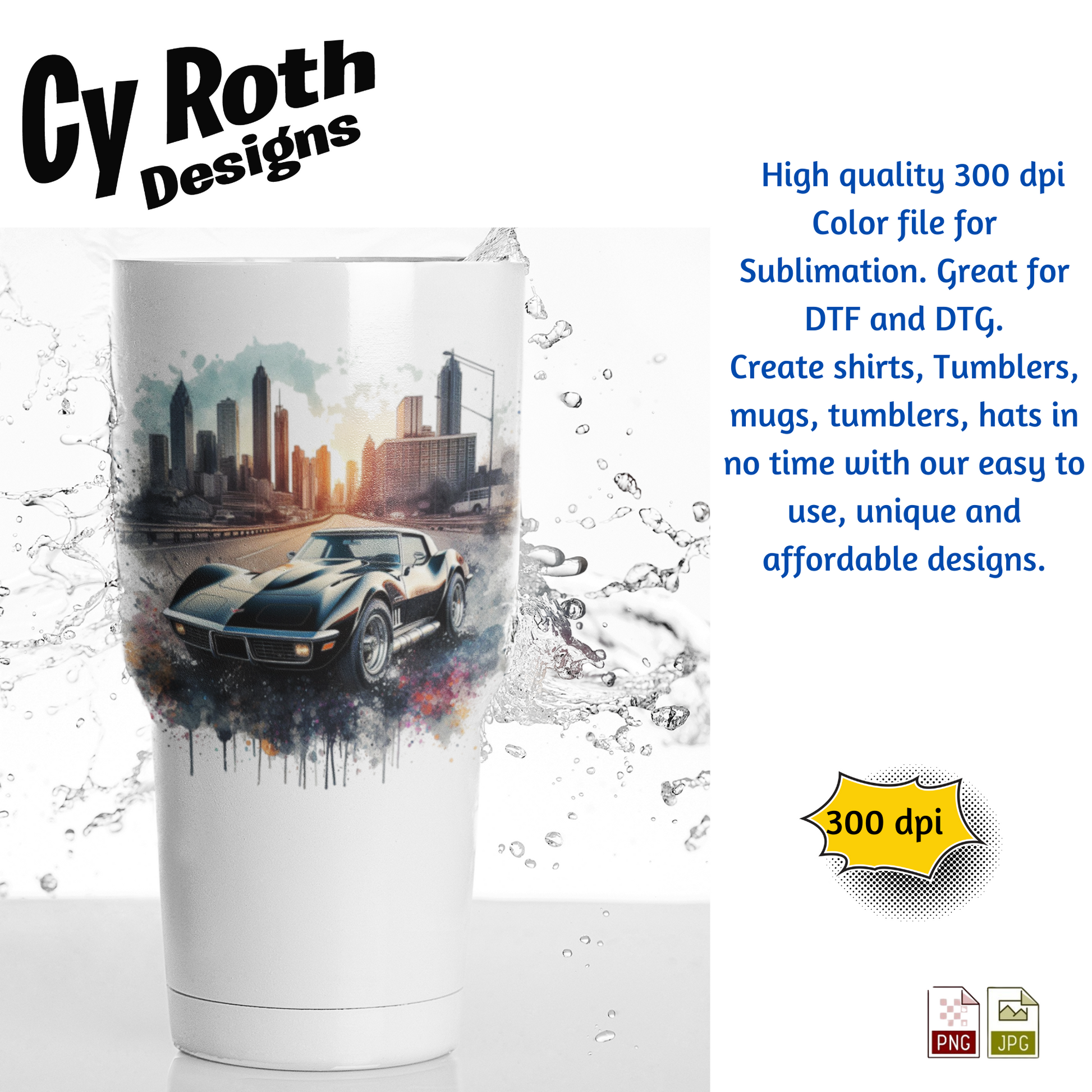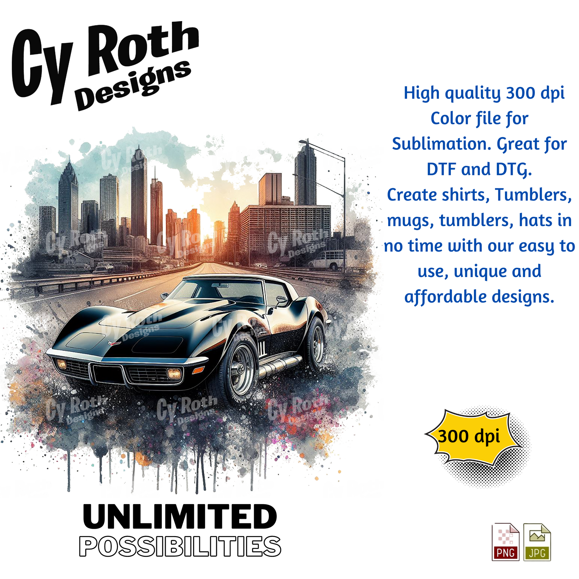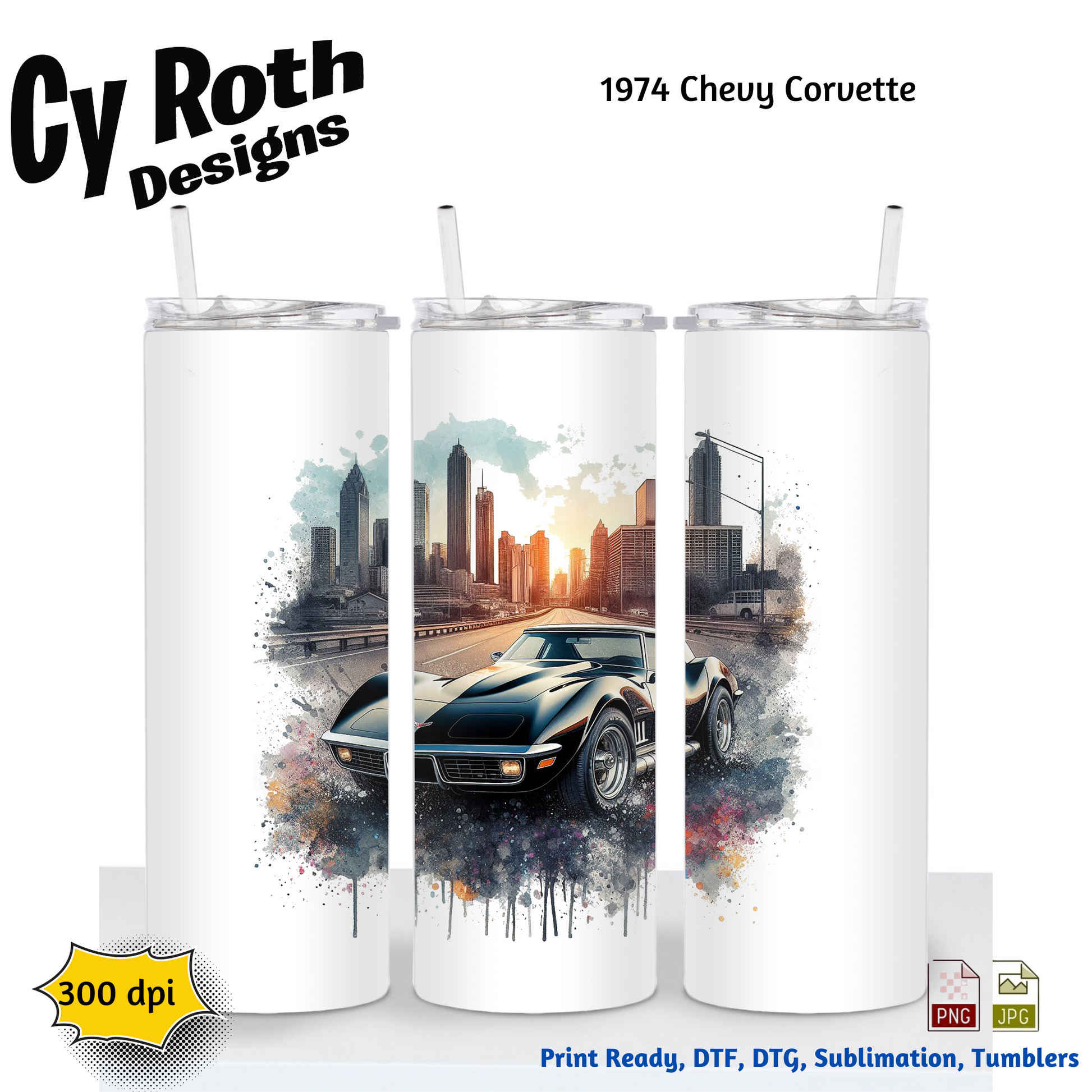 1974 Corvette Sublimation PNG JPG file, Wall Art 20oz skinny Tumbler, shirt PNG, Junk Journal image