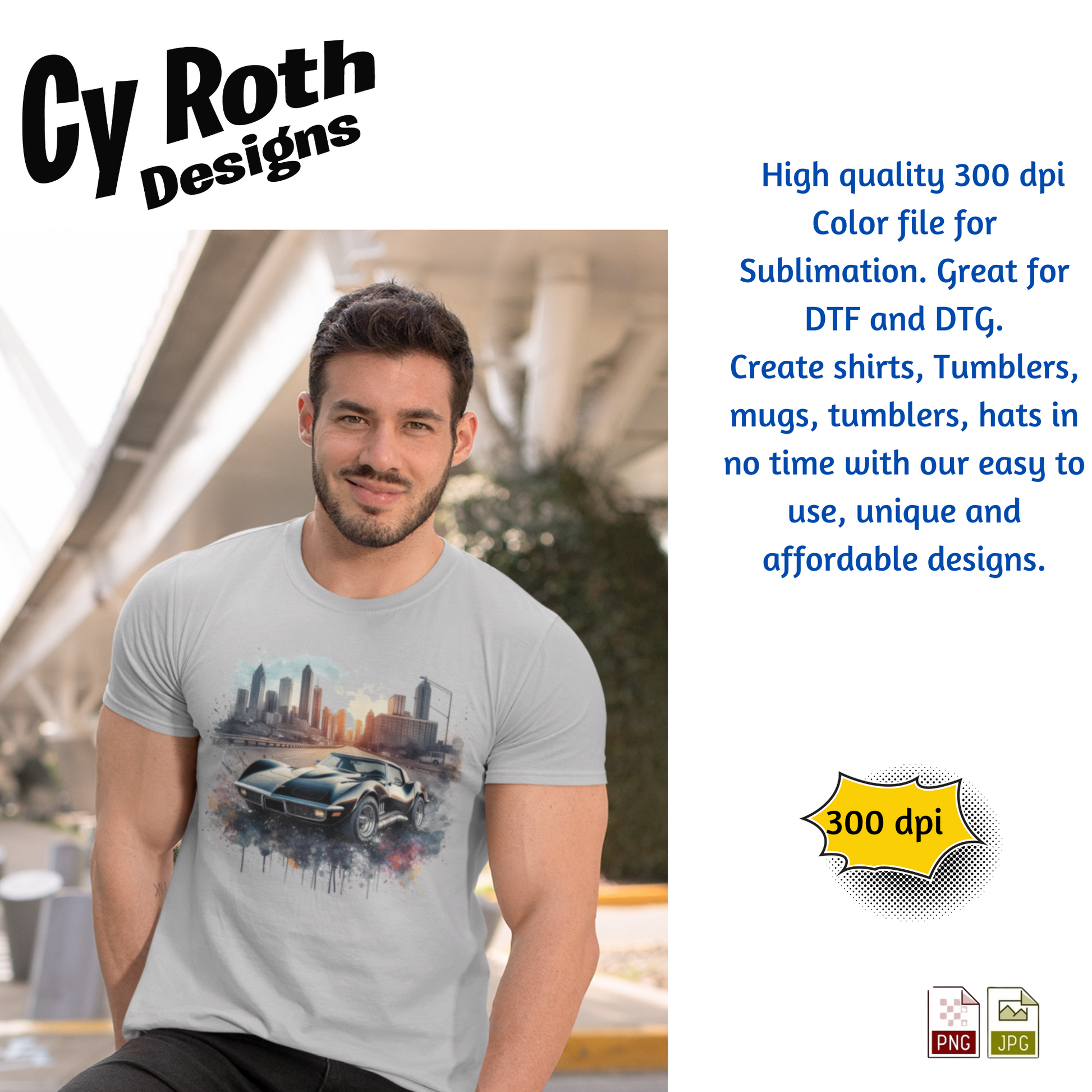 1974 Chevy Corvette sublimation file to make tumblers, t-Shirts, Printable Wall Art, Sweatshirts. Great to make personalized gifts. Popular junk journal image also.