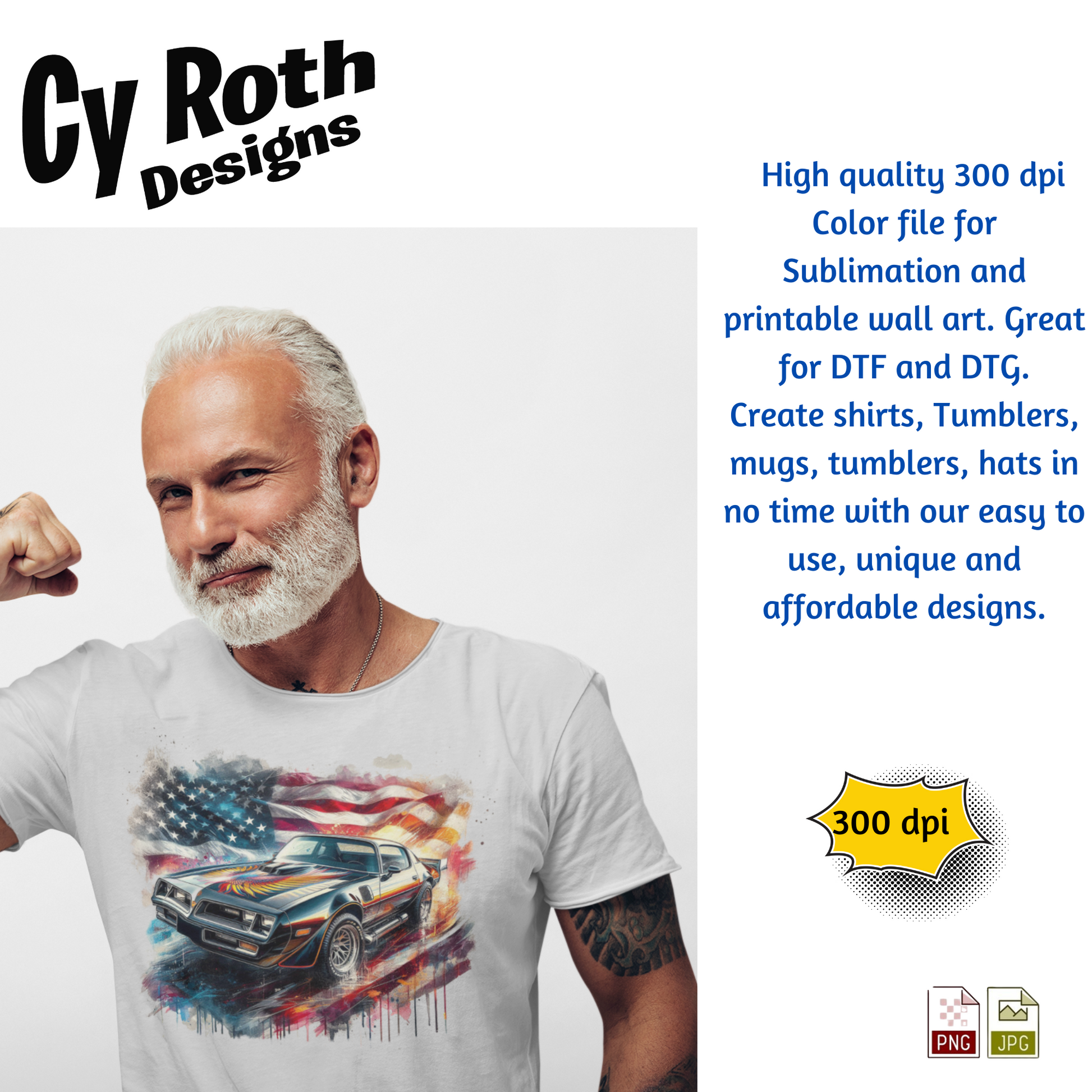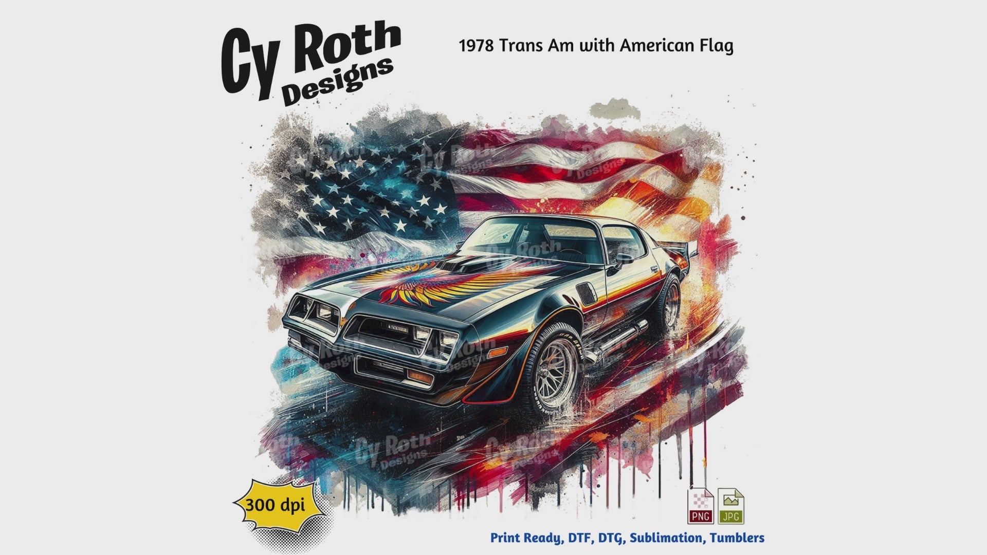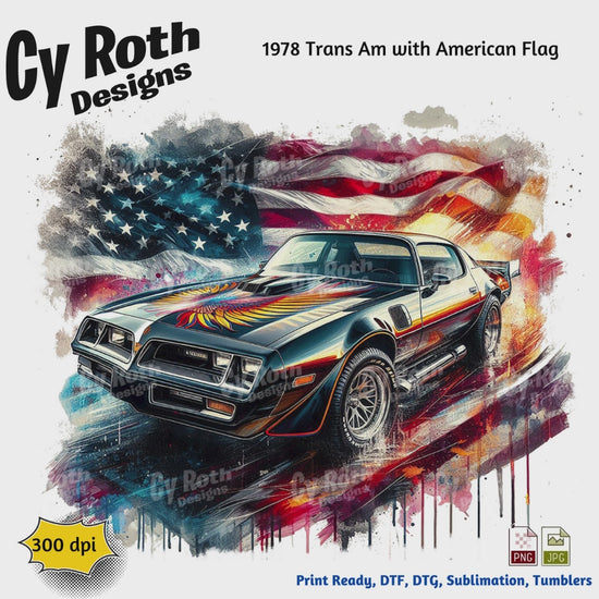 1978 Pontiac Trans Am with American Flag sublimation file to make tumblers, t-Shirts, Printable Wall Art, Sweatshirts. Great to make personalized gifts. Popular junk journal image also.