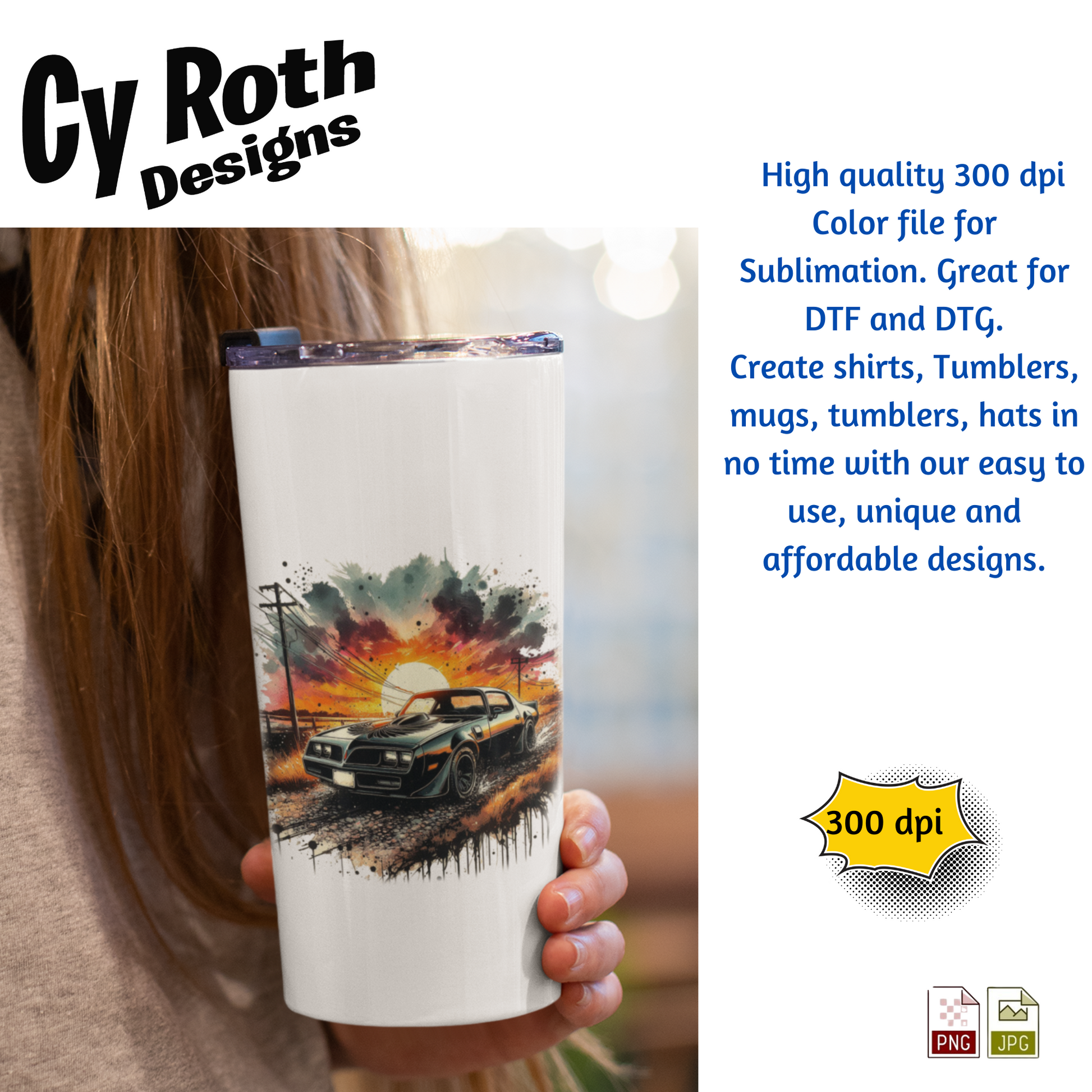 1978 Trans Am Sublimation PNG JPG file, Wall Art 20oz skinny Tumbler, shirt PNG, Junk Journal image
