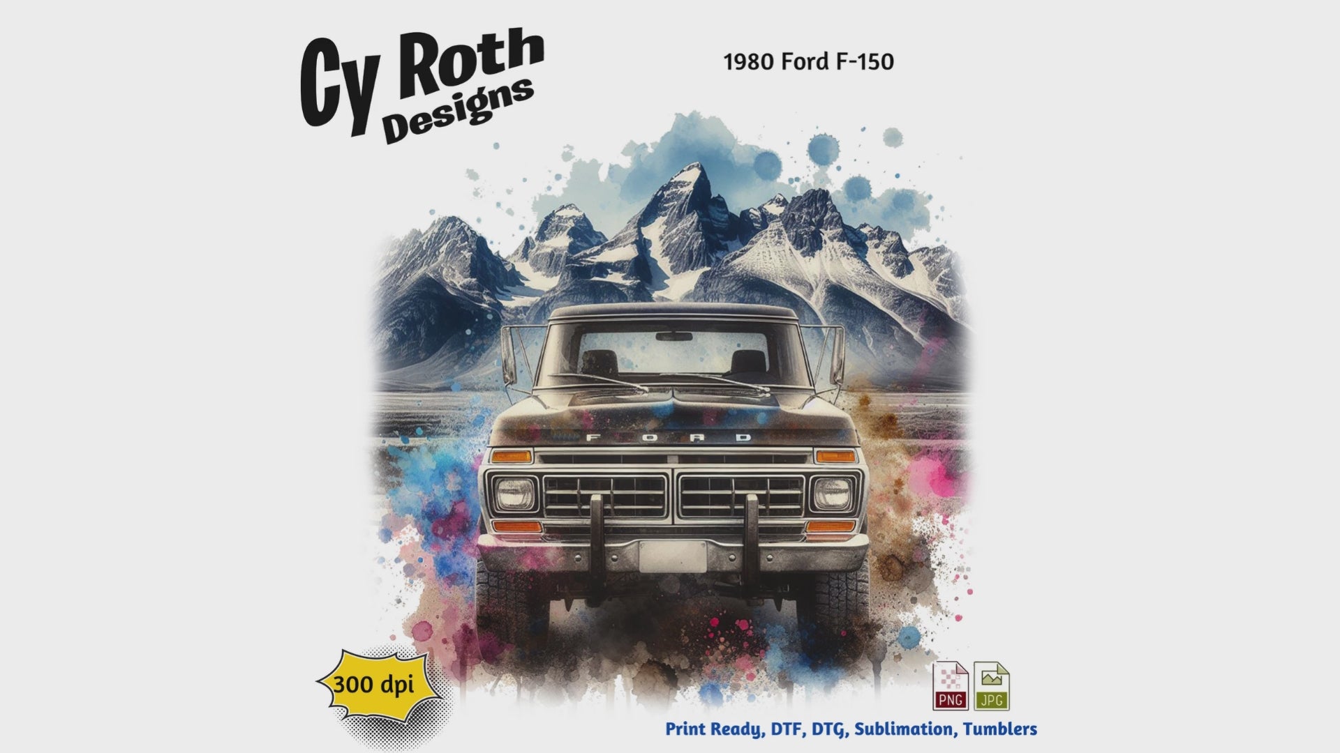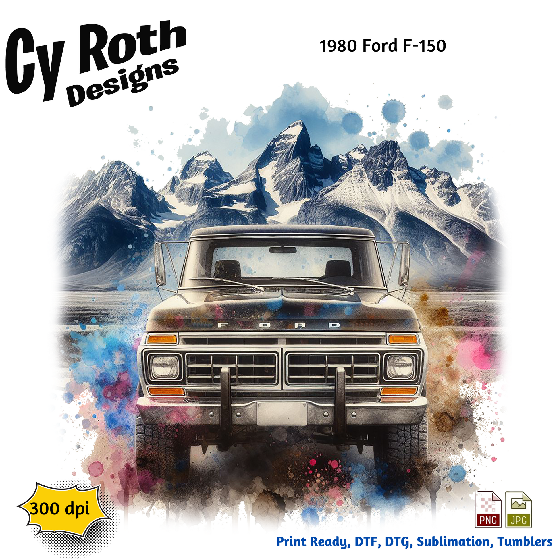 1980 Ford F-150 Sublimation PNG JPG file, Wall Art 20oz skinny Tumbler, shirt PNG, Junk Journal image