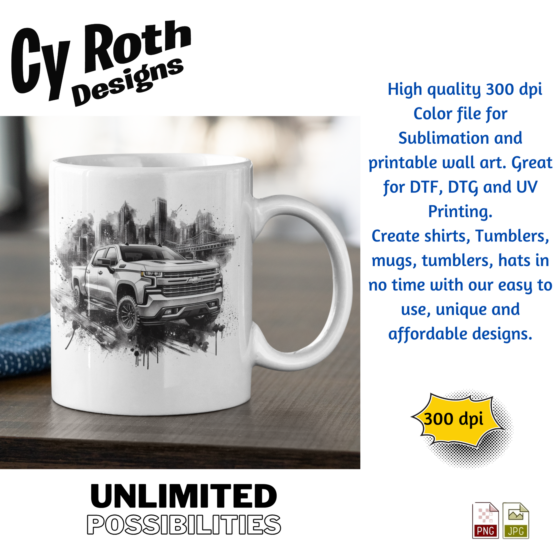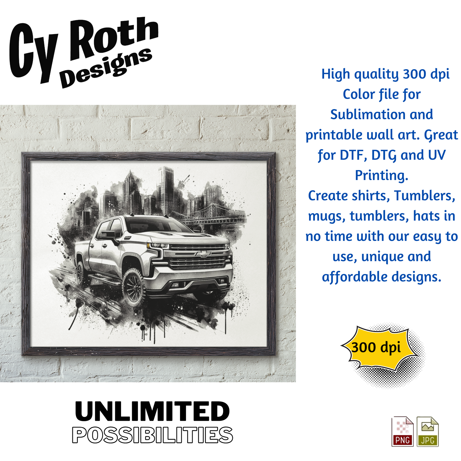 2019 Chevy Sliverado sublimation file to make tumblers, t-Shirts, Printable Wall Art, Sweatshirts. Great to make personalized gifts. Popular junk journal image also.