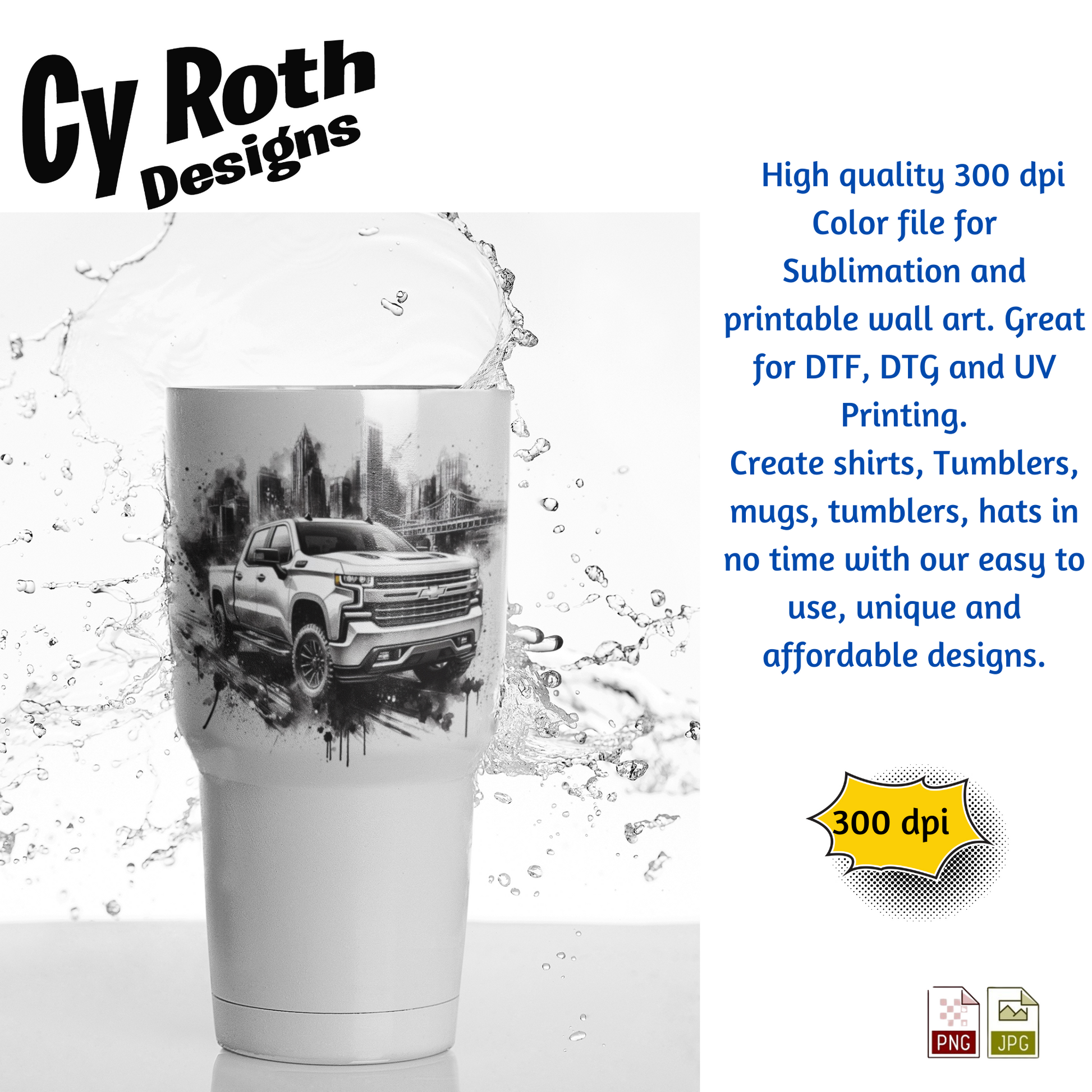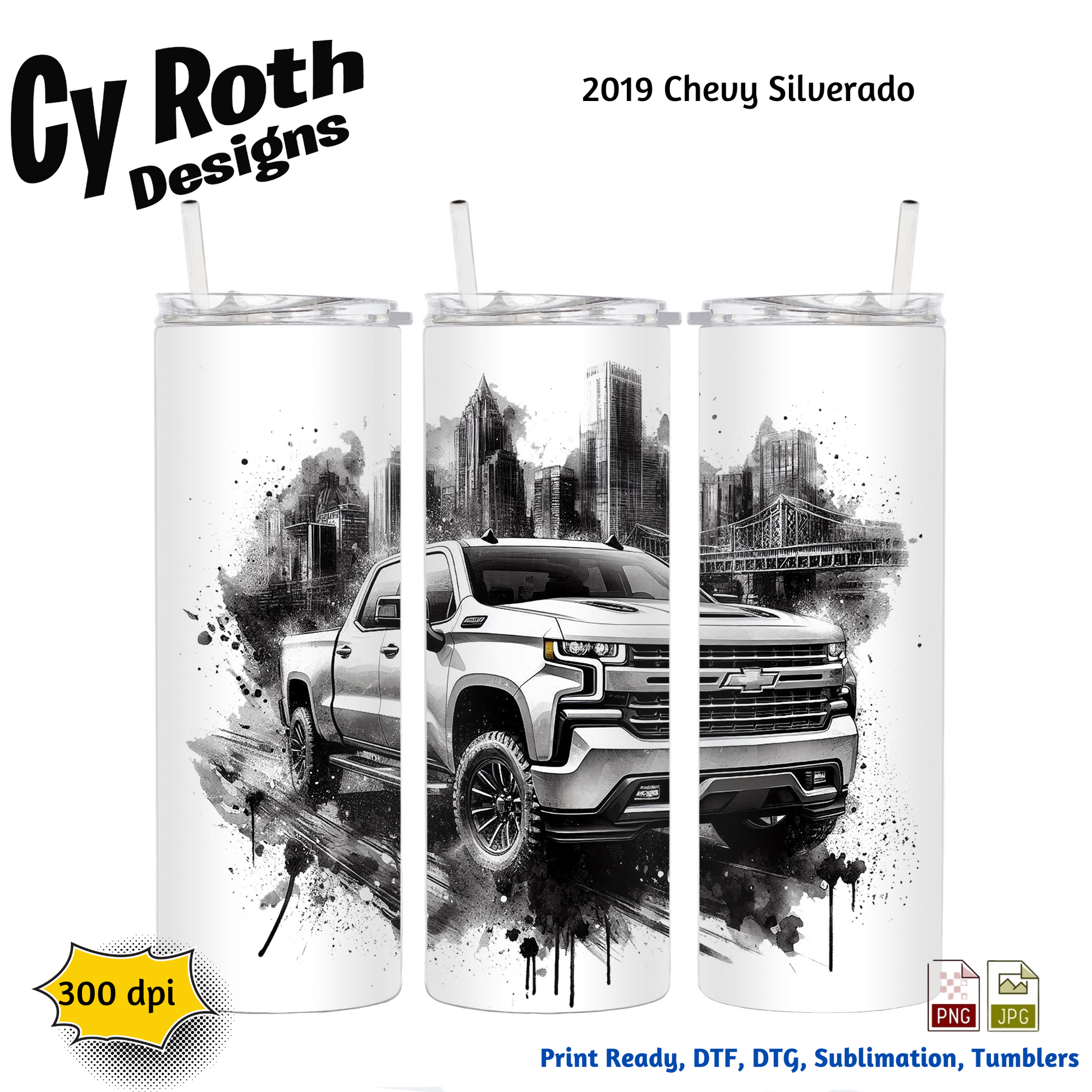 2019 Chevy Sliverado Sublimation Wall Art 20oz skinny Tumbler PNG JPG file, shirt PNG, Junk Journal image