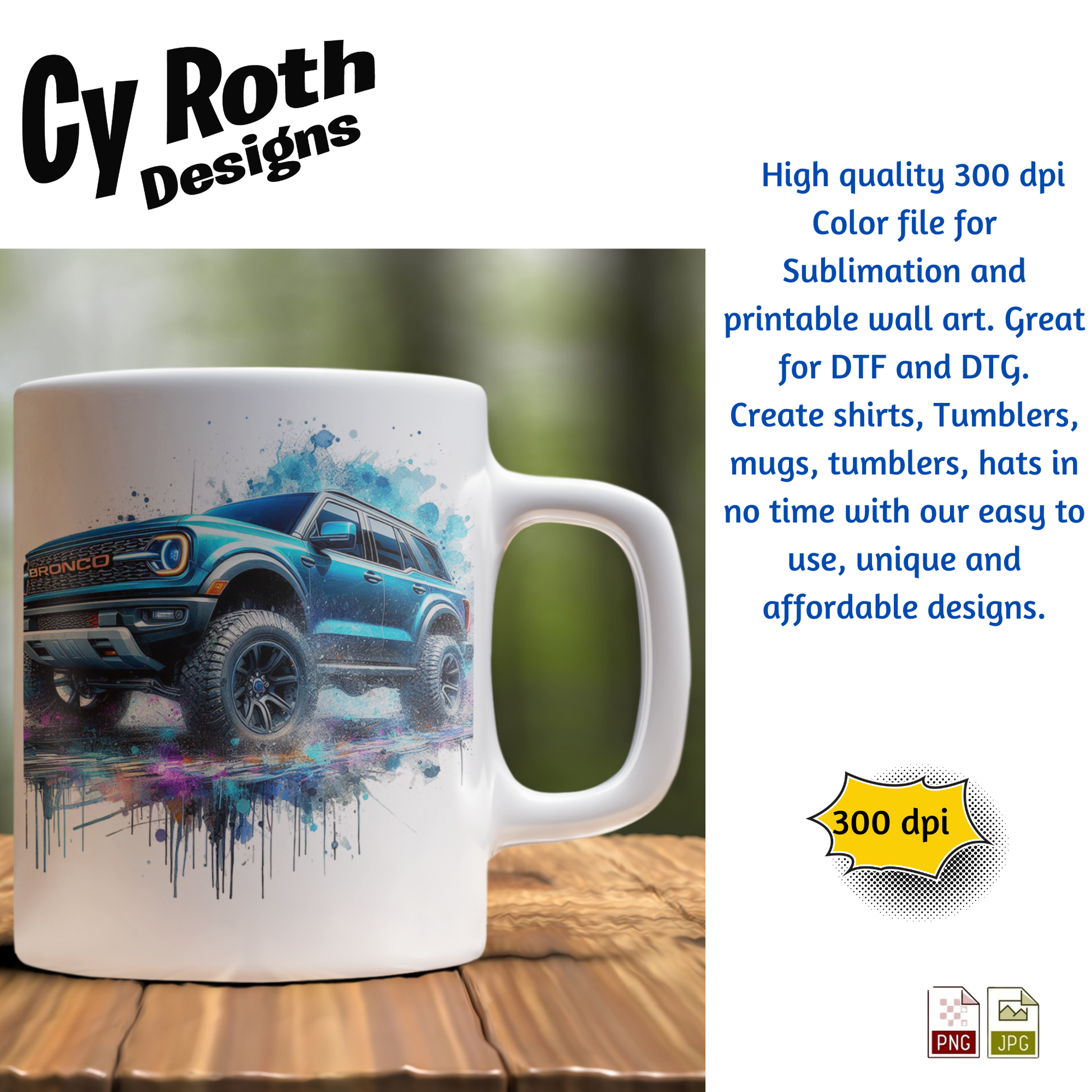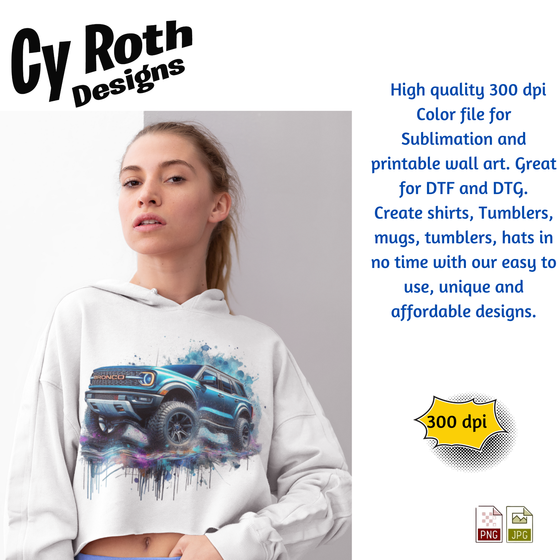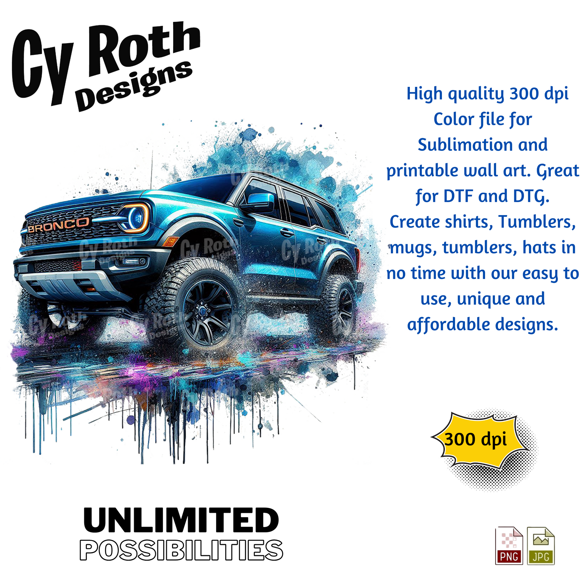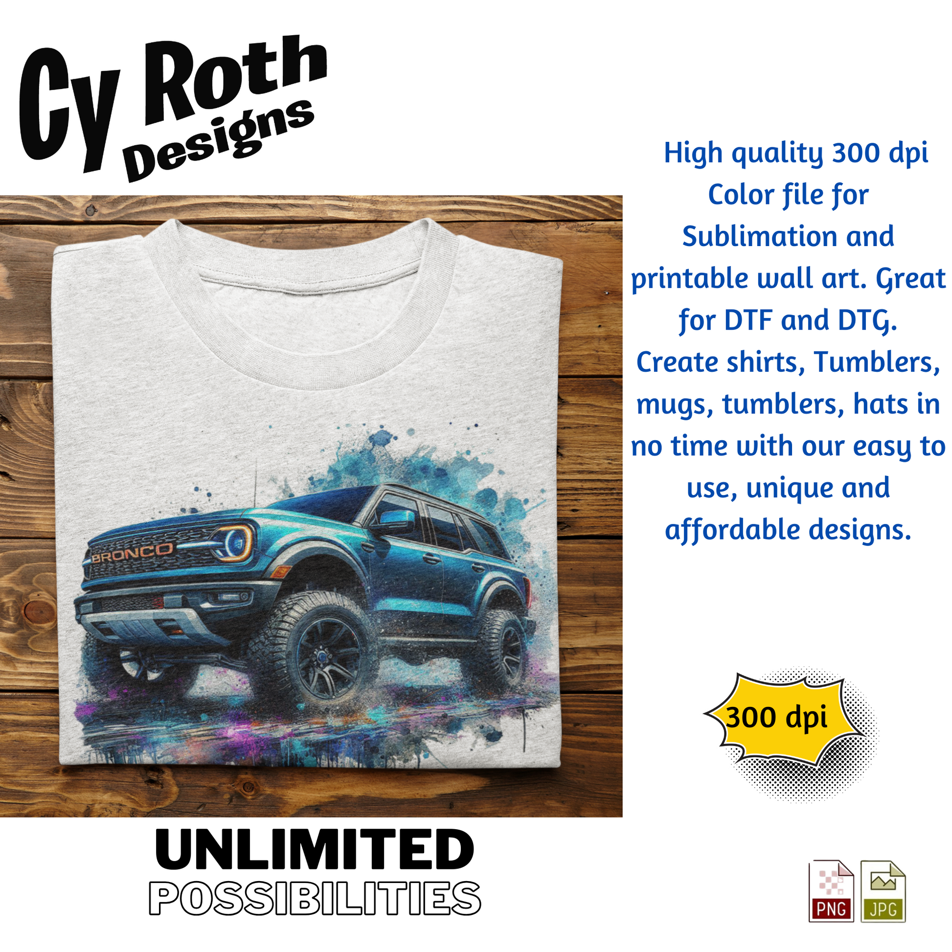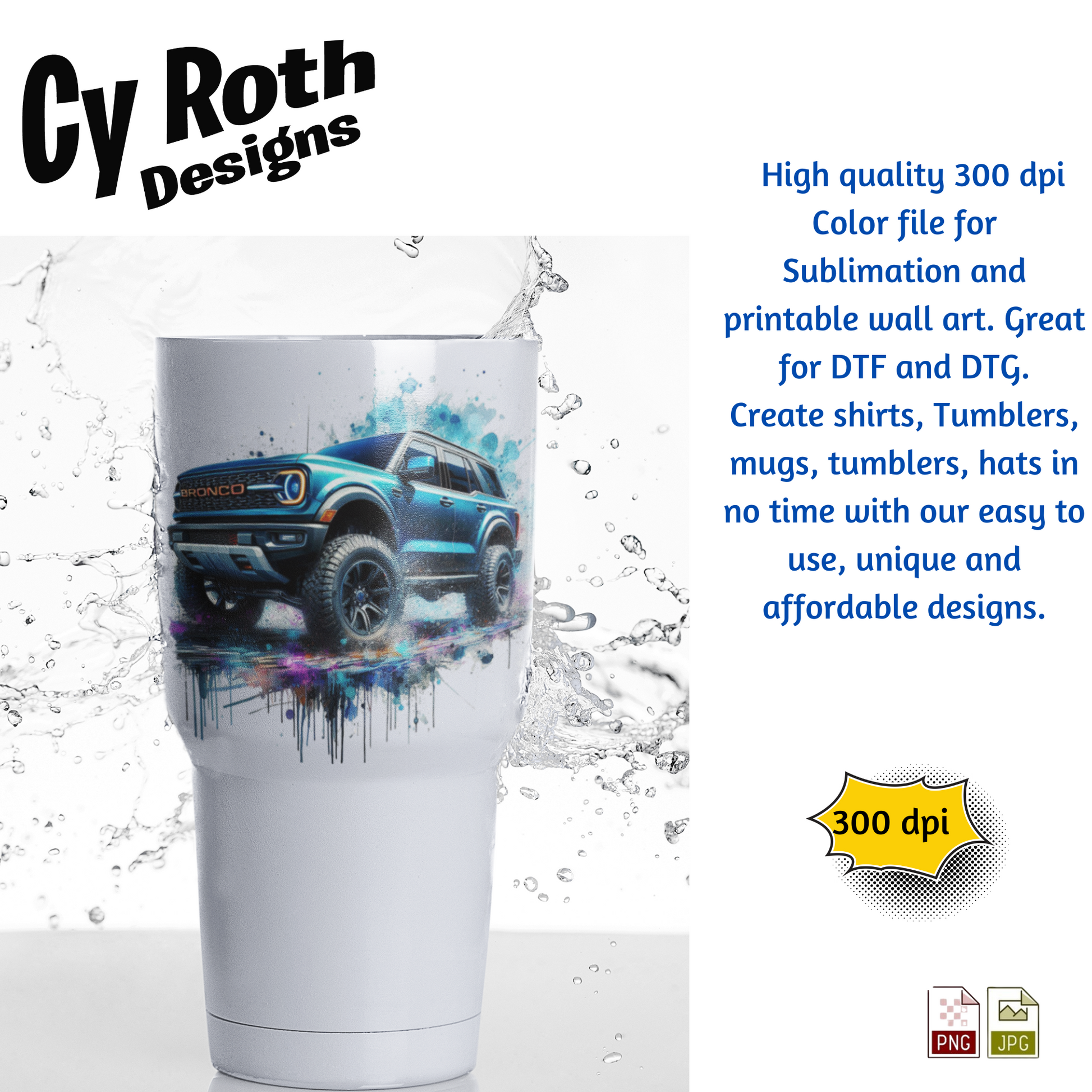 2023 Ford Bronco sublimation file to make tumblers, t-Shirts, Printable Wall Art, Sweatshirts. Great to make personalized gifts. Popular junk journal image also.