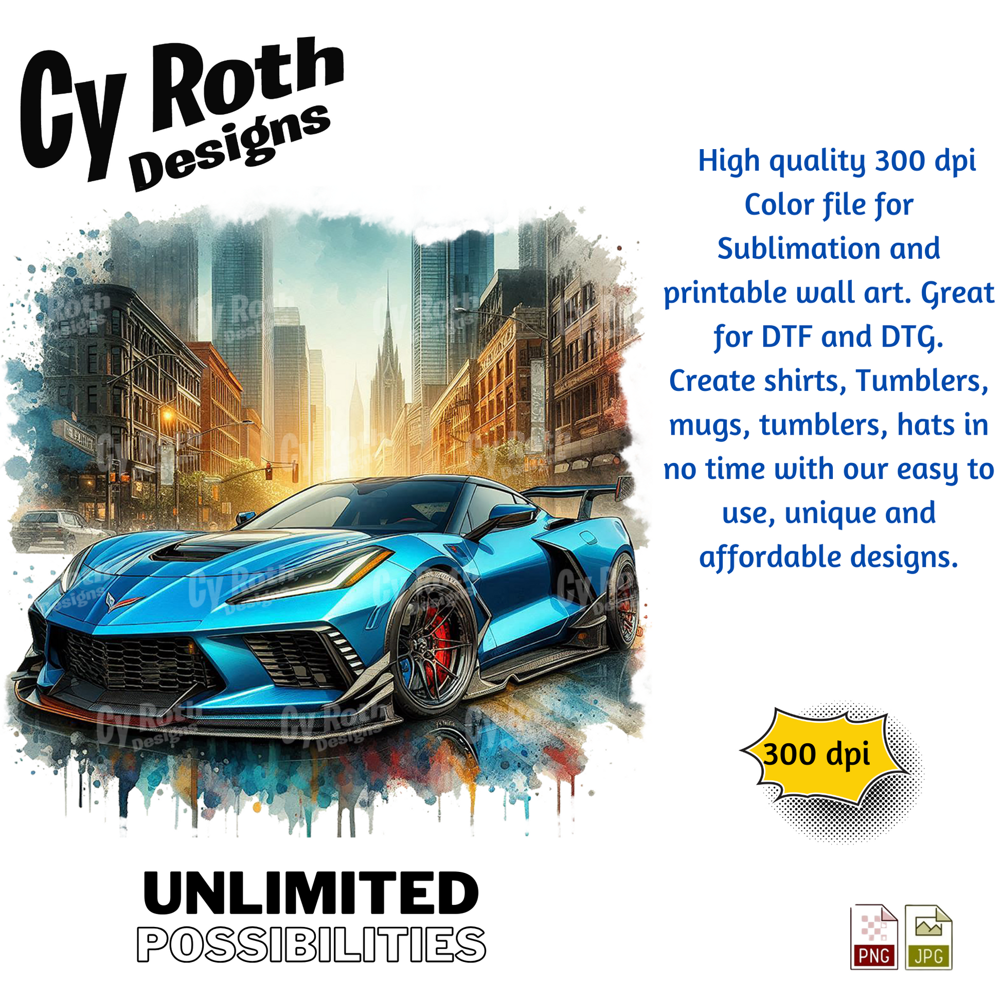 2023 Corvette Sublimation PNG JPG file, Wall Art 20oz skinny Tumbler, shirt PNG, Junk Journal image