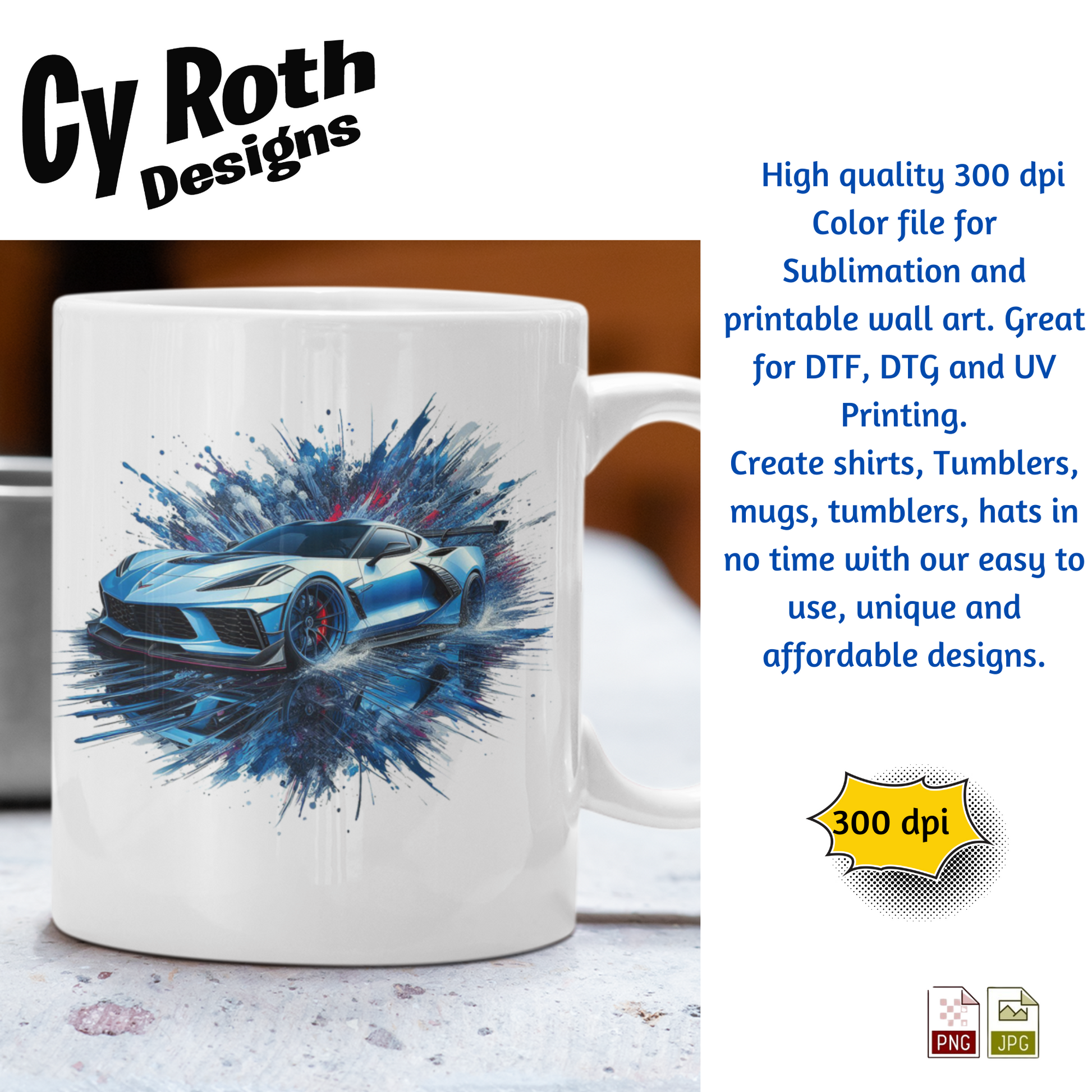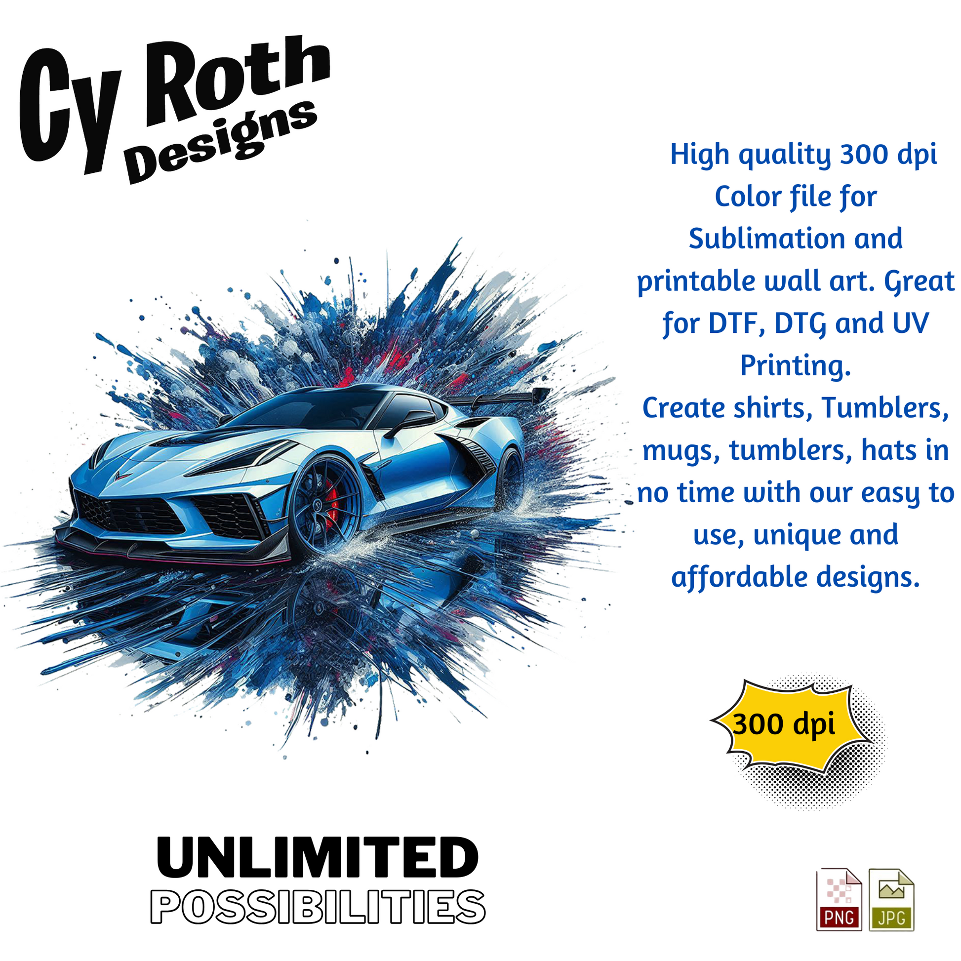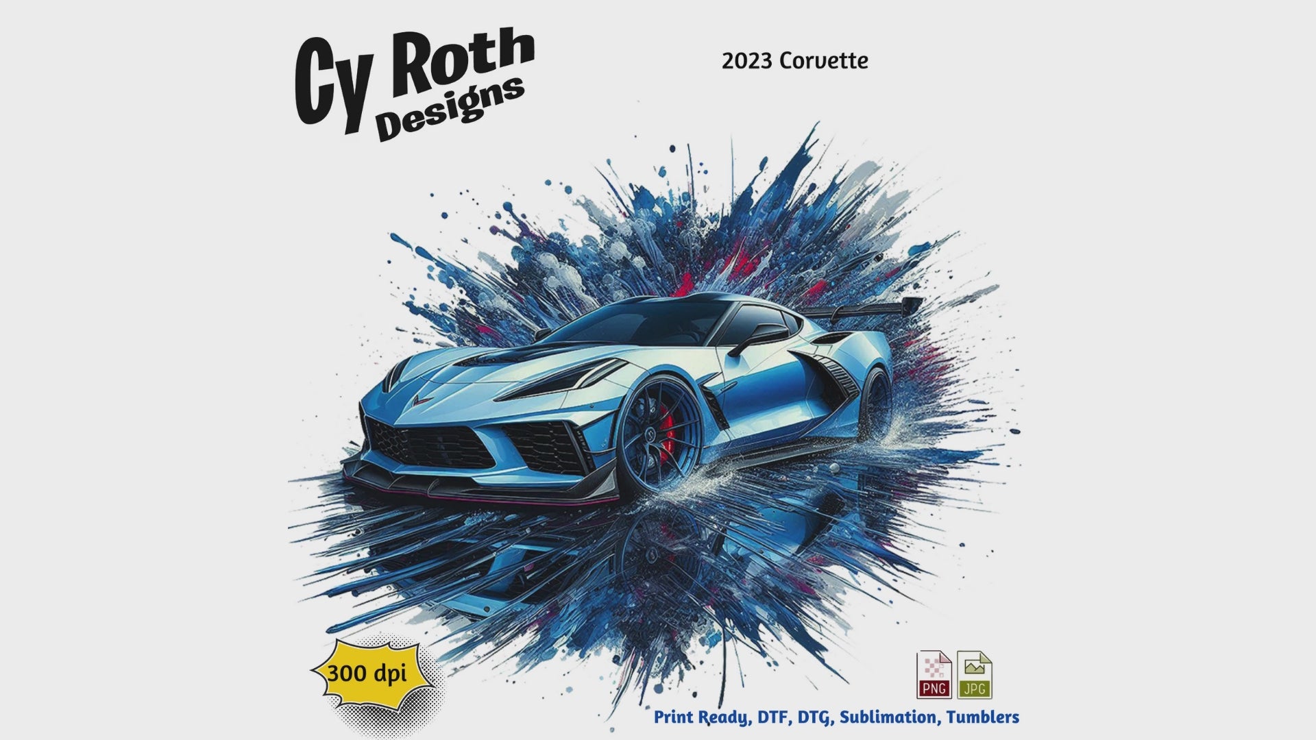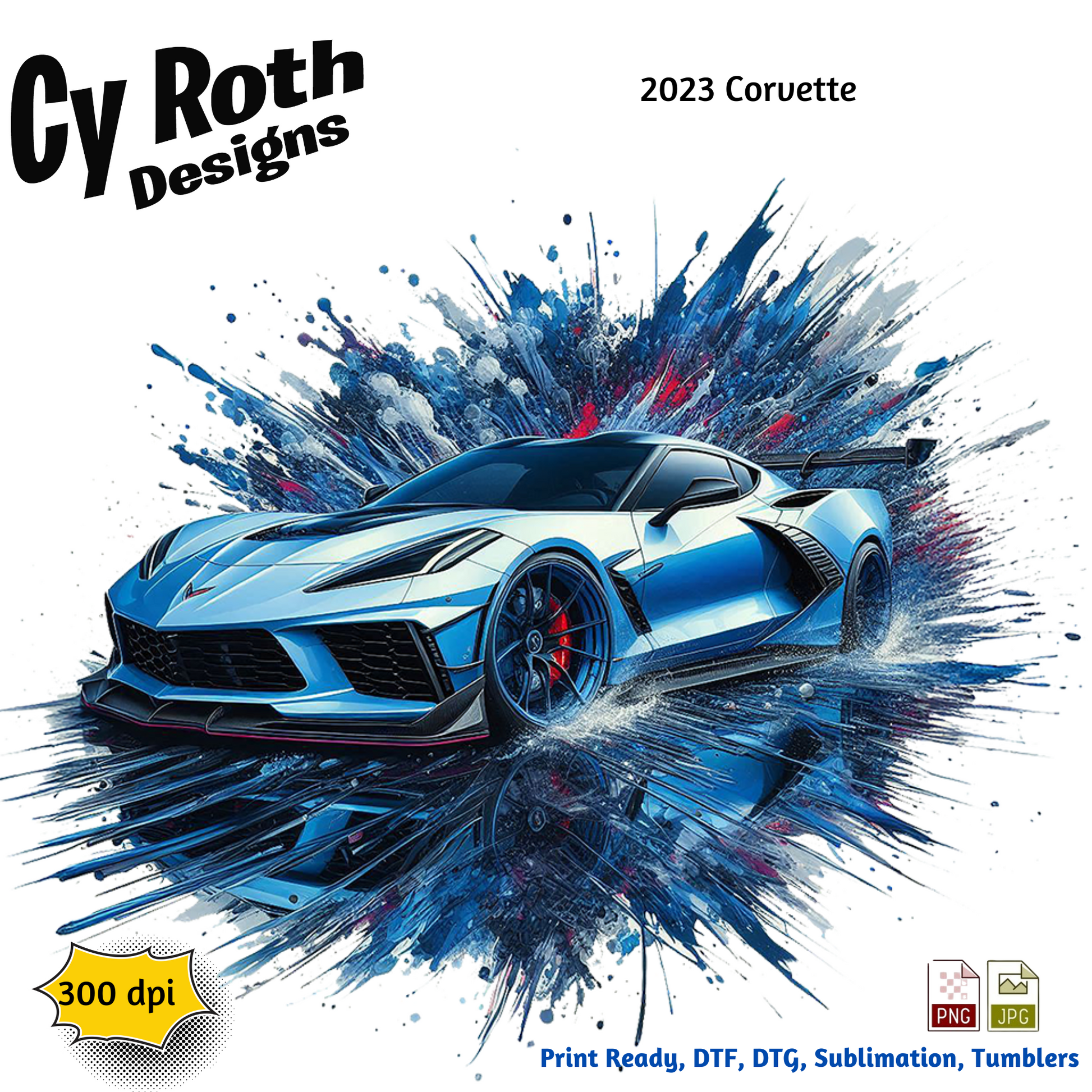 2023 Corvette sublimation file to make tumblers, t-Shirts, Printable Wall Art, Sweatshirts. Great to make personalized gifts. Popular junk journal image also.