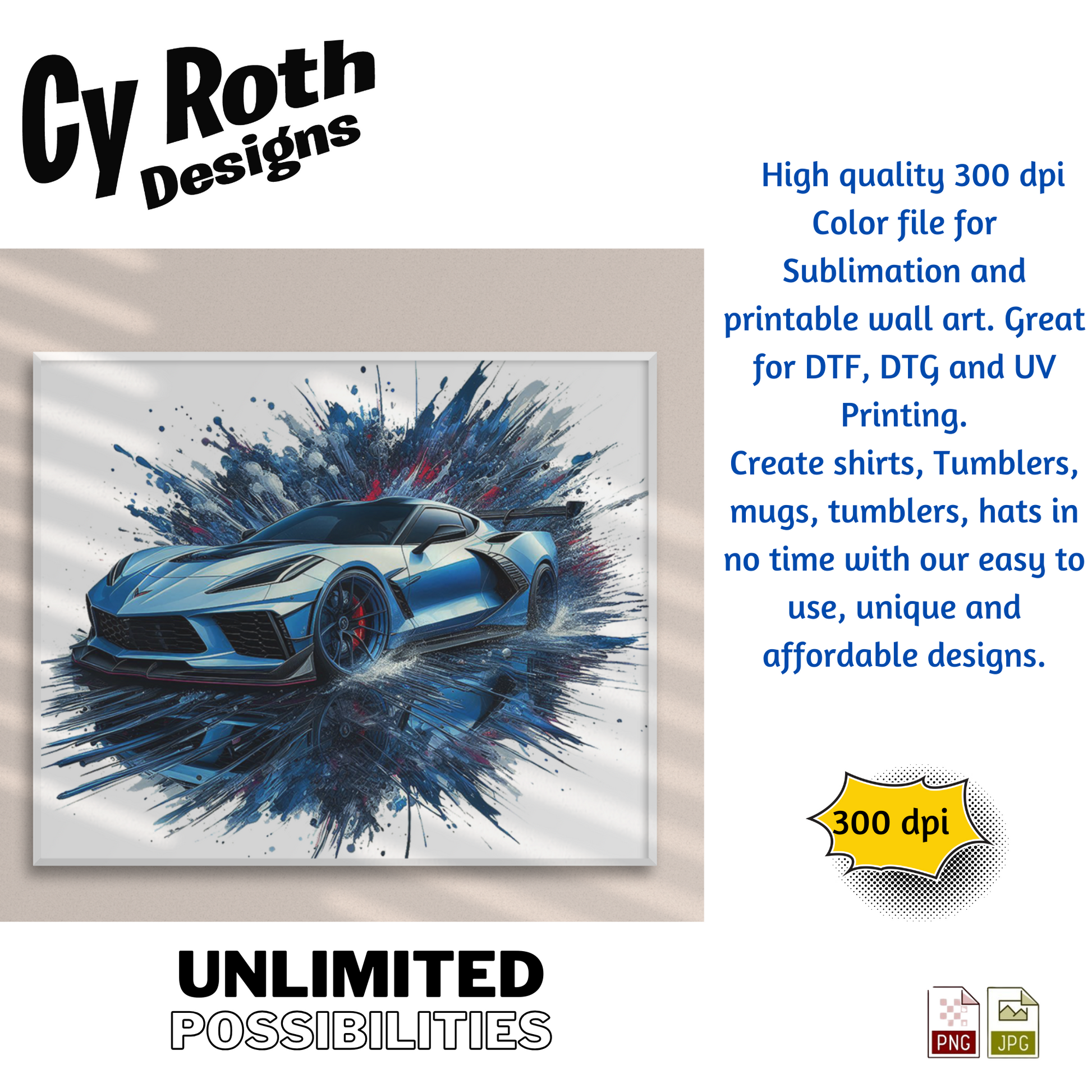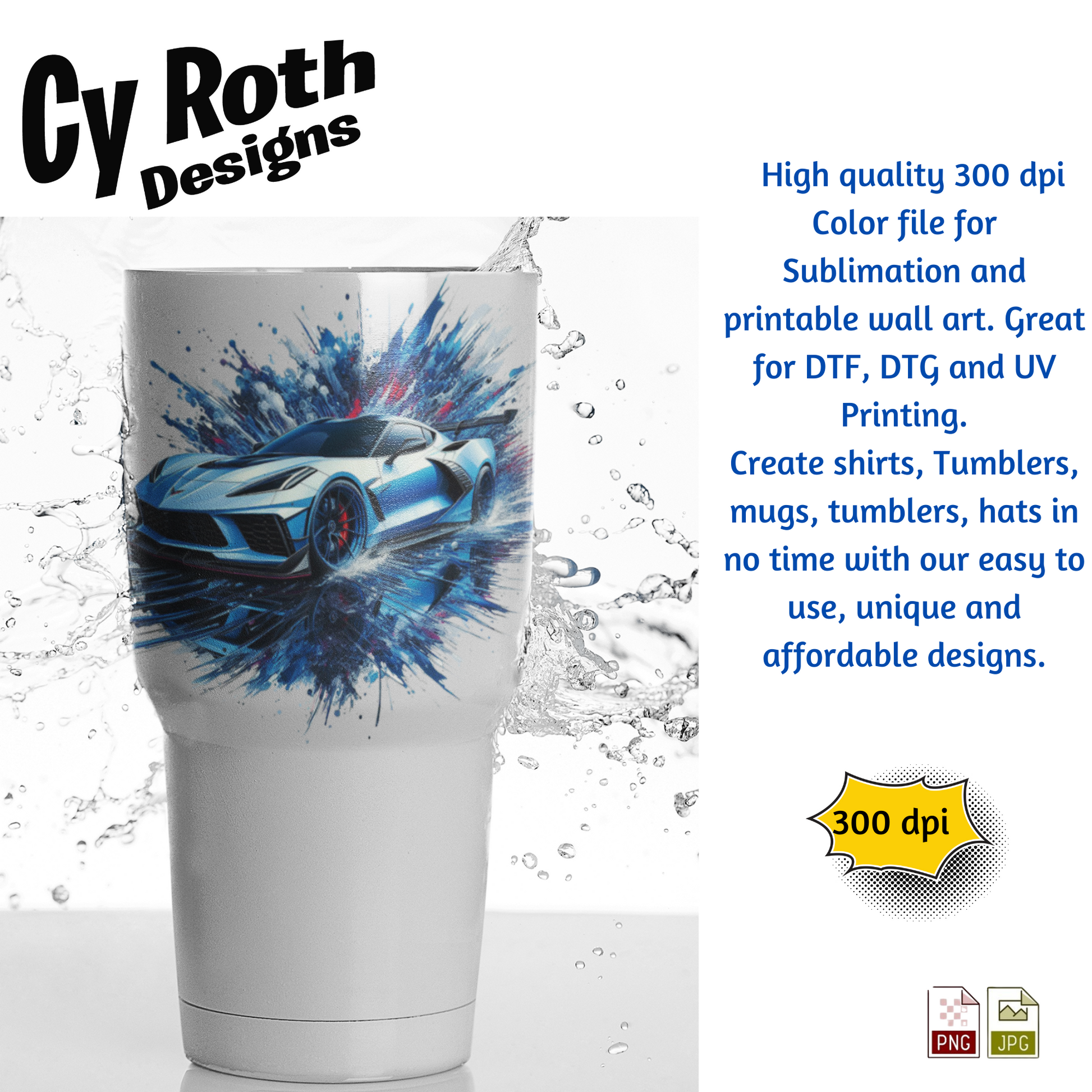 2023 Chevy Corvette Sublimation Wall Art 20oz skinny Tumbler PNG JPG file, shirt PNG, Junk Journal image