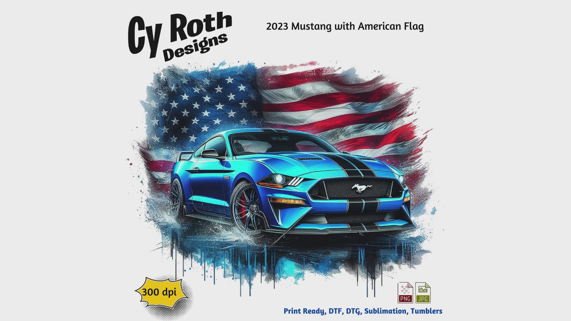 2023 Ford Mustang sublimation file to make tumblers, t-Shirts, Printable Wall Art, Sweatshirts. Great to make personalized gifts. Popular junk journal image also.