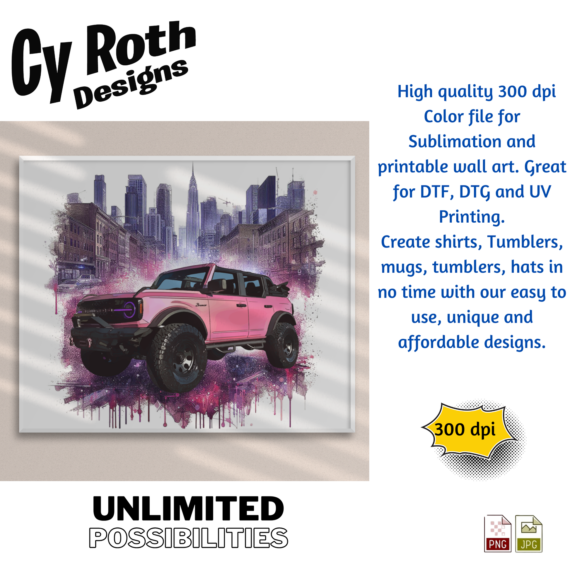 2024 Ford Bronco sublimation file to make tumblers, t-Shirts, Printable Wall Art, Sweatshirts. Great to make personalized gifts. Popular junk journal image also.