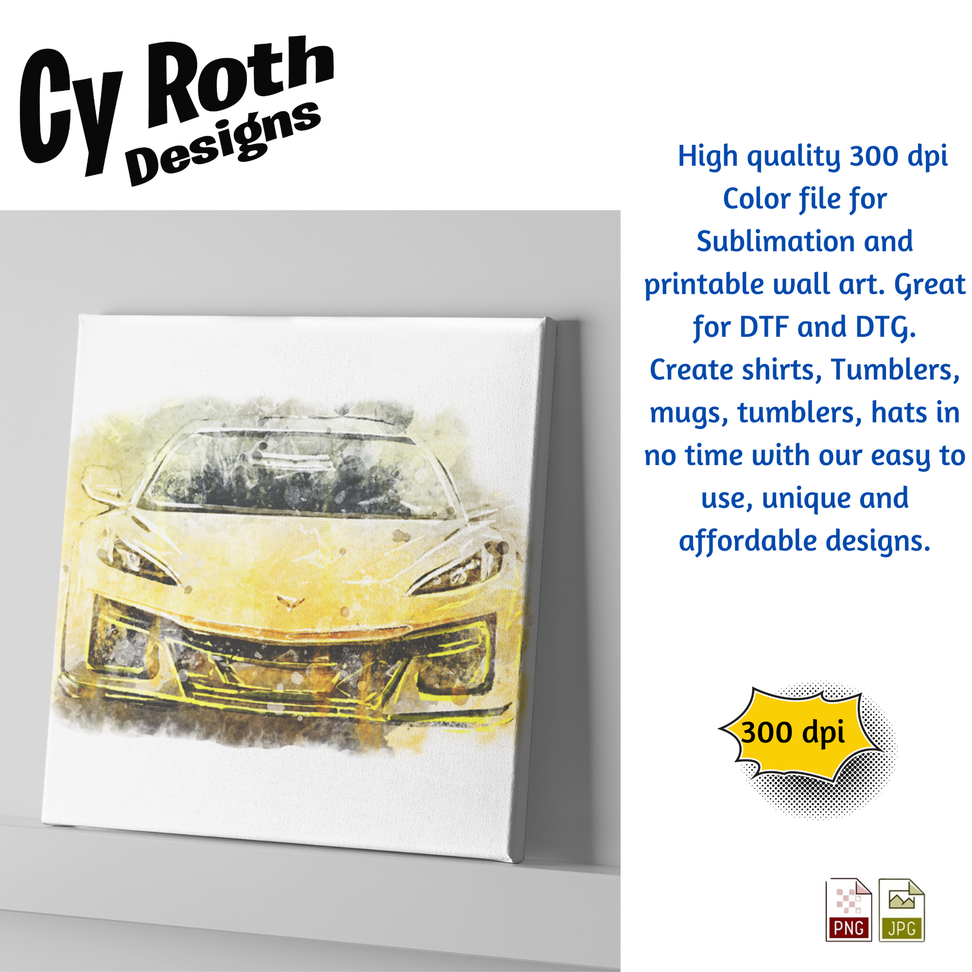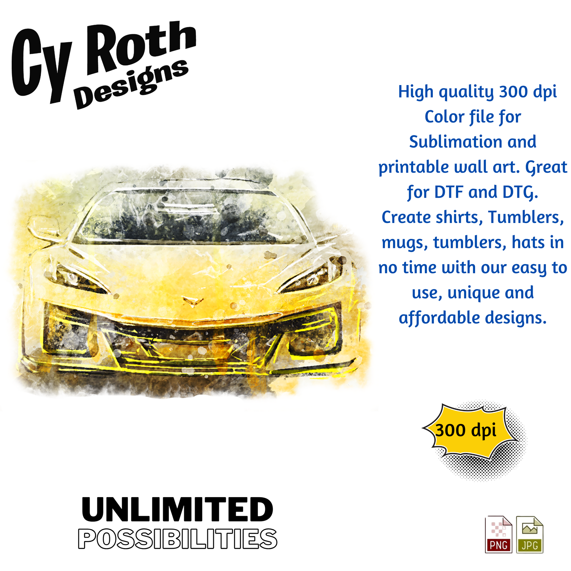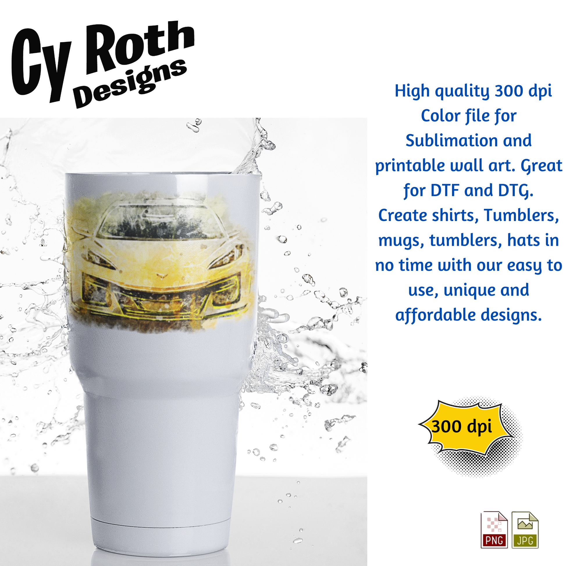 2025 Chevy Corvette sublimation file to make tumblers, t-Shirts, Printable Wall Art, Sweatshirts. Great to make personalized gifts. Popular junk journal image also.