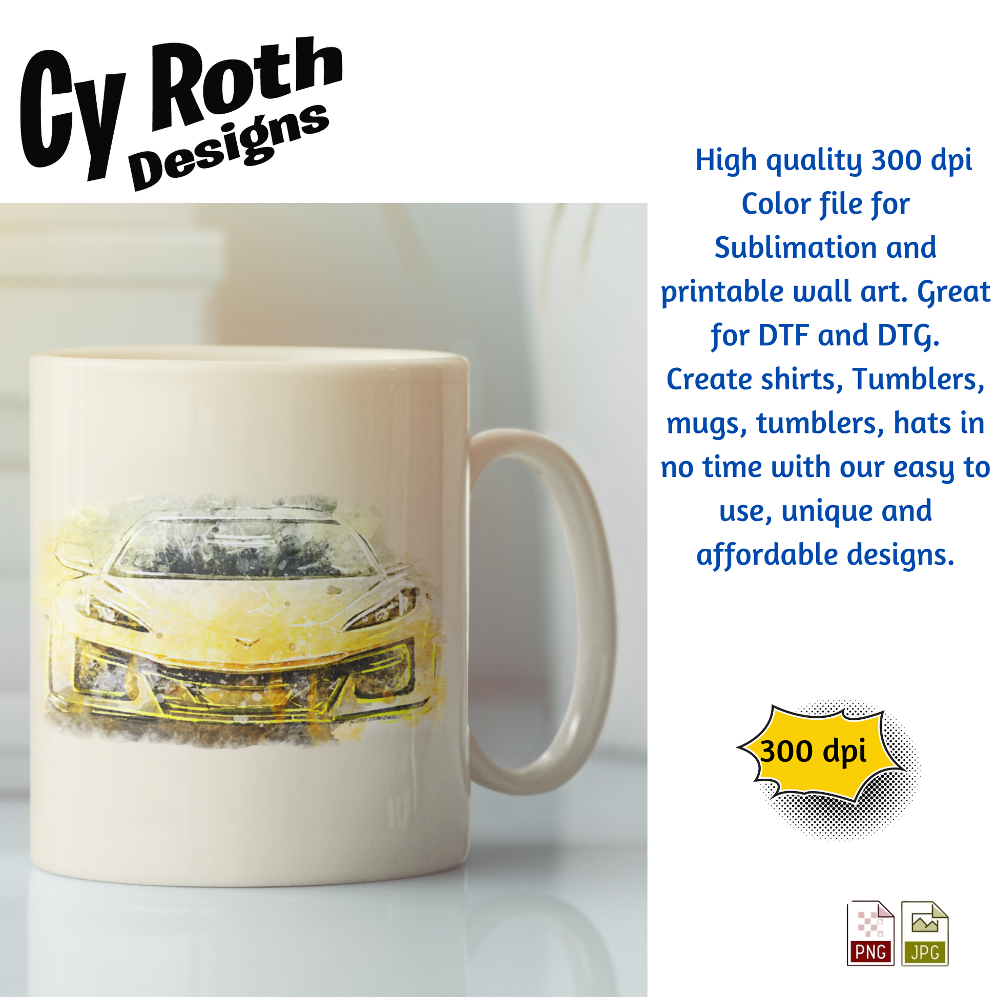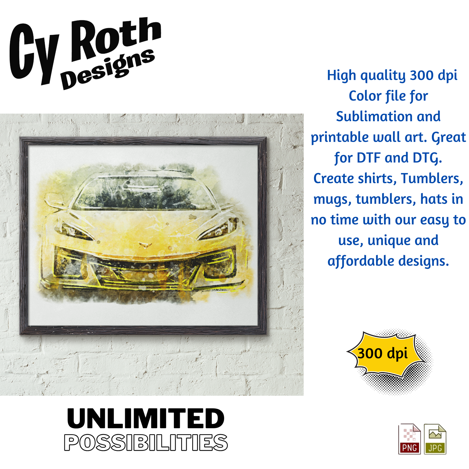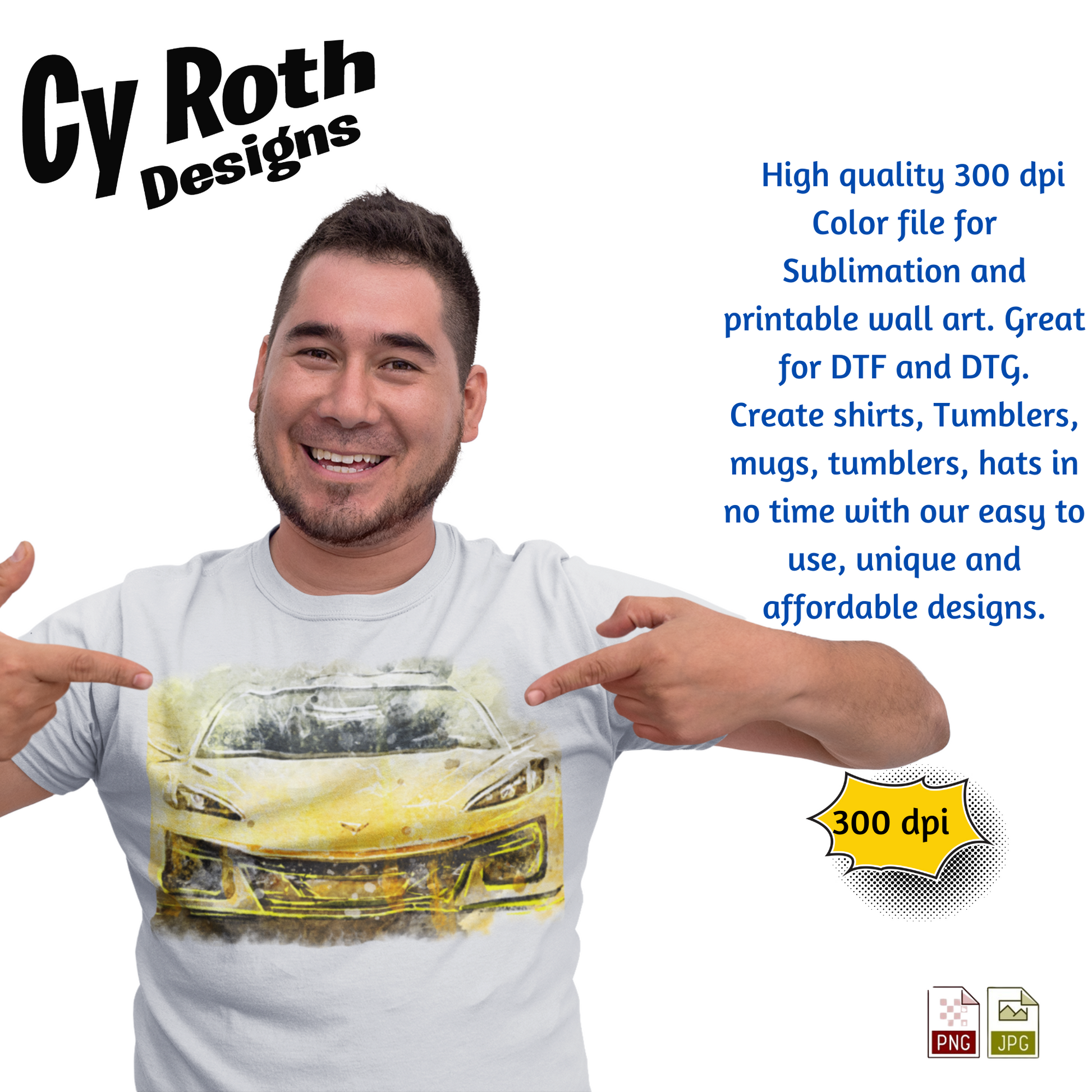 2025 Chevy Corvette sublimation file to make tumblers, t-Shirts, Printable Wall Art, Sweatshirts. Great to make personalized gifts. Popular junk journal image also.
