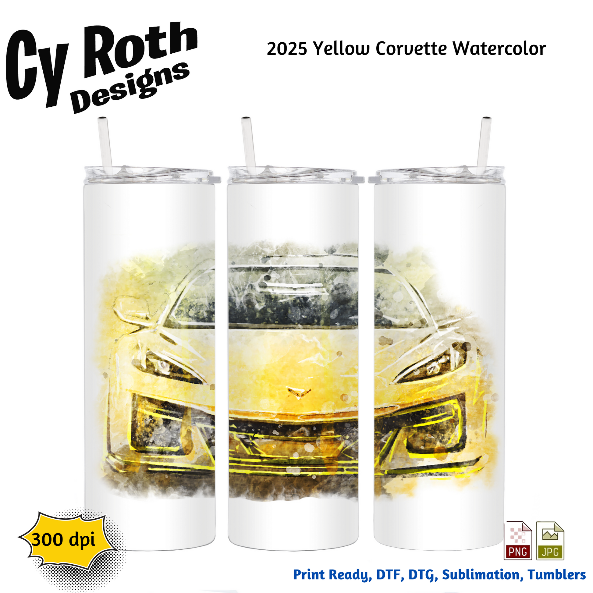 2025 Corvette Sublimation PNG JPG file, Wall Art 20oz skinny Tumbler, shirt PNG, Junk Journal image