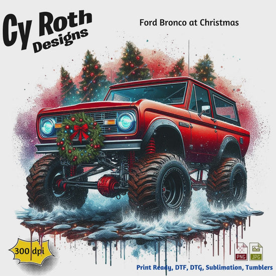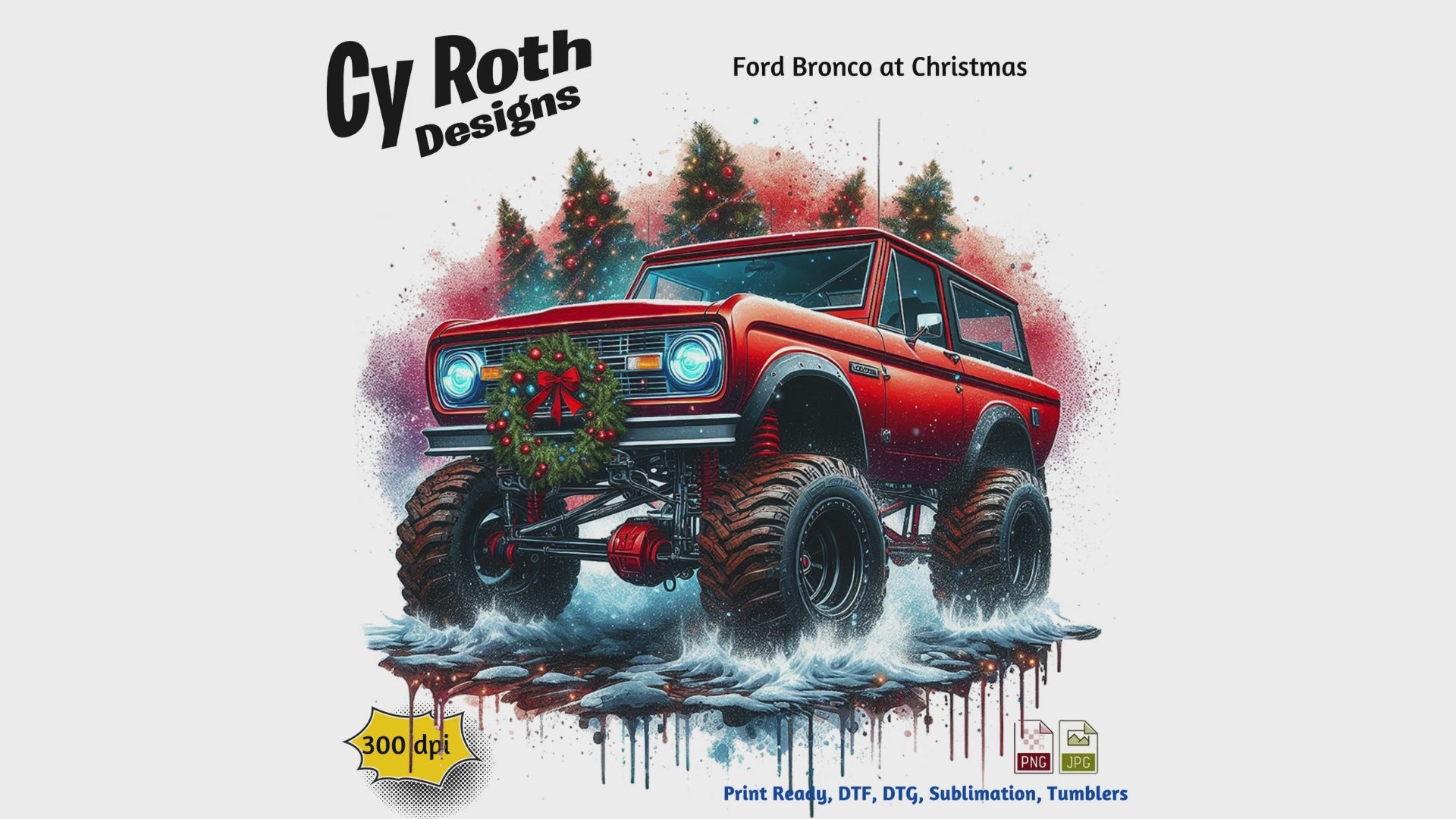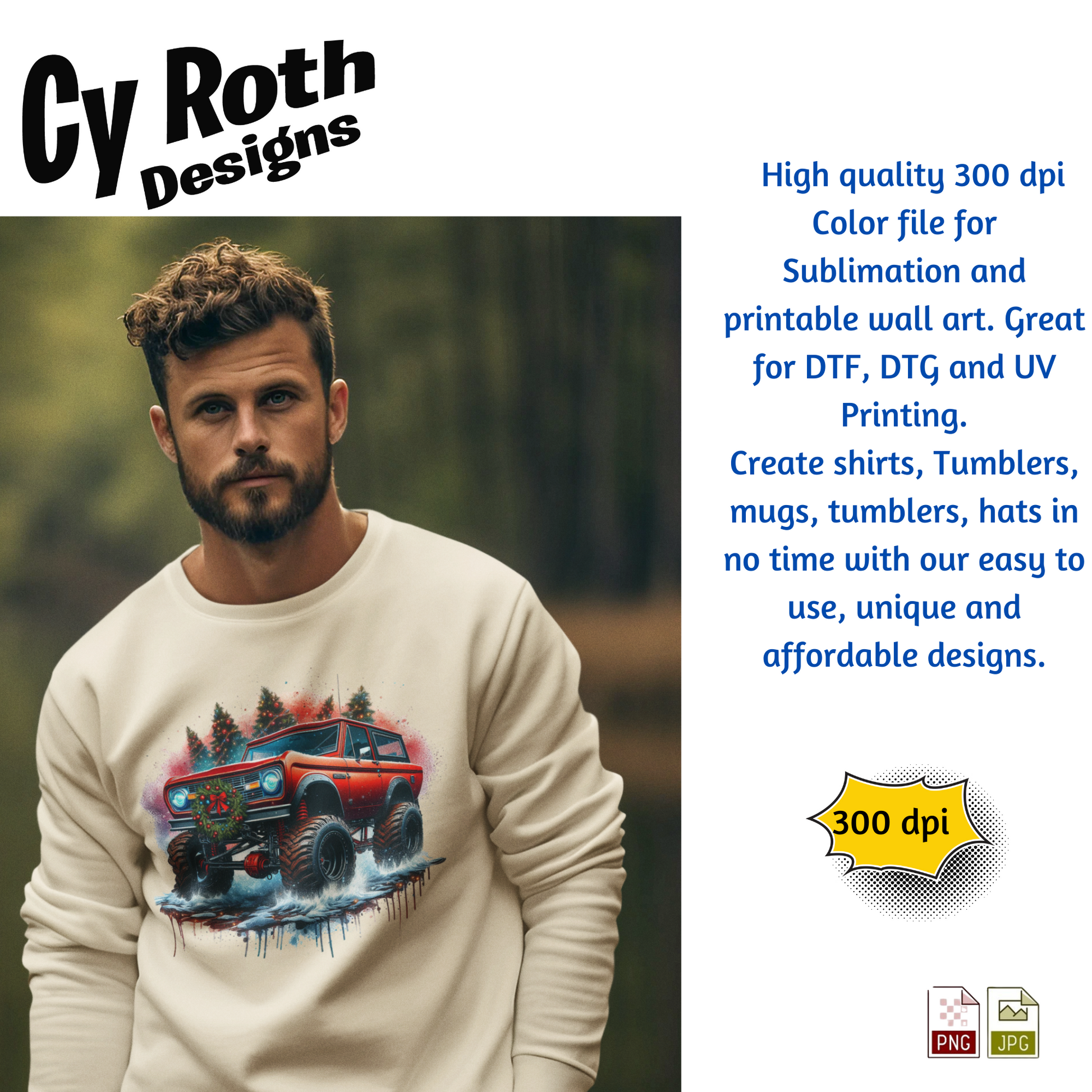 Ford Bronco at Christmas sublimation file to make tumblers, t-Shirts, Printable Wall Art, Sweatshirts. Great to make personalized gifts. Popular junk journal image also.