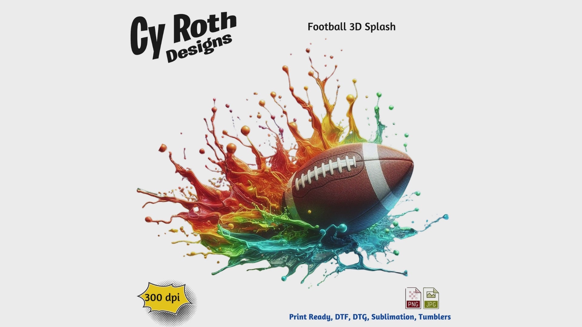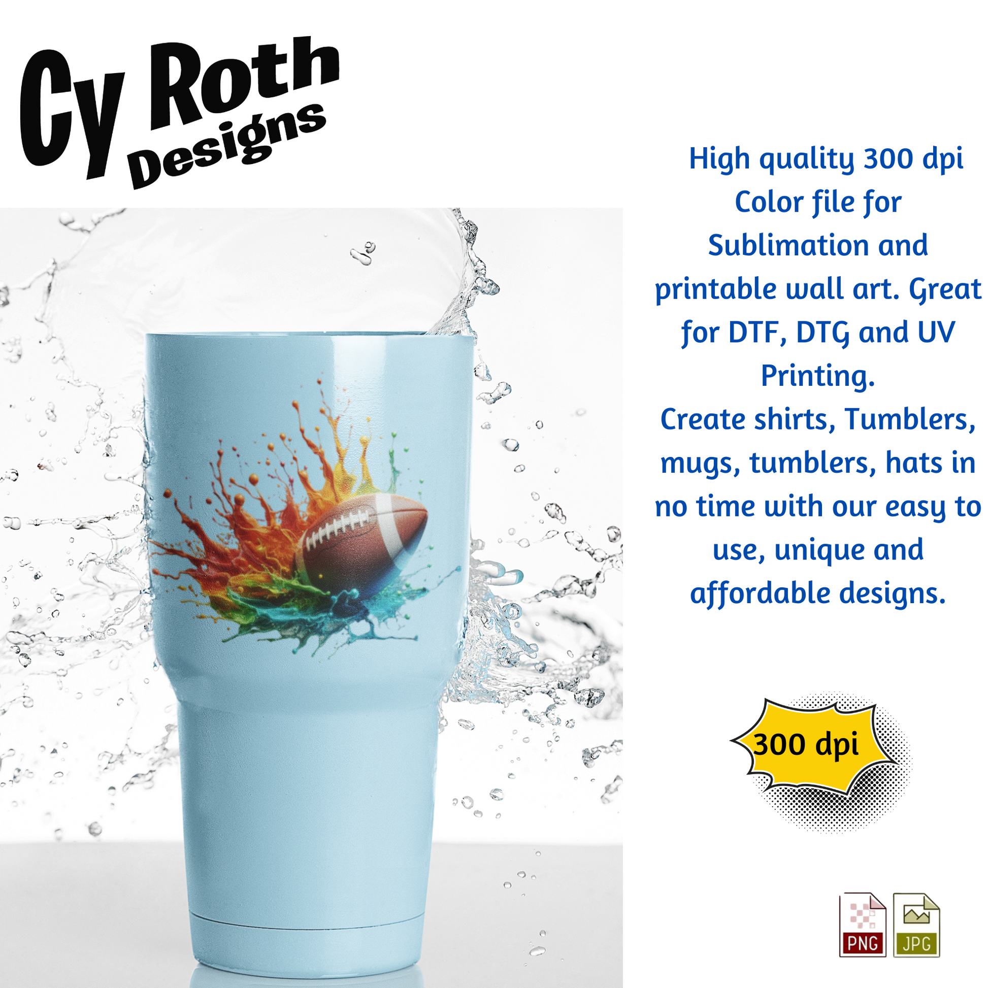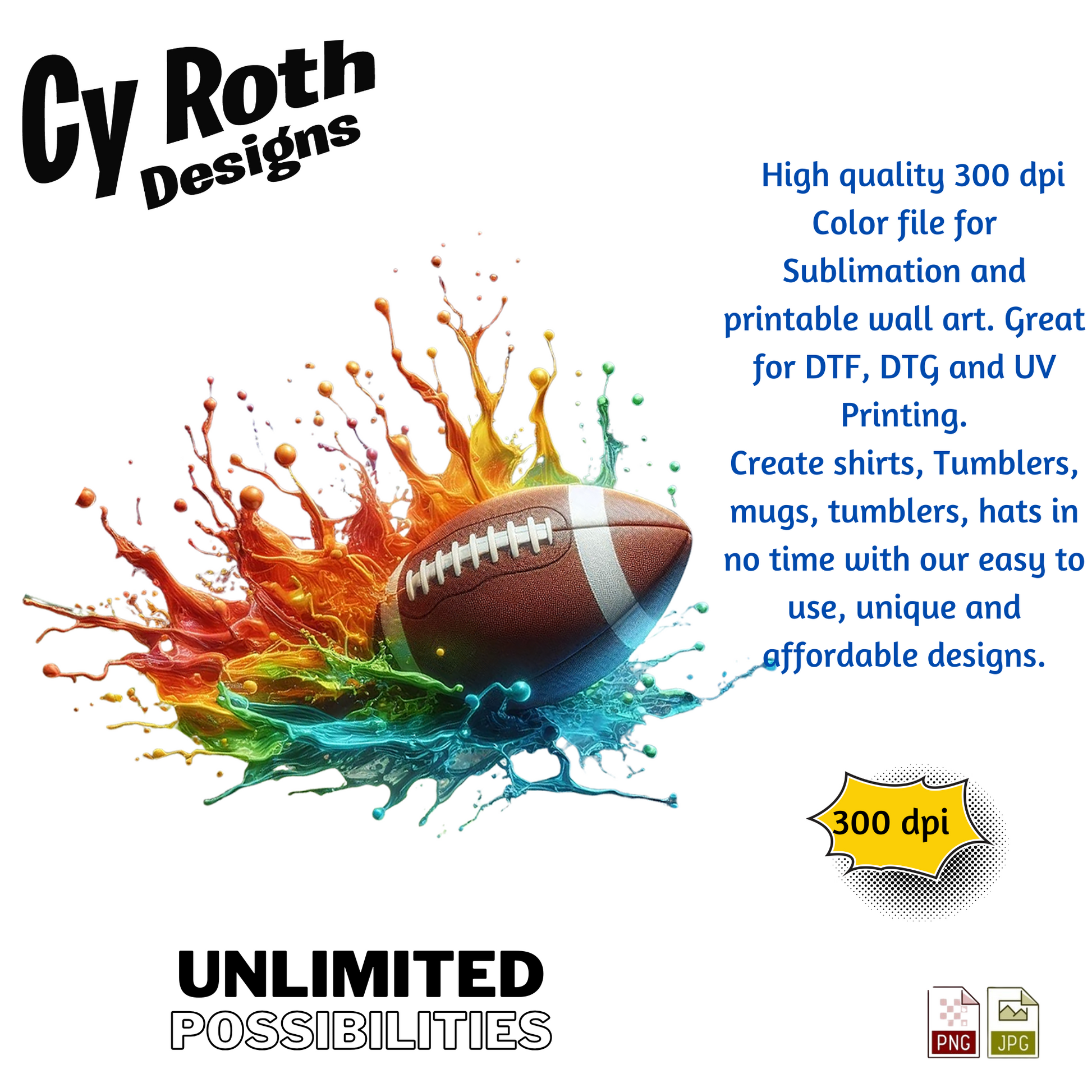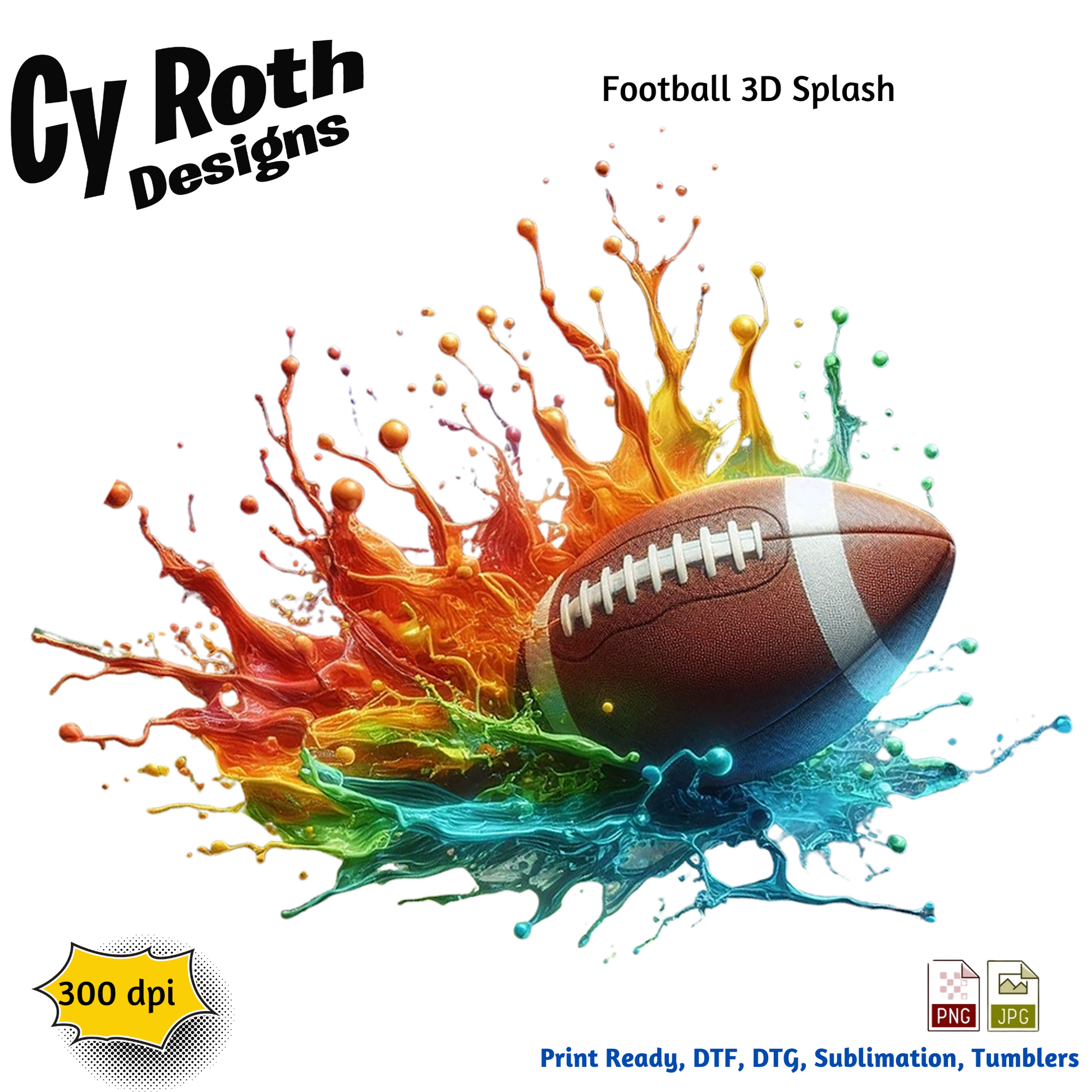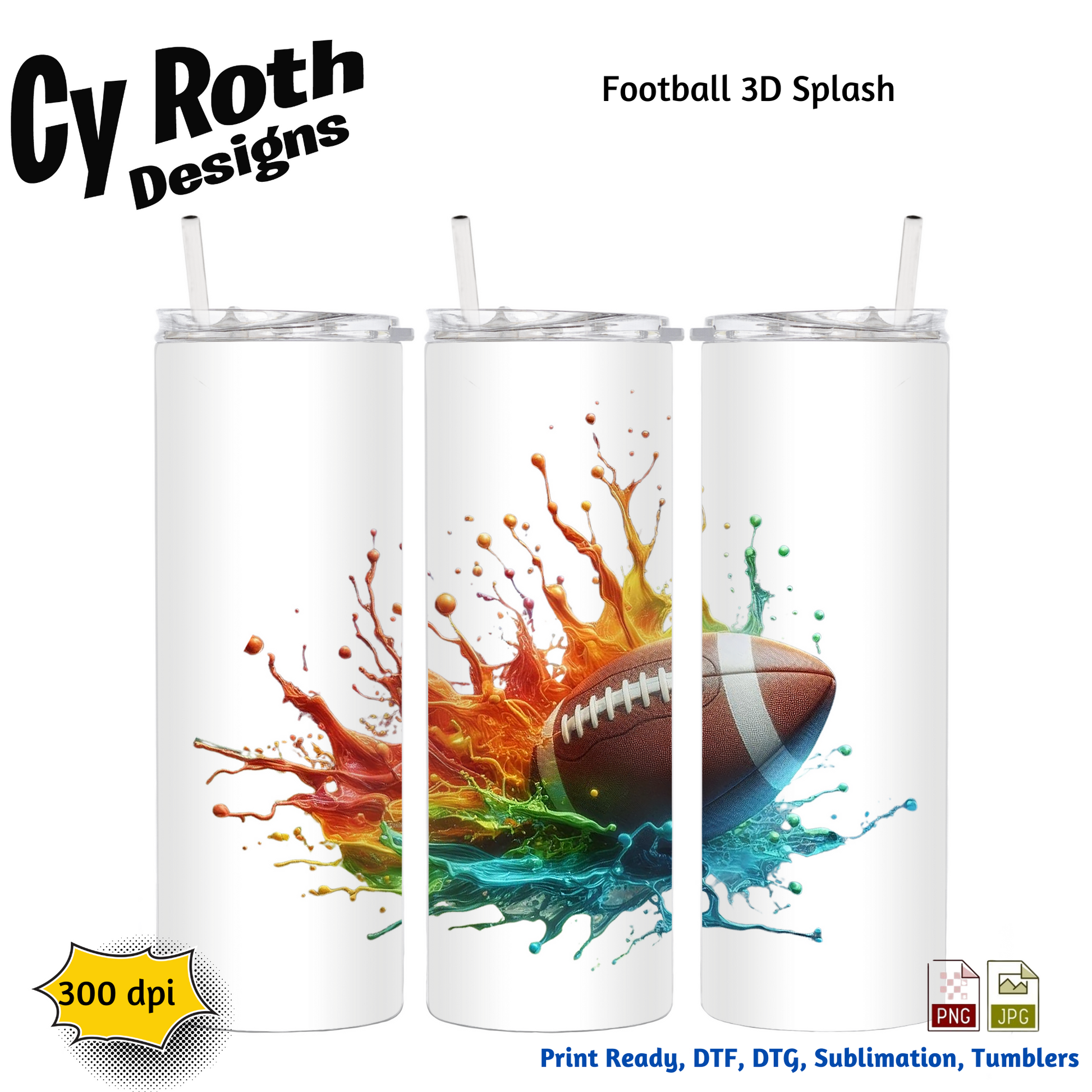 Football Sublimation PNG JPG file, Wall Art 20oz skinny Tumbler, shirt PNG, Junk Journal image. 3D Football Splash