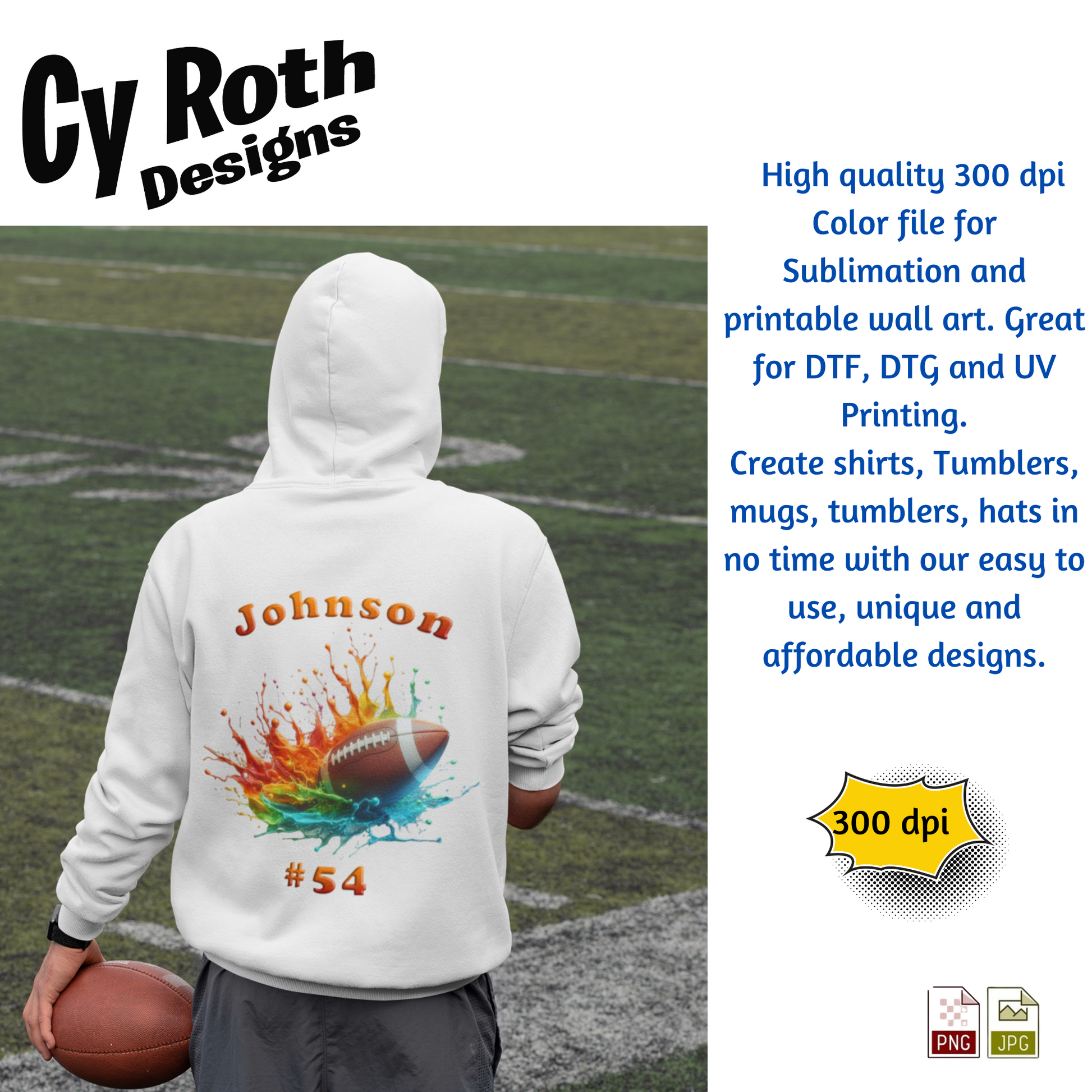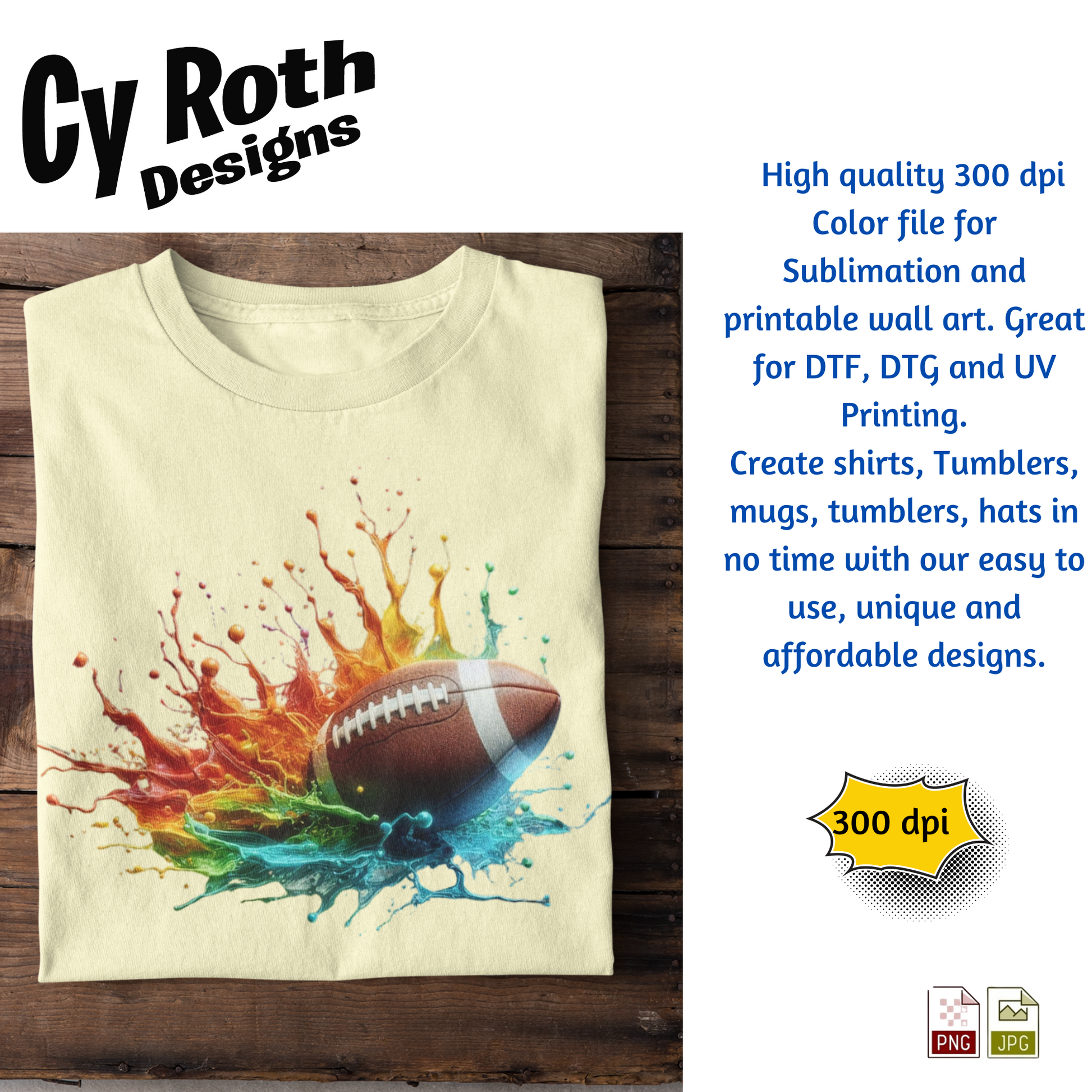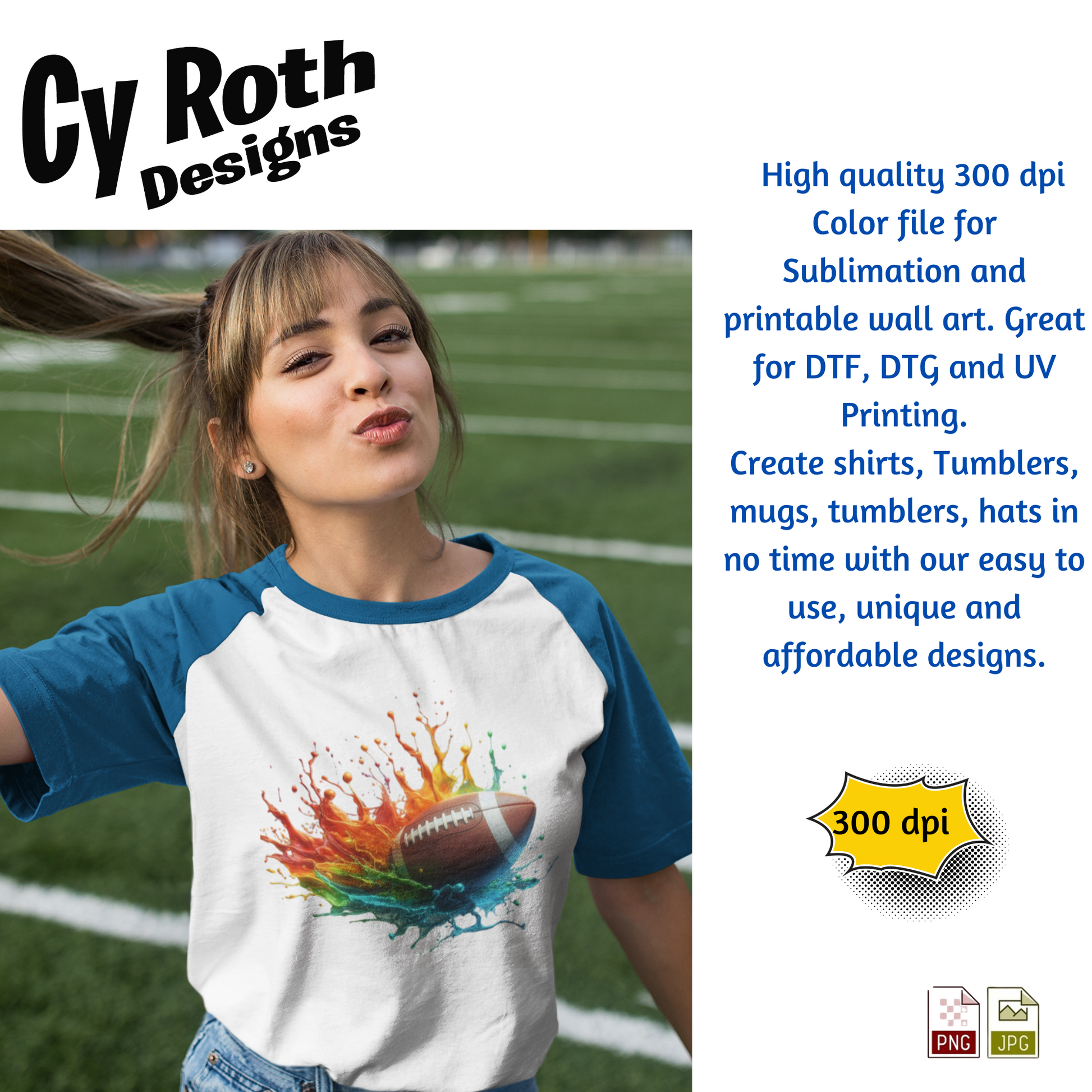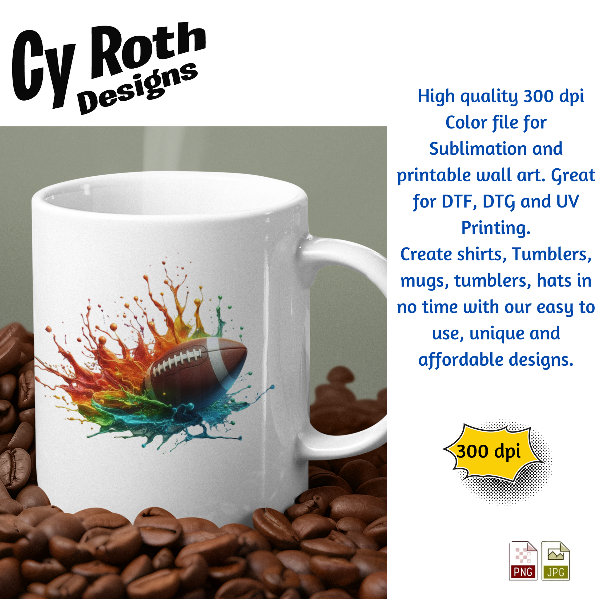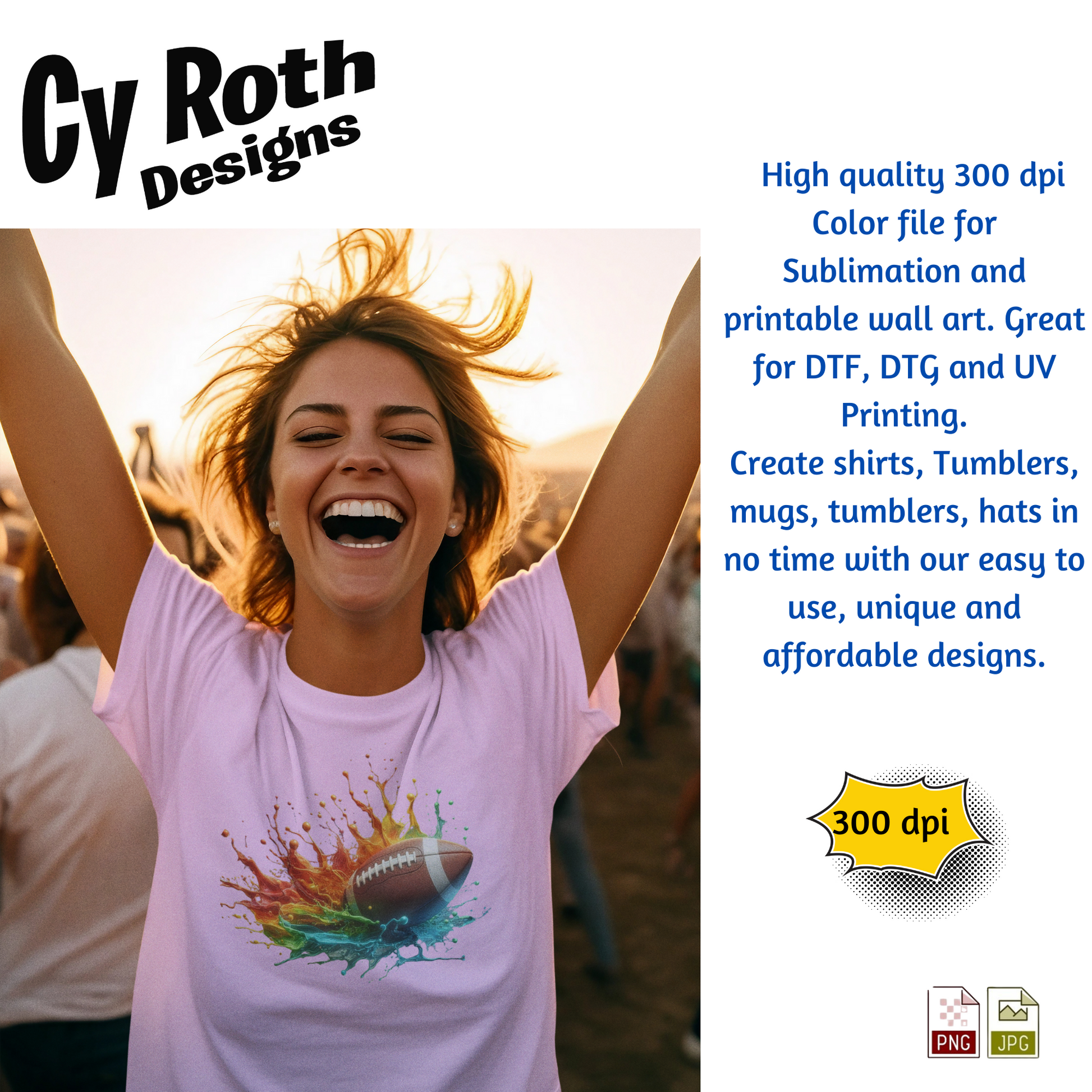 Football Sublimation PNG JPG file, Wall Art 20oz skinny Tumbler, shirt PNG, Junk Journal image. 3D Football Splash