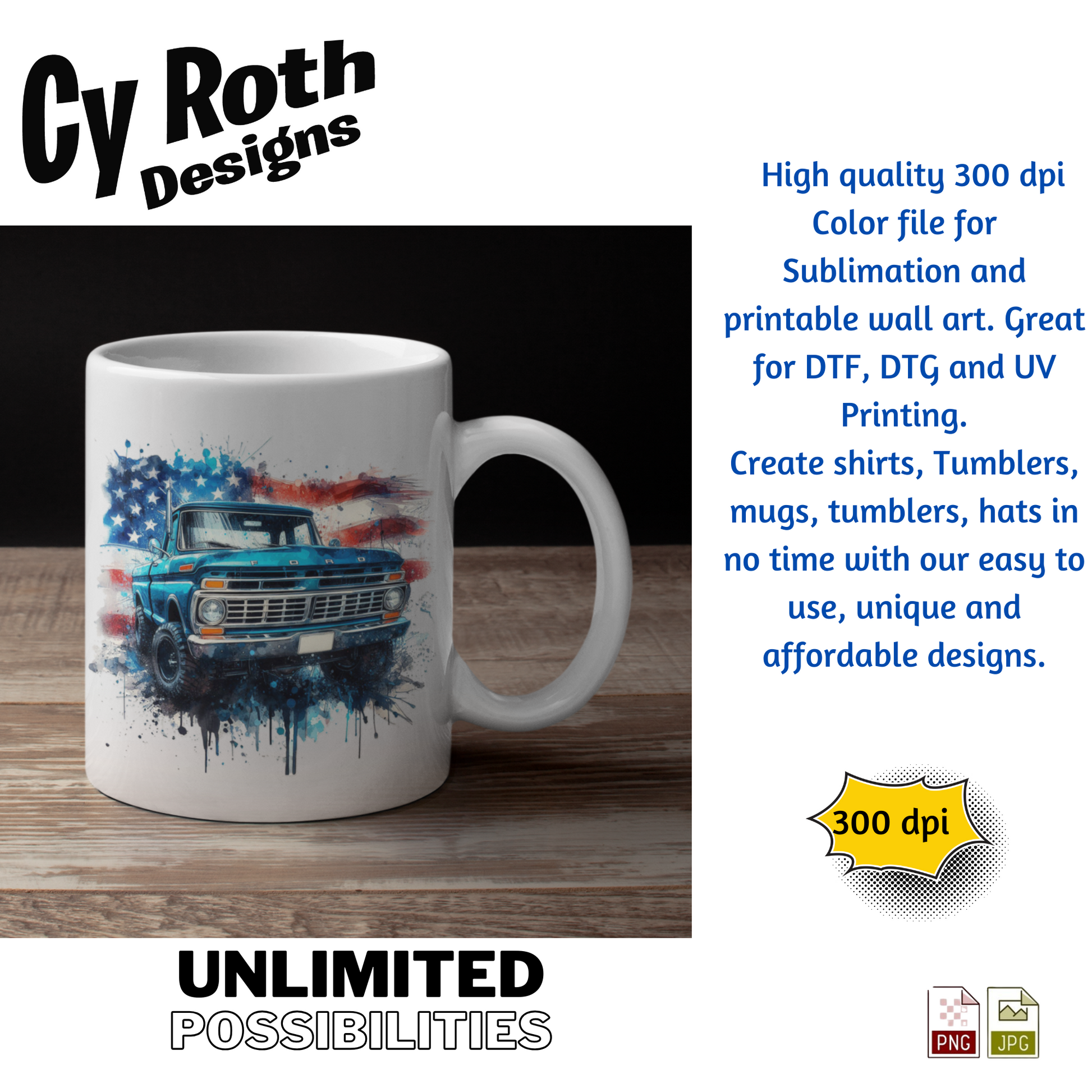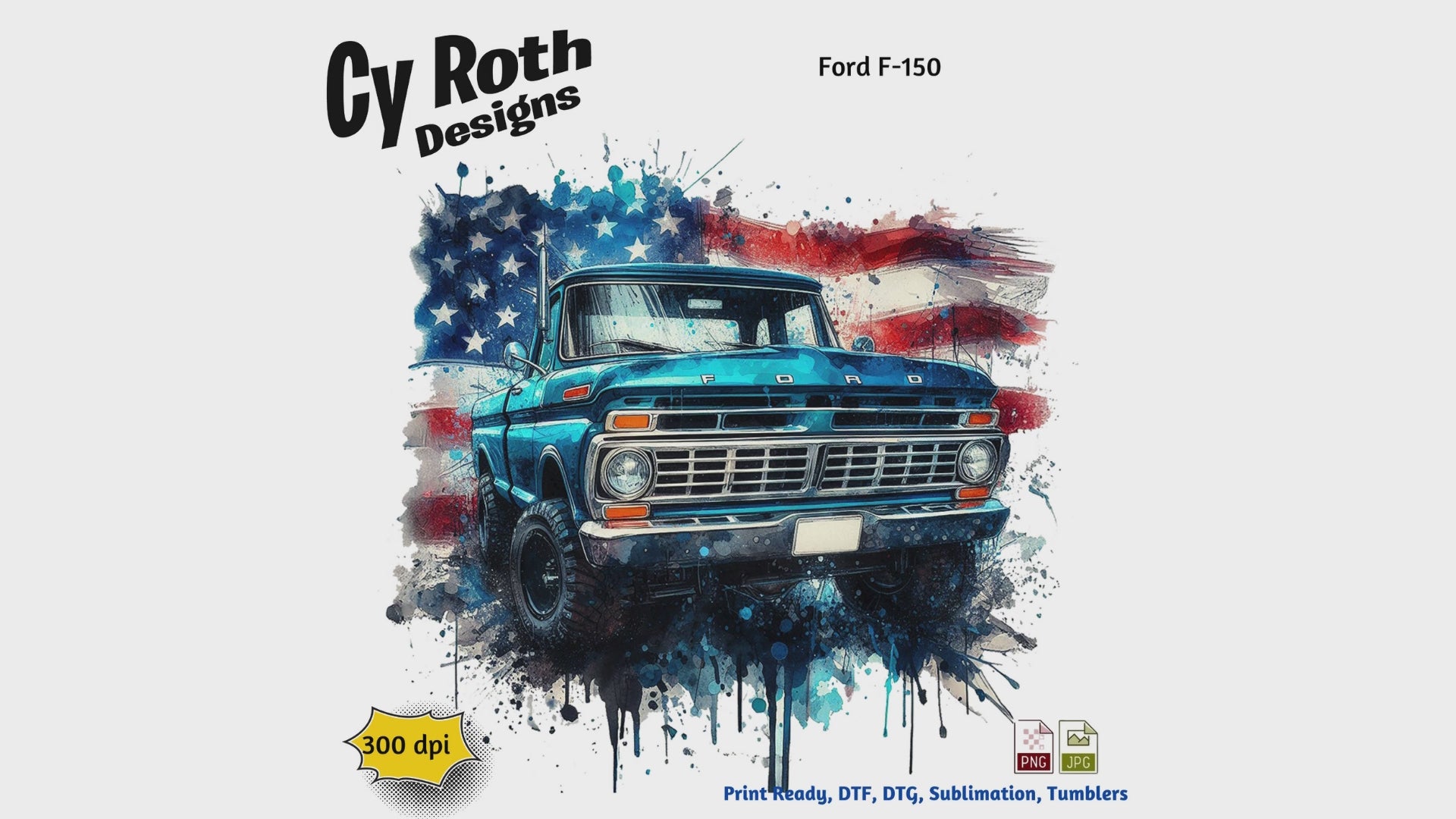 Ford F-150 Pick-up Truck sublimation file to make tumblers, t-Shirts, Printable Wall Art, Sweatshirts. Great to make personalized gifts. Popular junk journal image also.