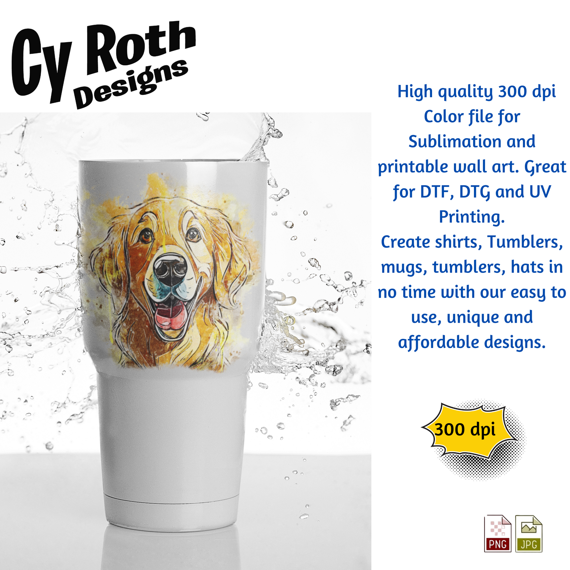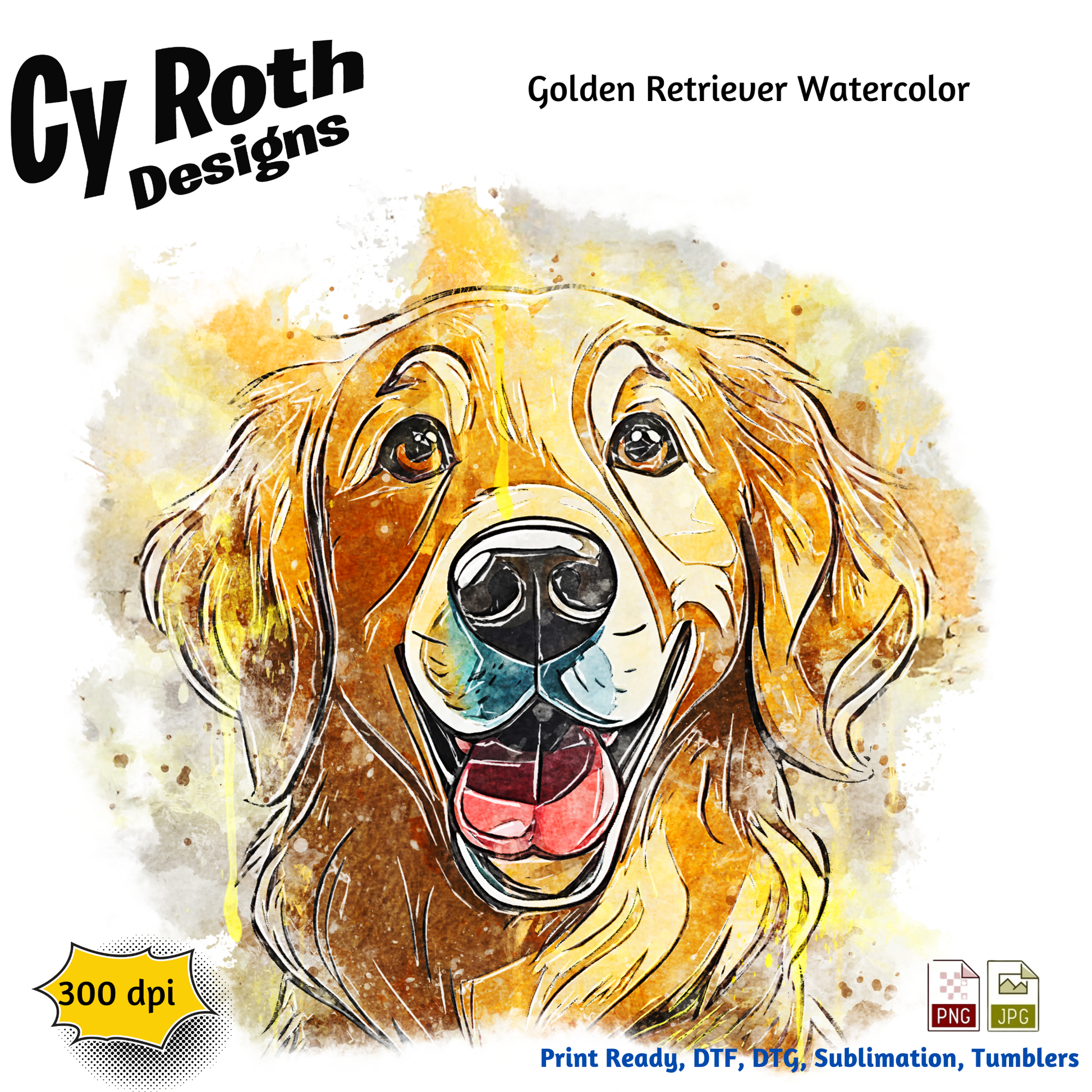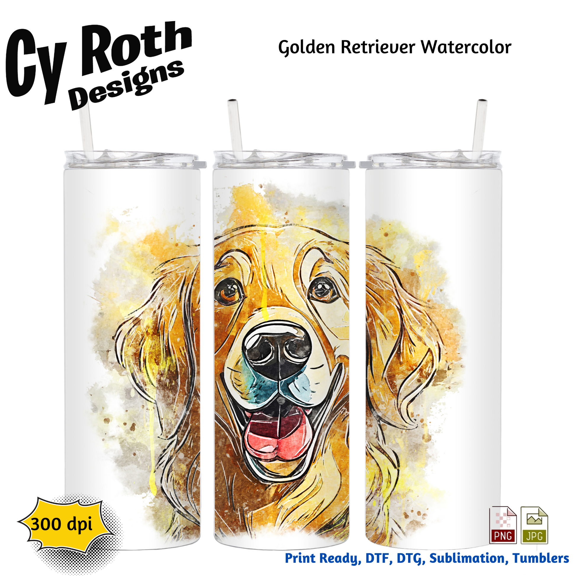 Golden Retriever watercolor sublimation file to make tumblers, t-Shirts, Printable Wall Art, Sweatshirts. Great to make personalized gifts. Popular junk journal image also.