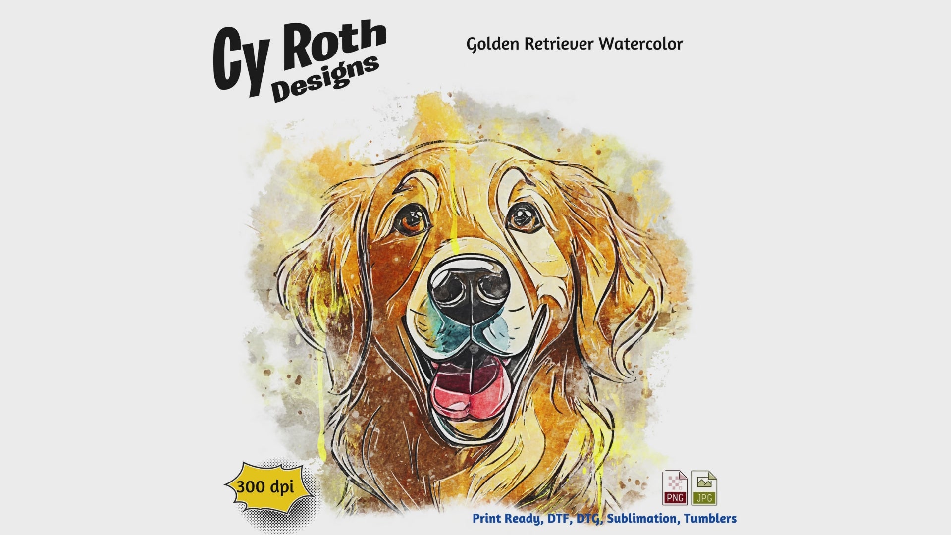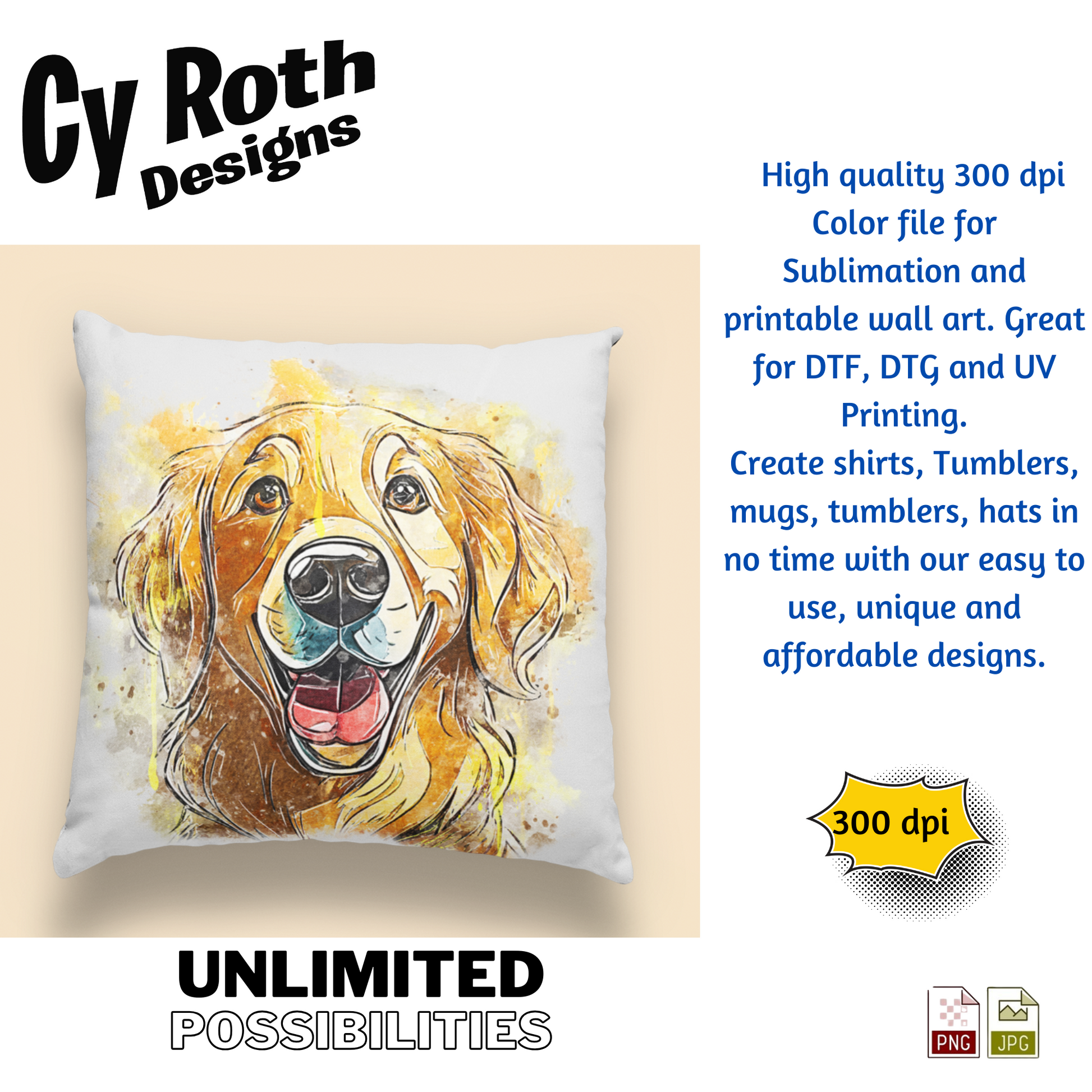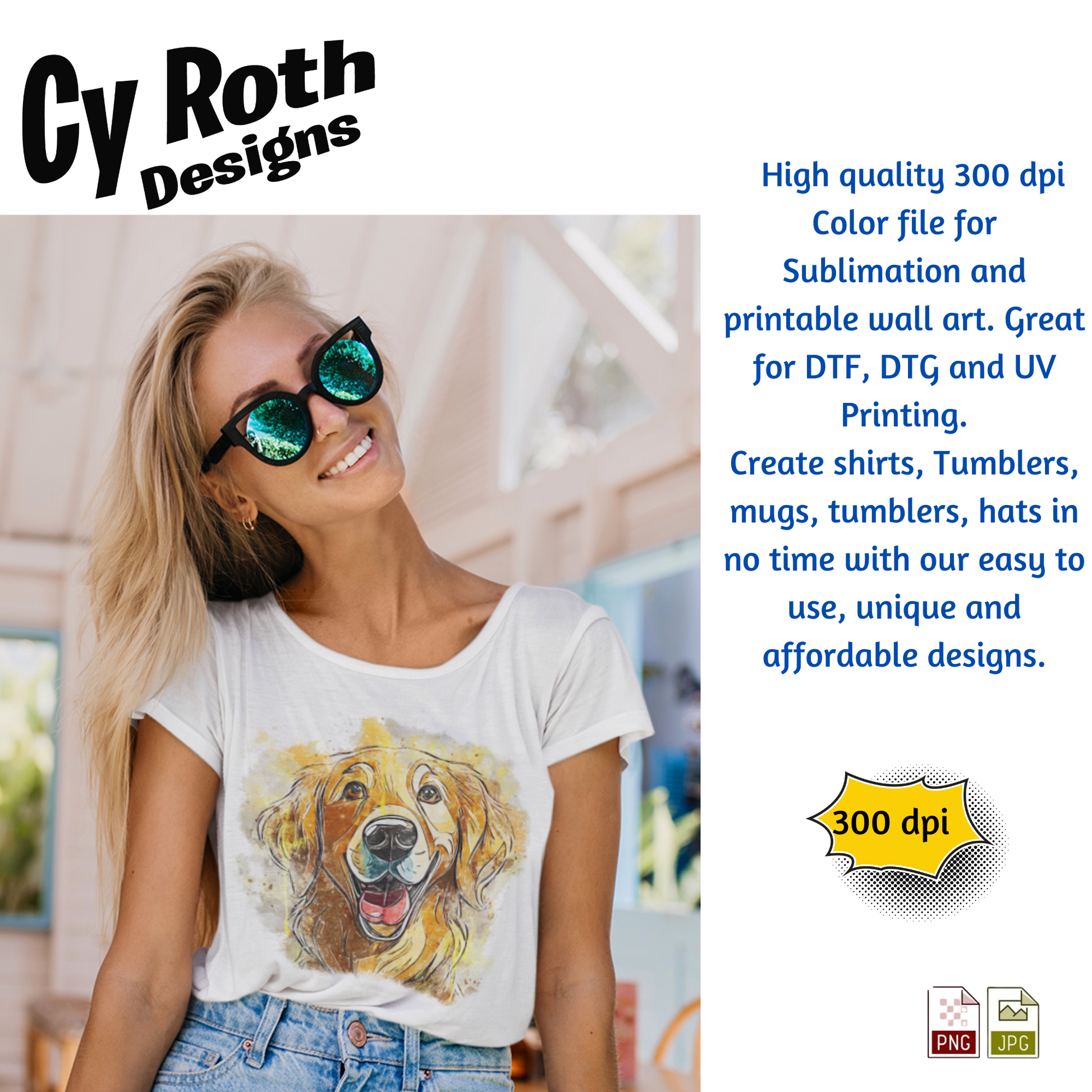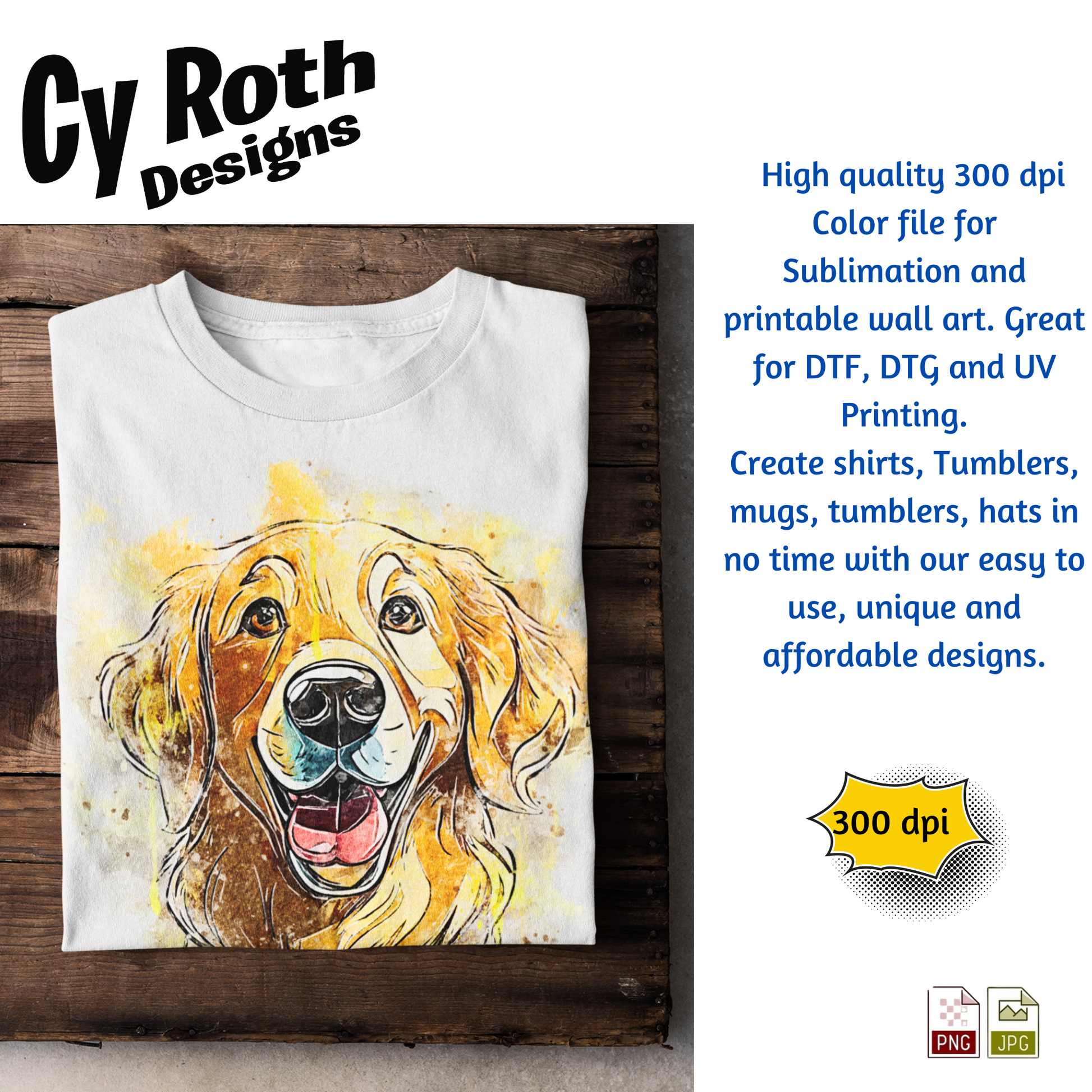 Golden Retriever watercolor sublimation file to make tumblers, t-Shirts, Printable Wall Art, Sweatshirts. Great to make personalized gifts. Popular junk journal image also.