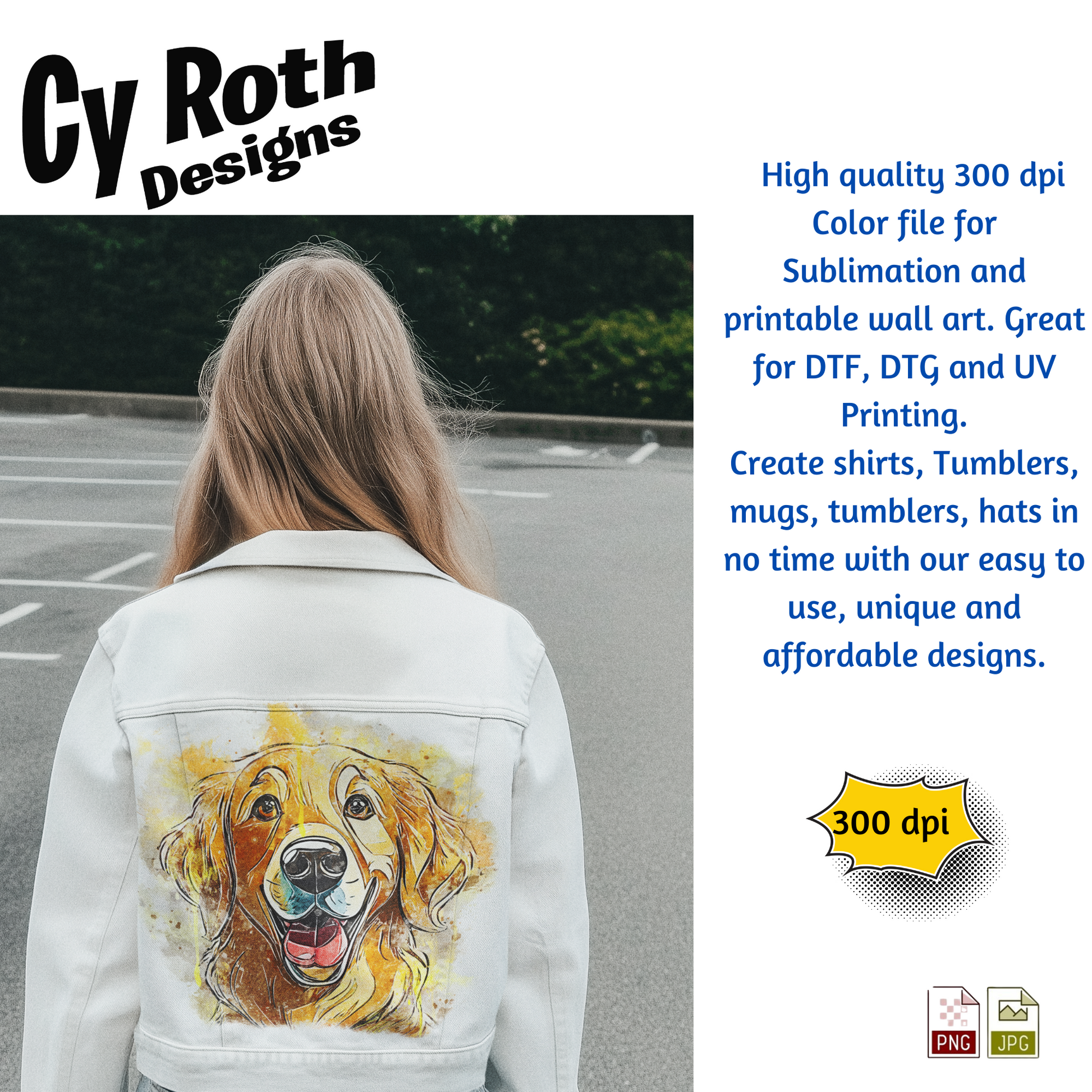 Golden Retriever Sublimation PNG JPG file, Wall Art 20oz skinny Tumbler, shirt PNG, Junk Journal image