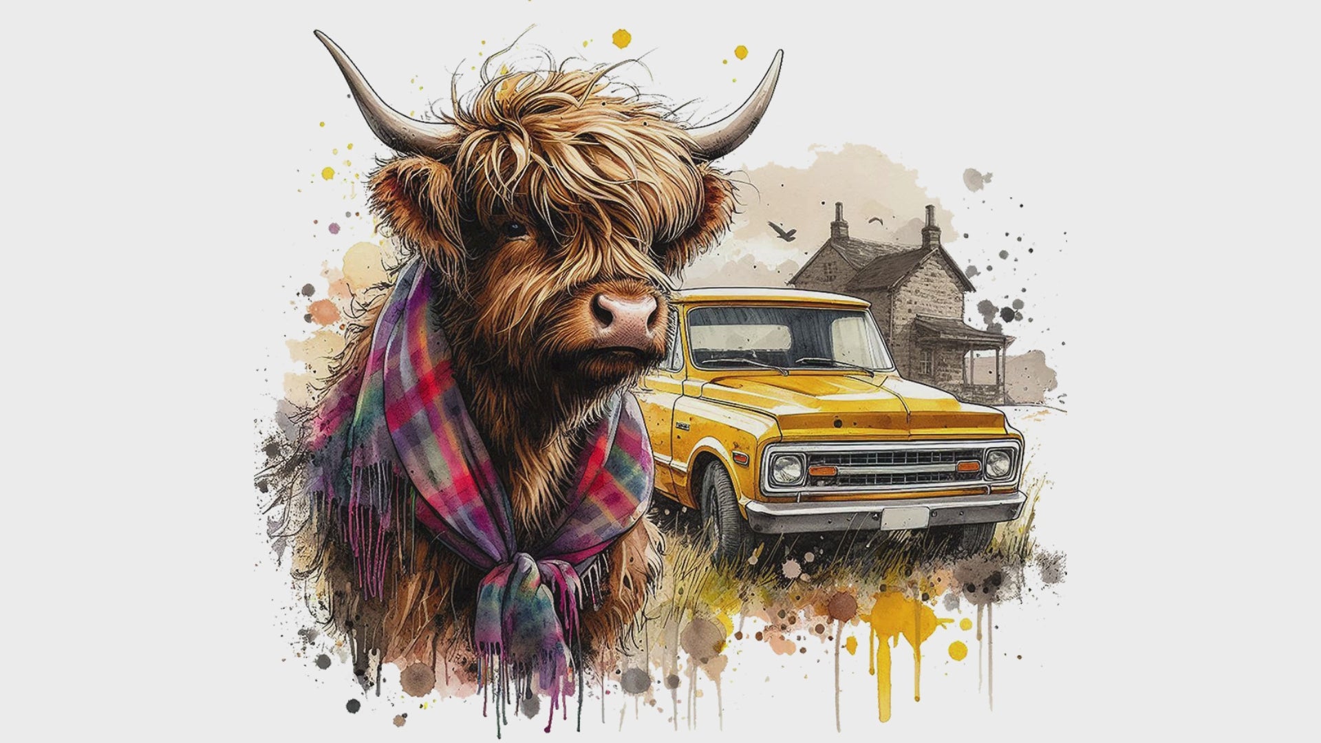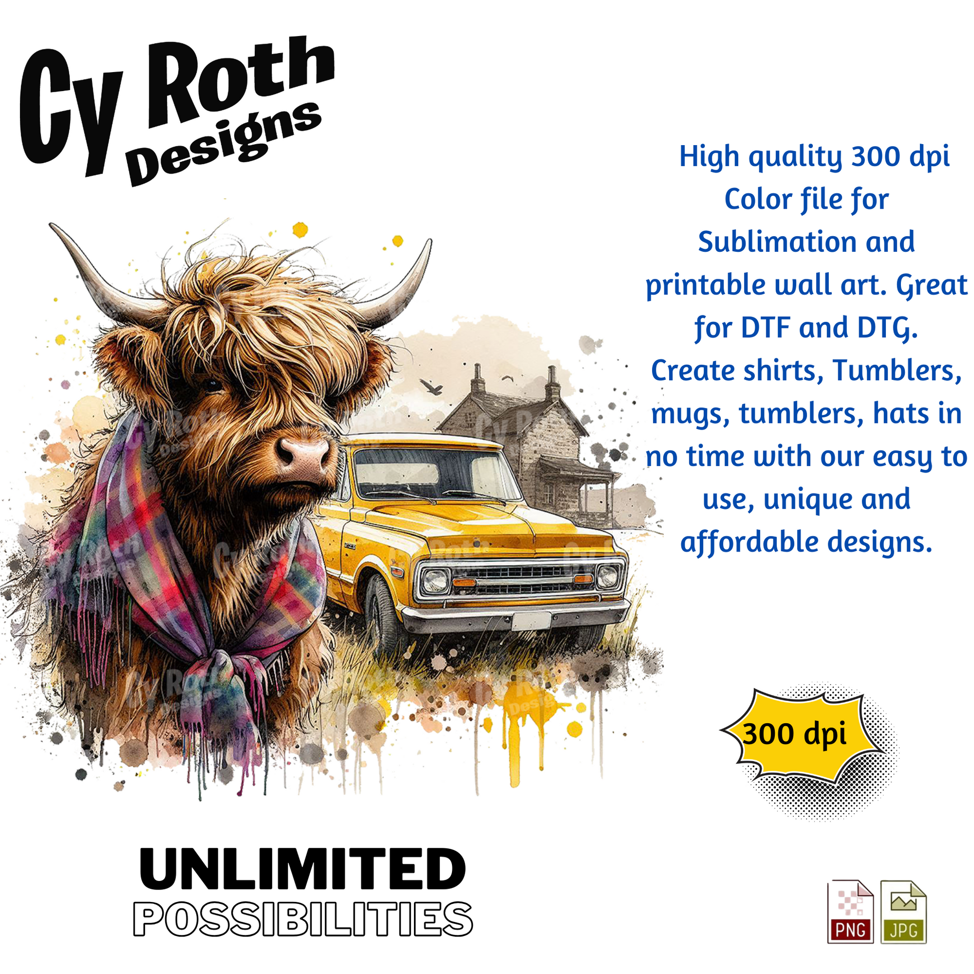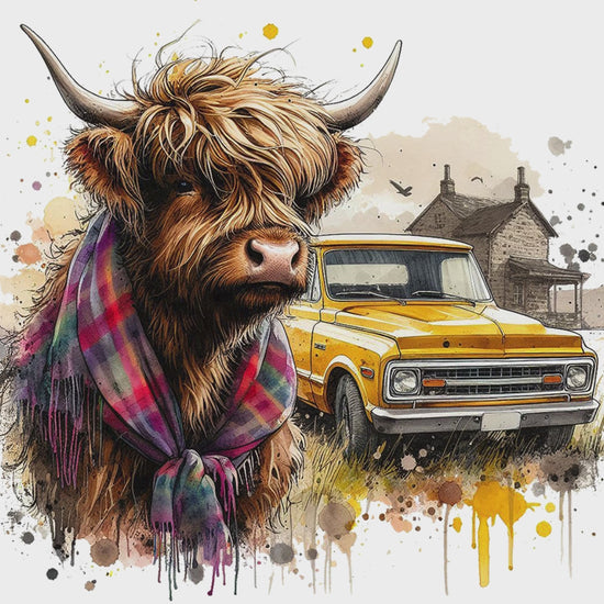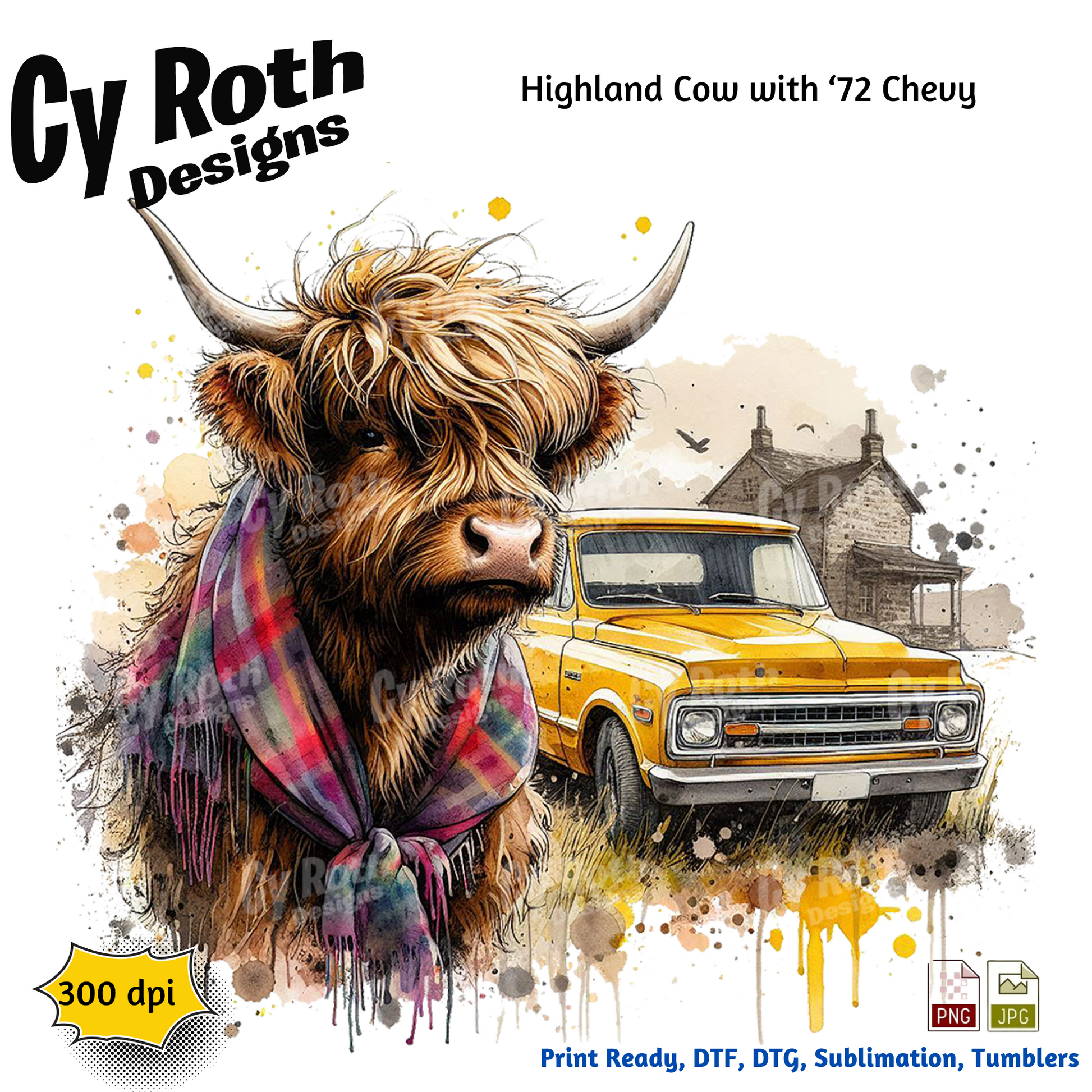 Highland Cow with 1972 Chevy Truck sublimation file to make tumblers, t-Shirts, Printable Wall Art, Sweatshirts. Great to make personalized gifts. Popular junk journal image also.
