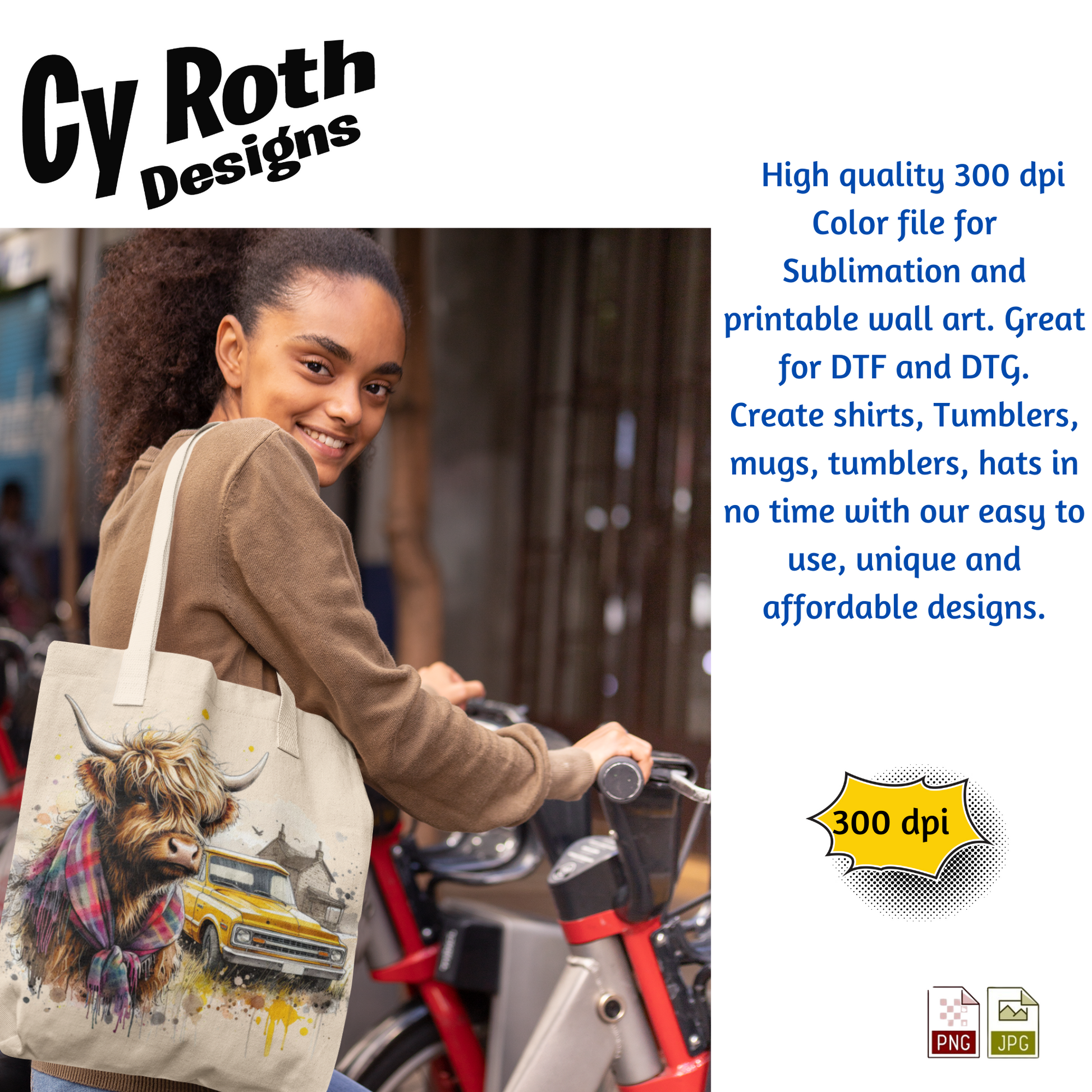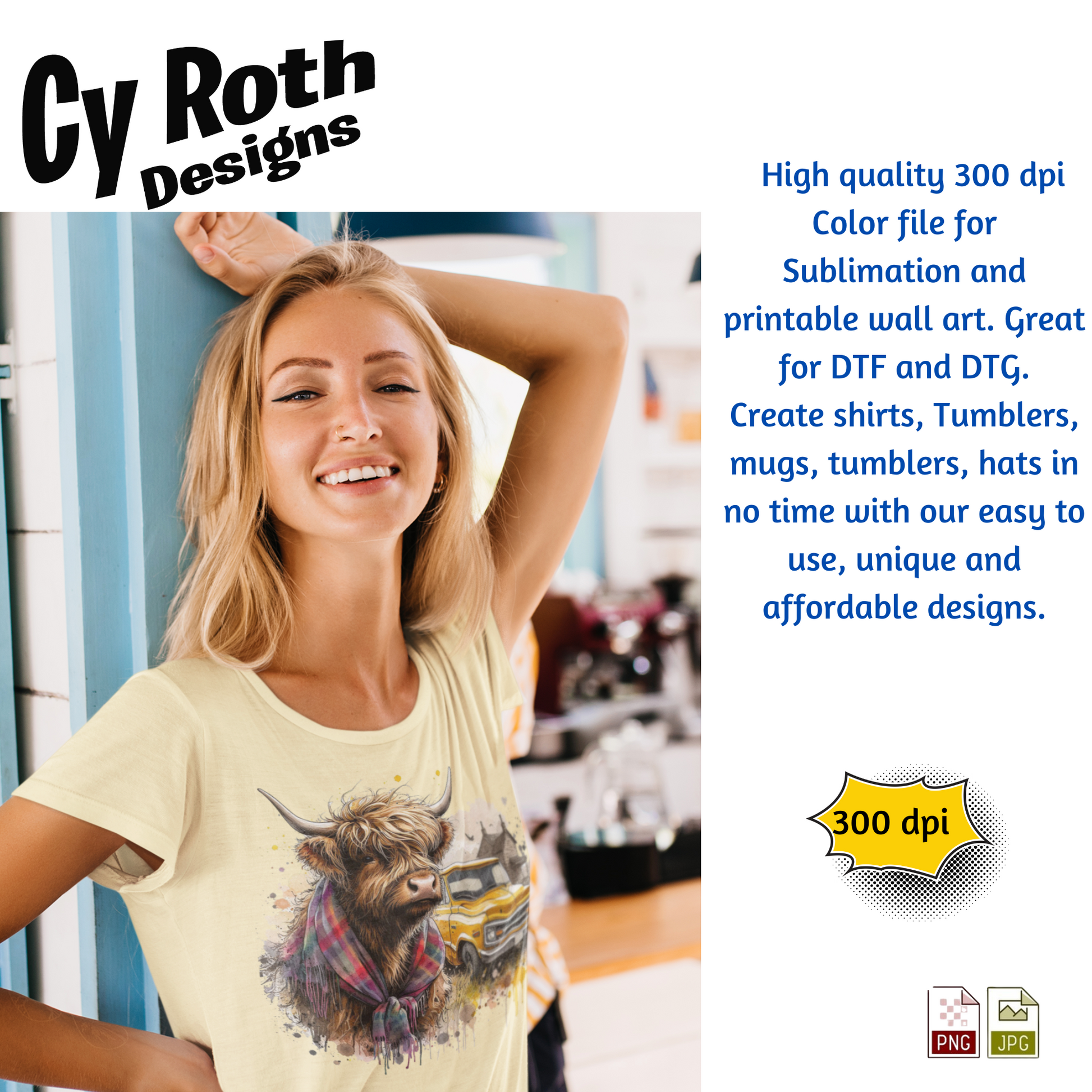Highland Cow Sublimation PNG JPG file, Wall Art 20oz skinny Tumbler, shirt PNG, Junk Journal image