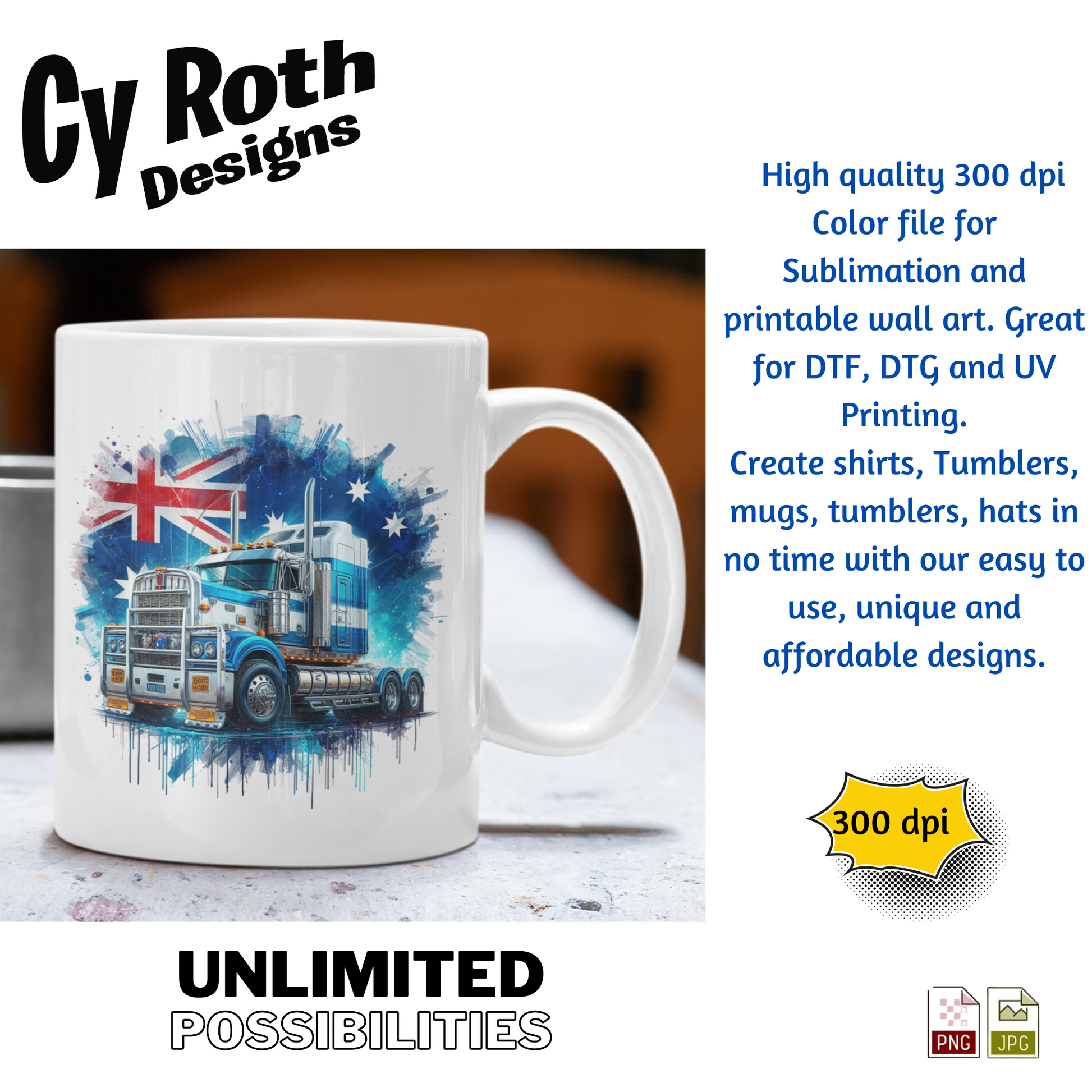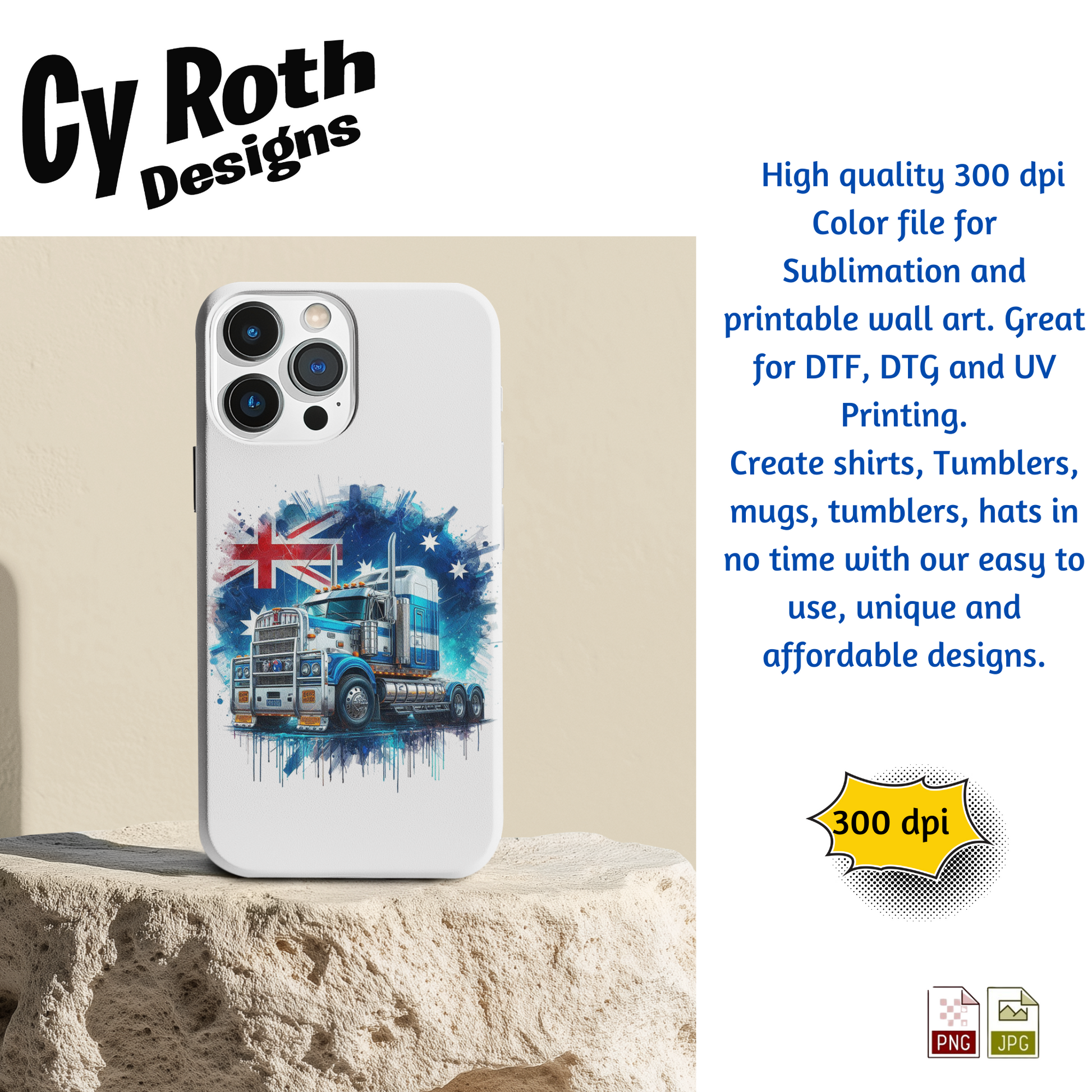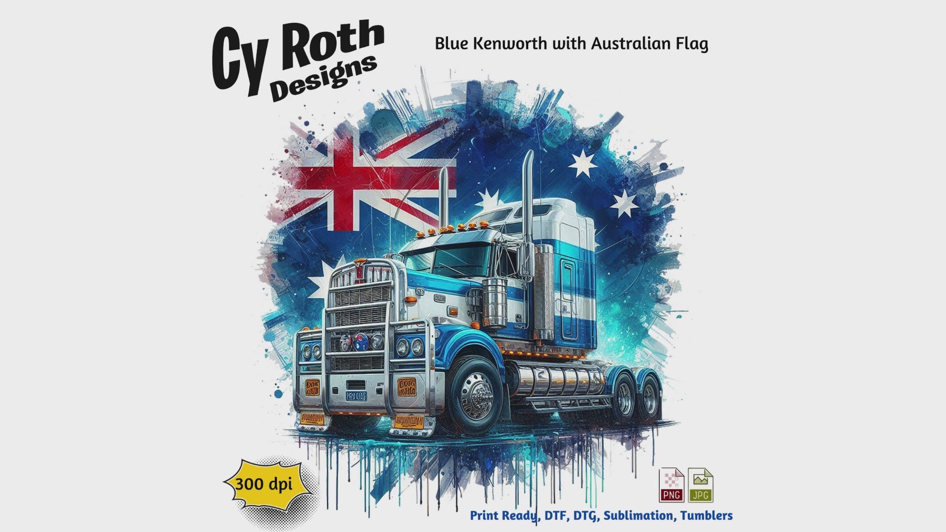 Kenworth with Australian Flag sublimation file to make tumblers, t-Shirts, Printable Wall Art, Sweatshirts. Great to make personalized gifts. Popular junk journal image also.