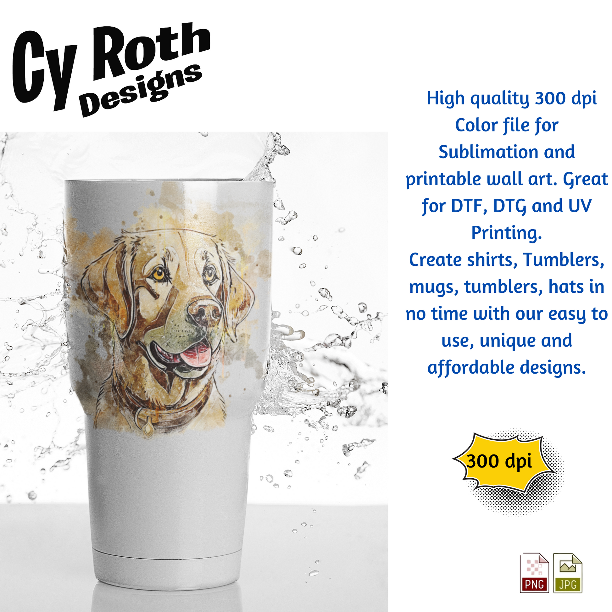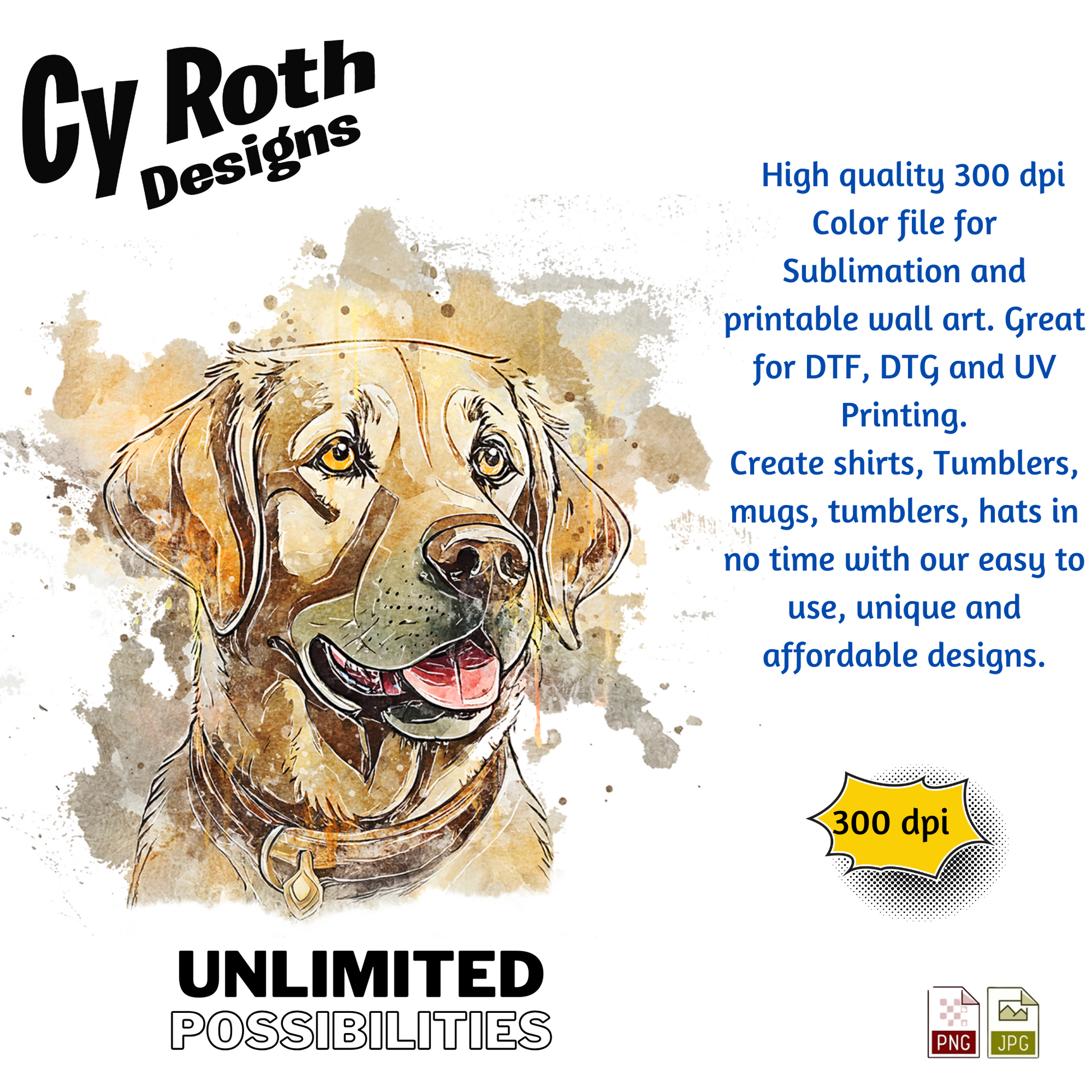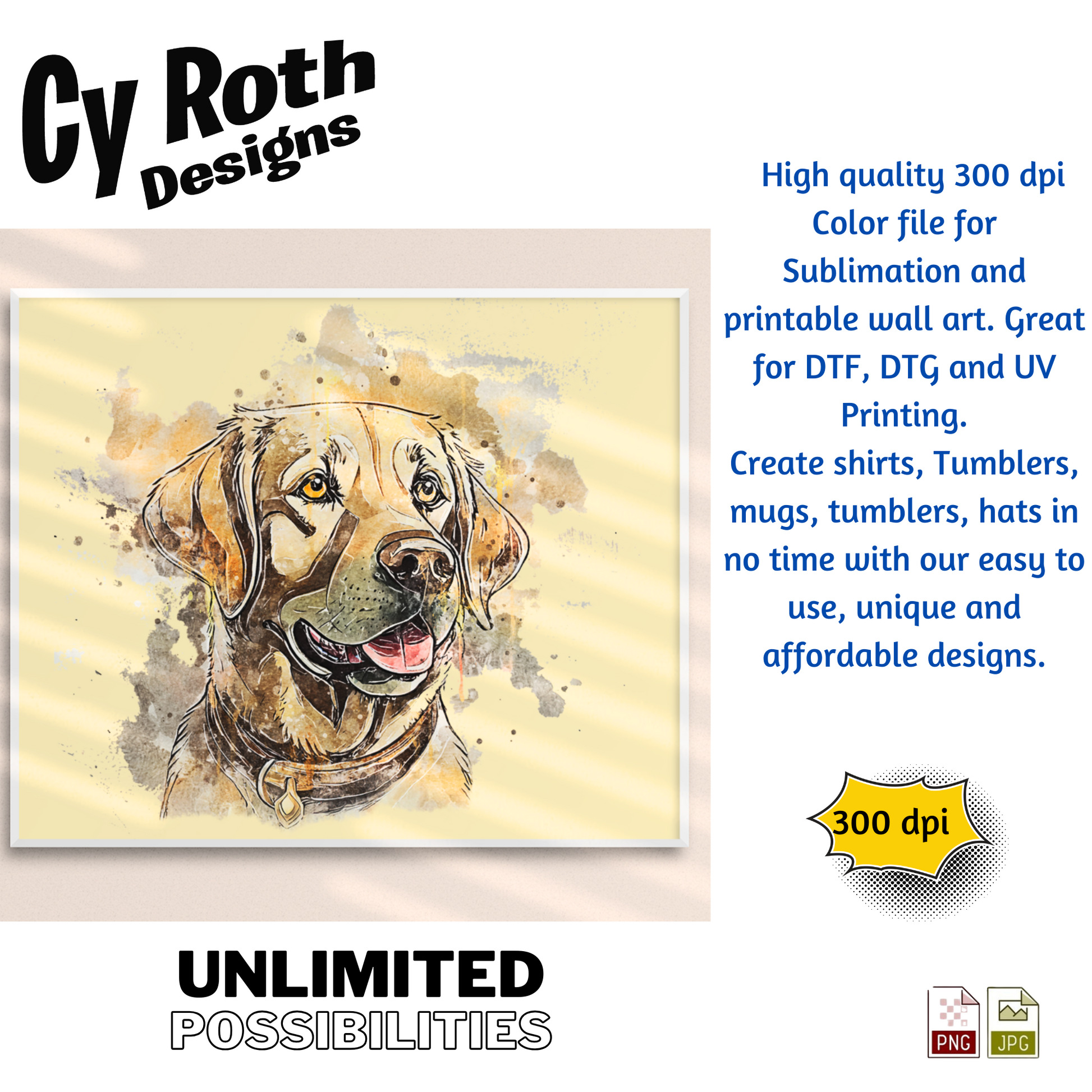 Labrador watercolor sublimation file to make tumblers, t-Shirts, Printable Wall Art, Sweatshirts. Great to make personalized gifts. Popular junk journal image also.