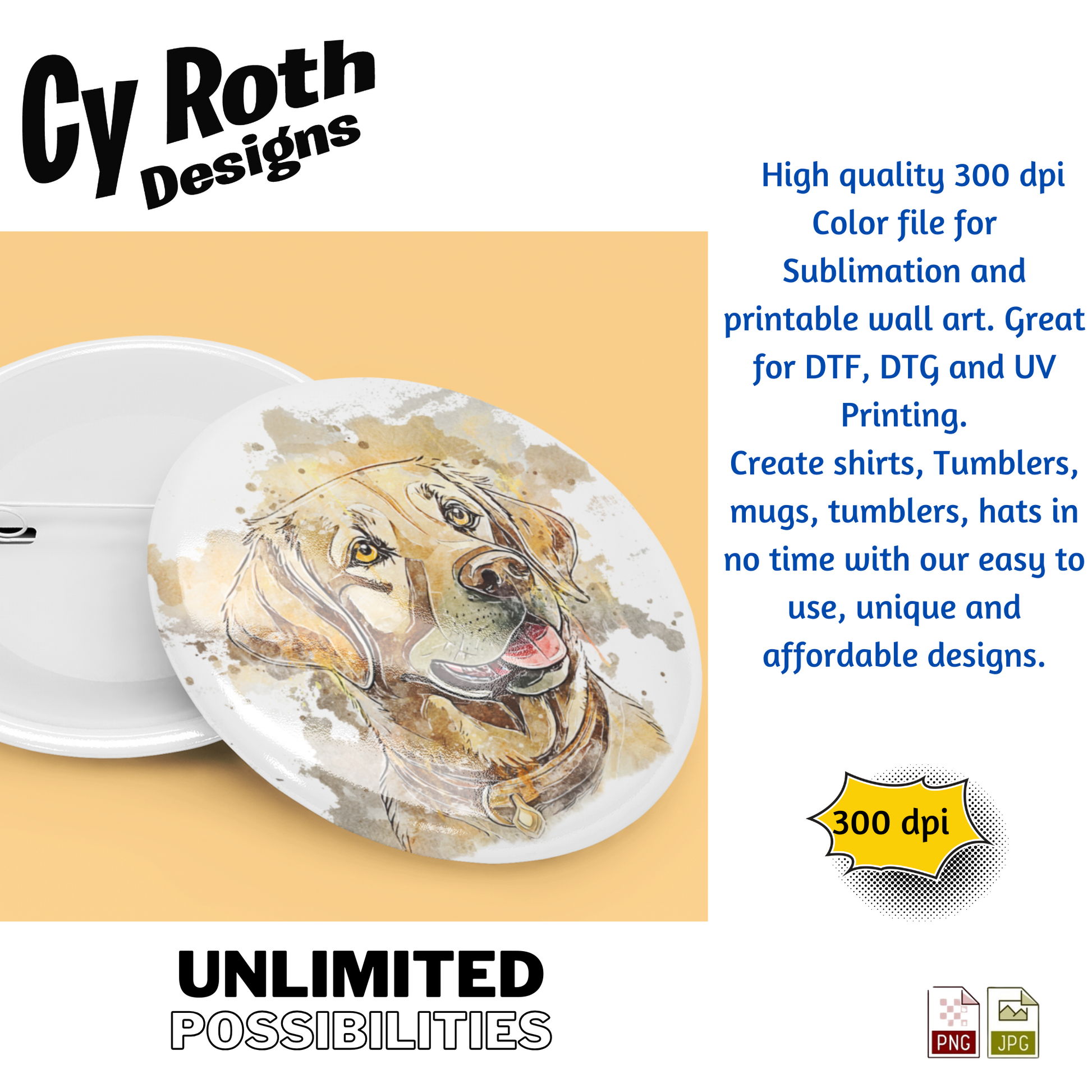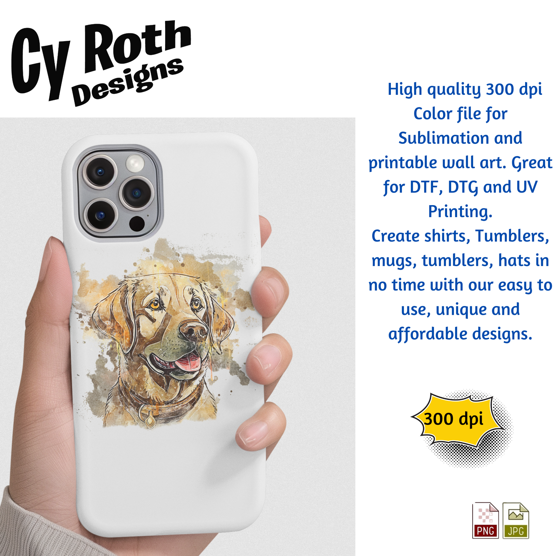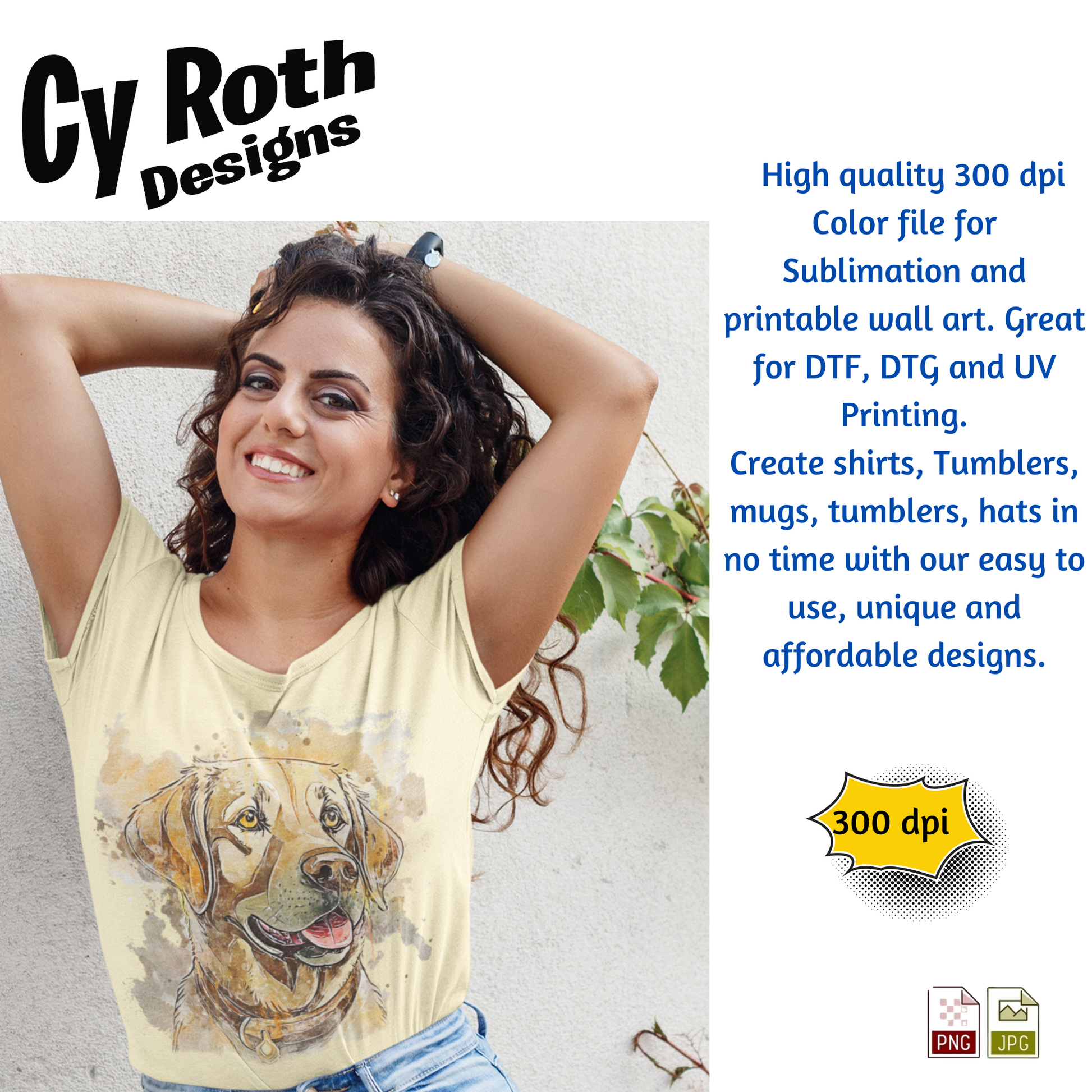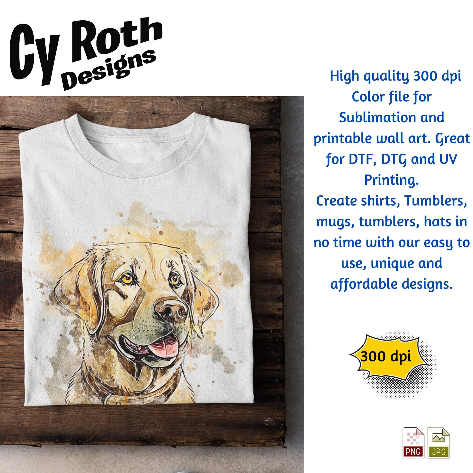 Labrador watercolor sublimation file to make tumblers, t-Shirts, Printable Wall Art, Sweatshirts. Great to make personalized gifts. Popular junk journal image also.