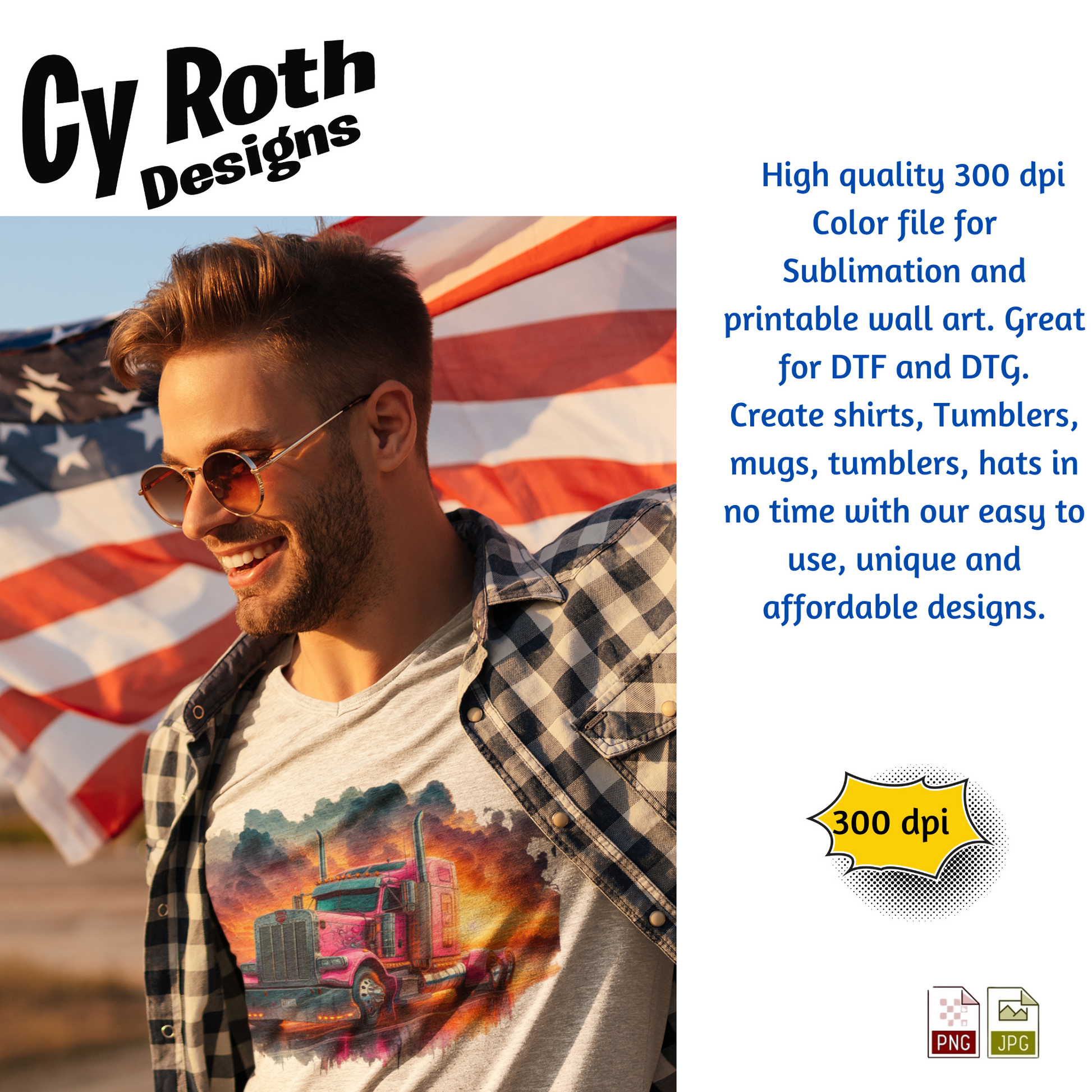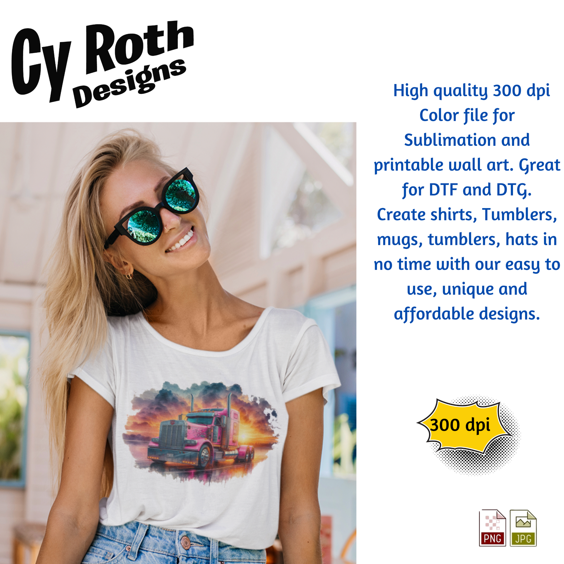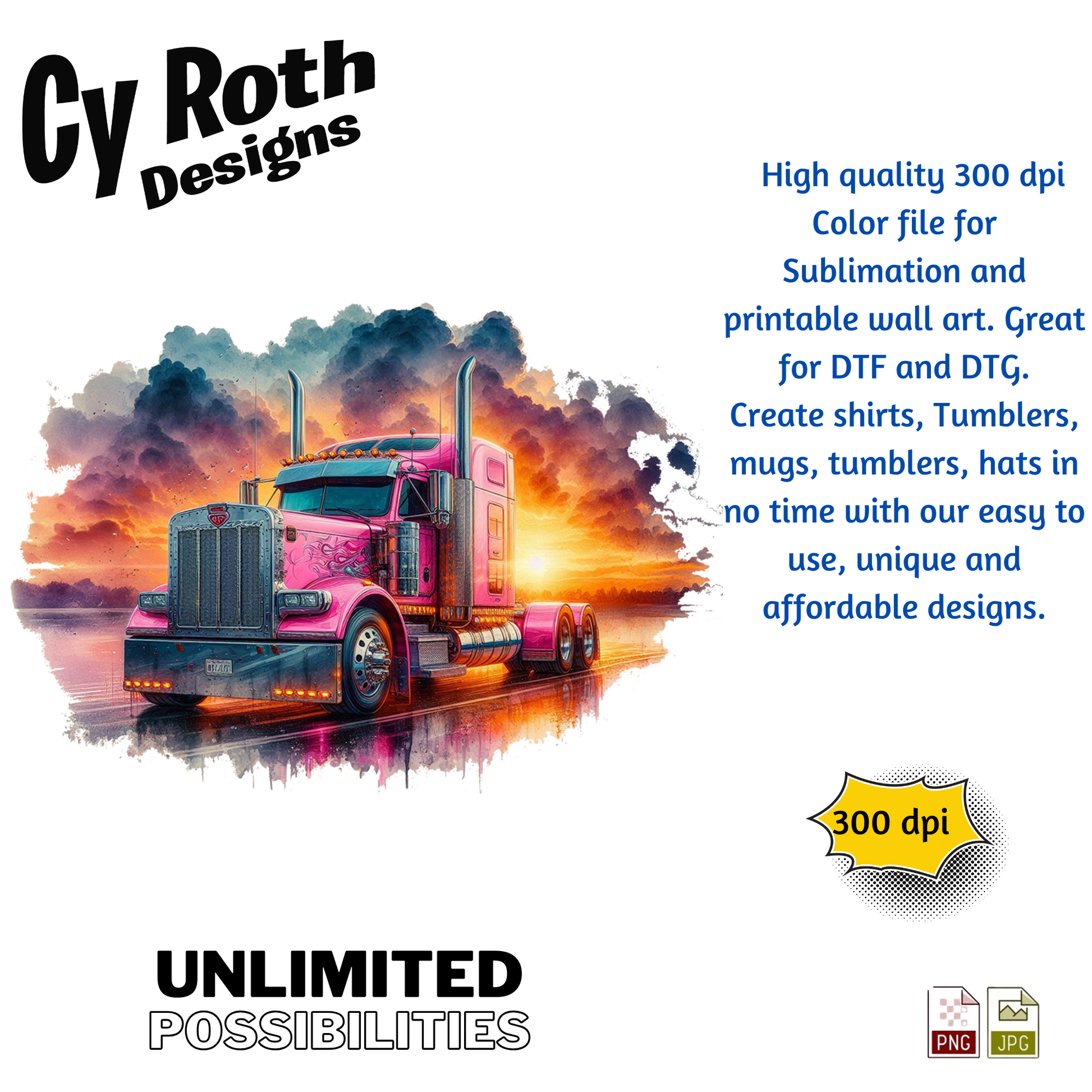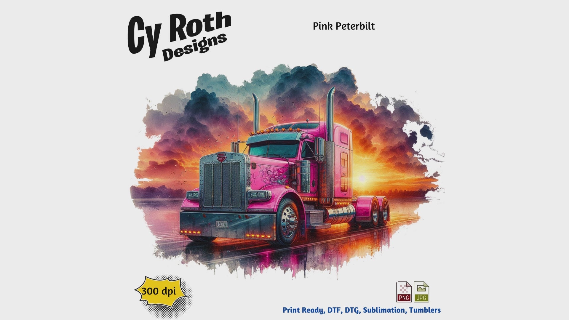 Pink Peterbilt sublimation file to make tumblers, t-Shirts, Printable Wall Art, Sweatshirts. Great to make personalized gifts. Popular junk journal image also.