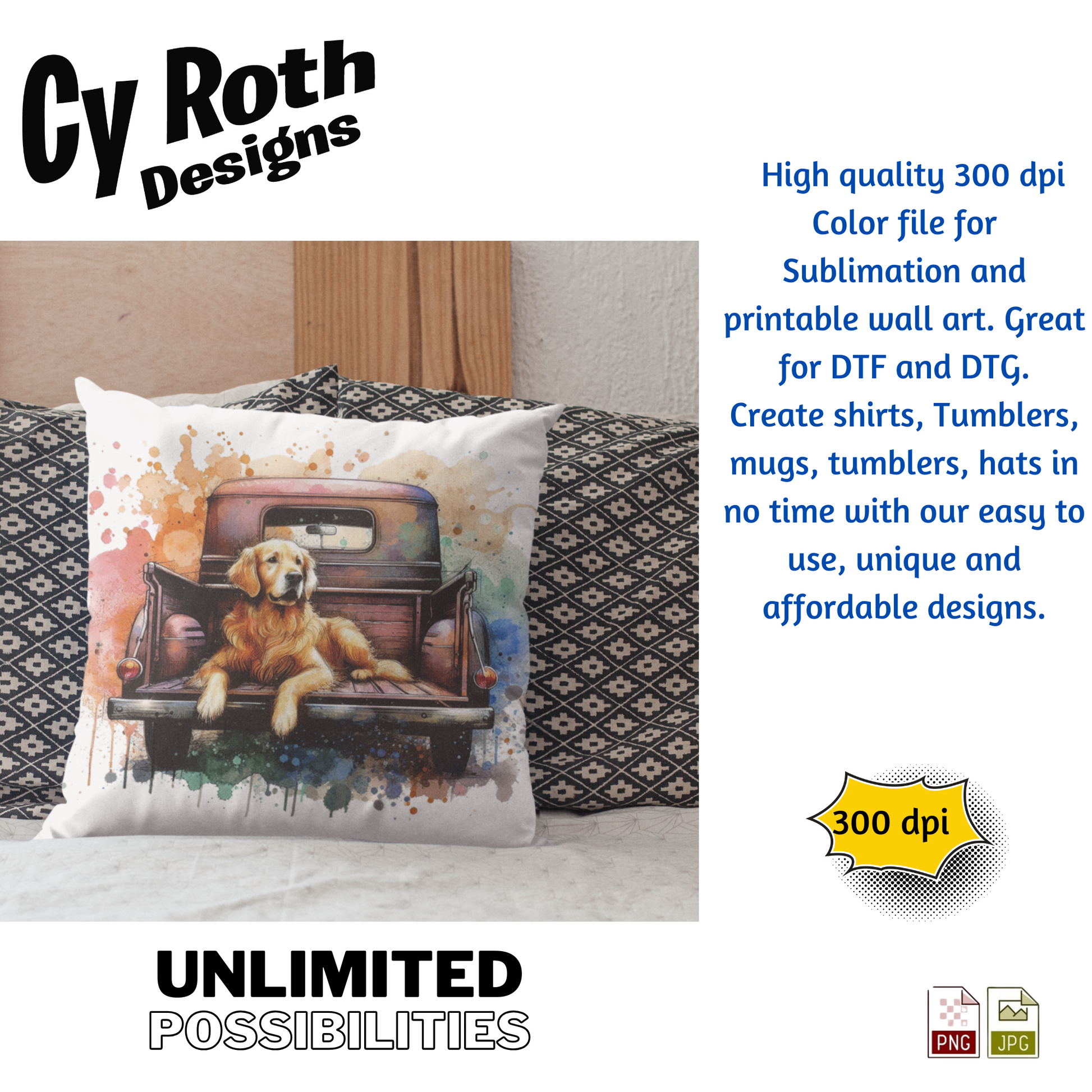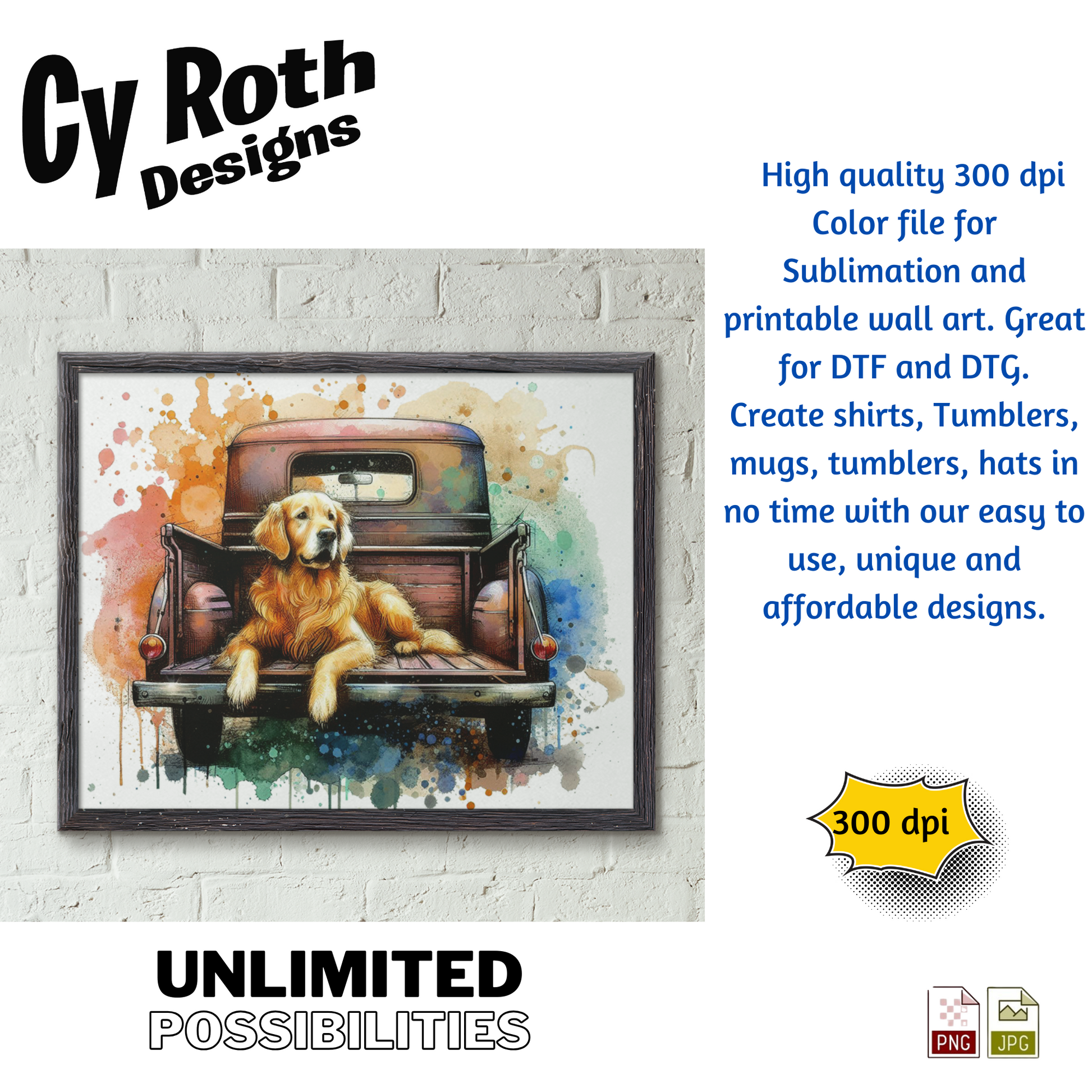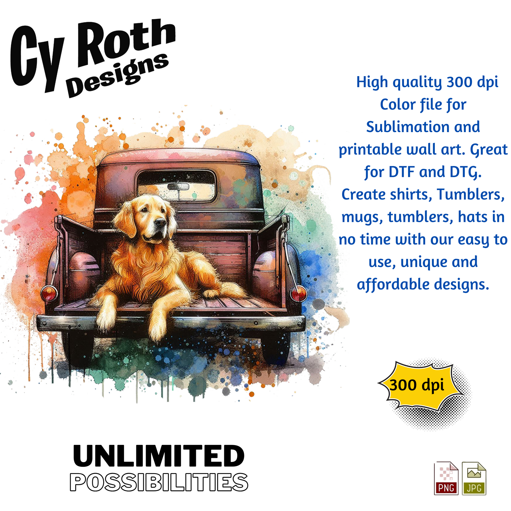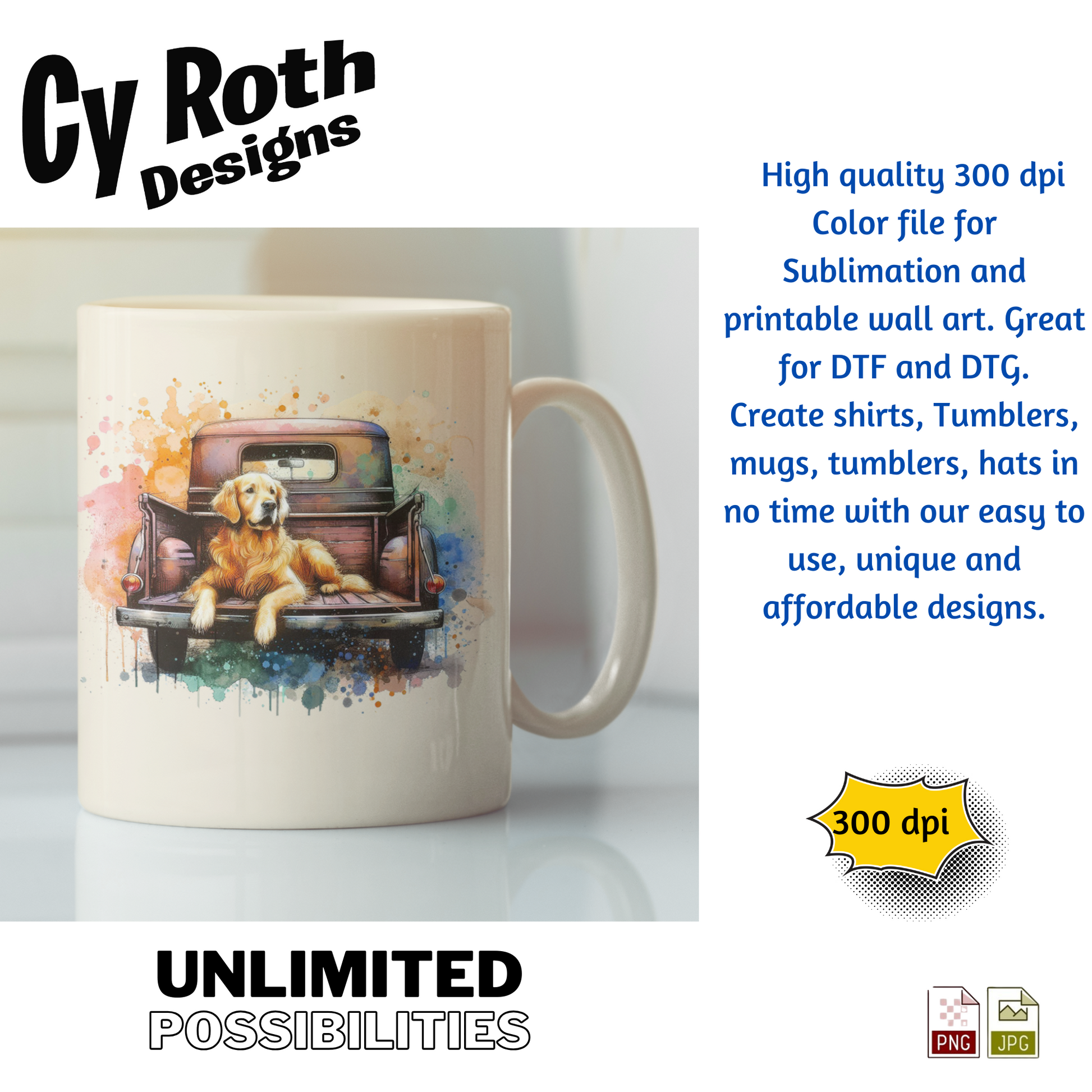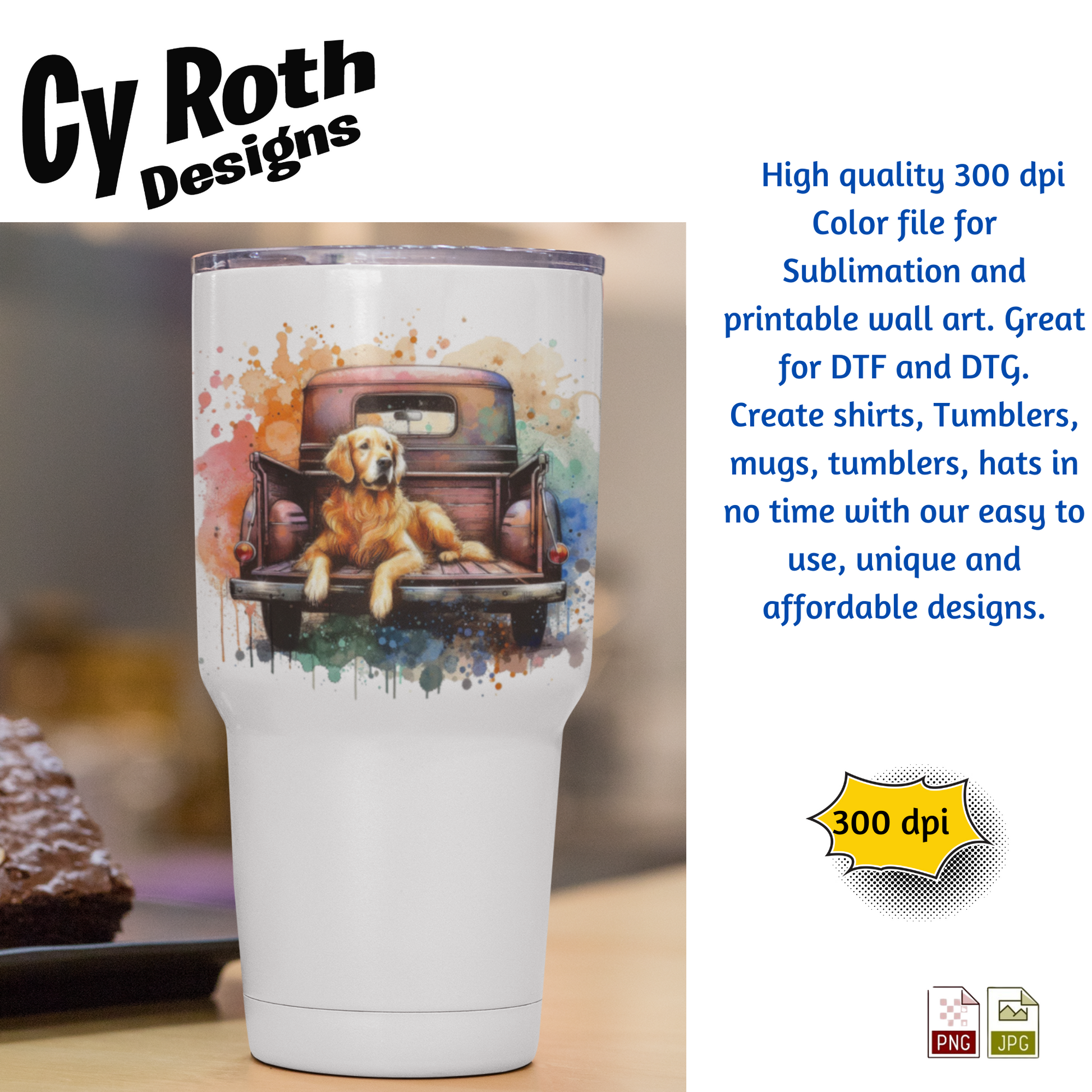 Labrador in vintage pick-up truck sublimation file to make tumblers, t-Shirts, Printable Wall Art, Sweatshirts. Great to make personalized gifts. Popular junk journal image also.