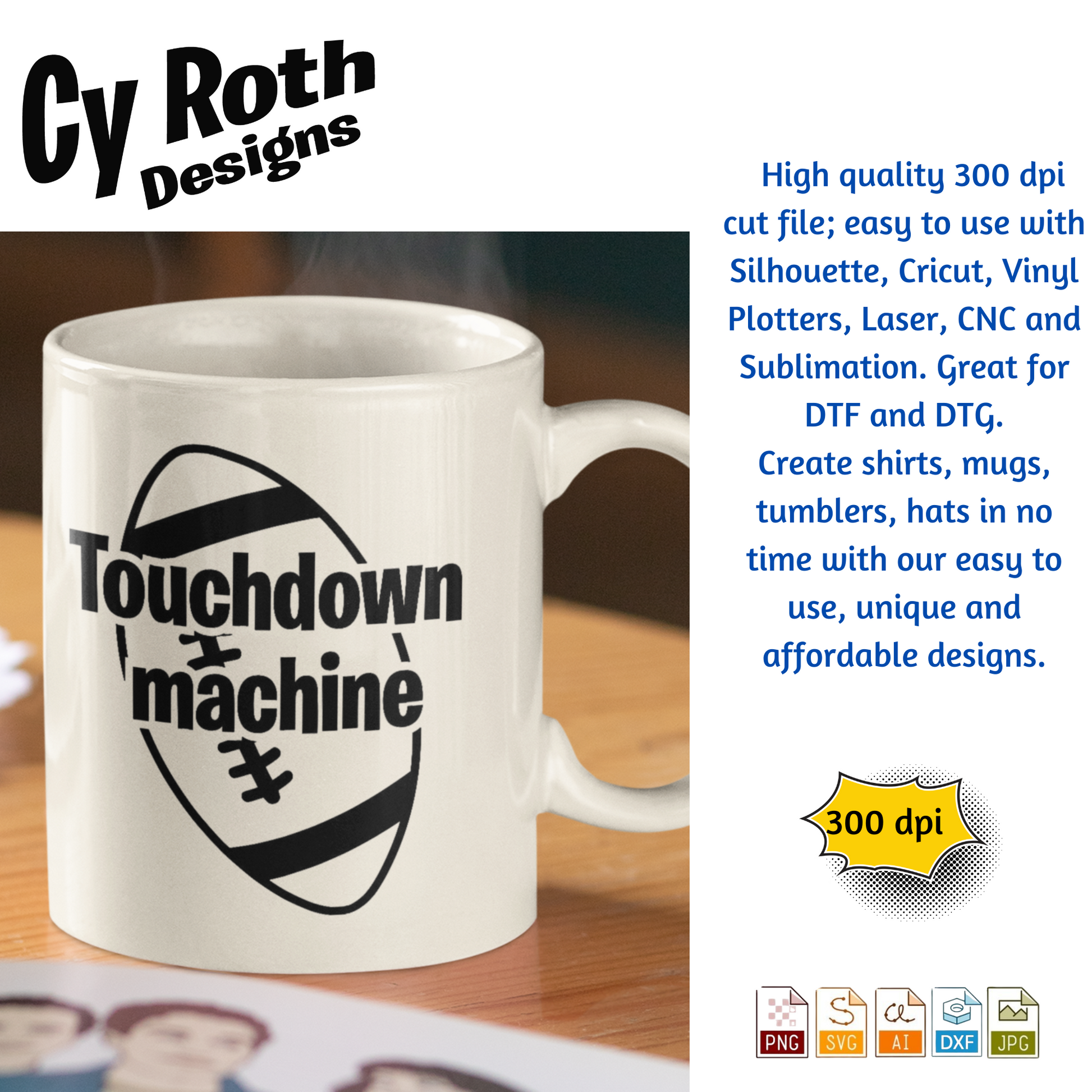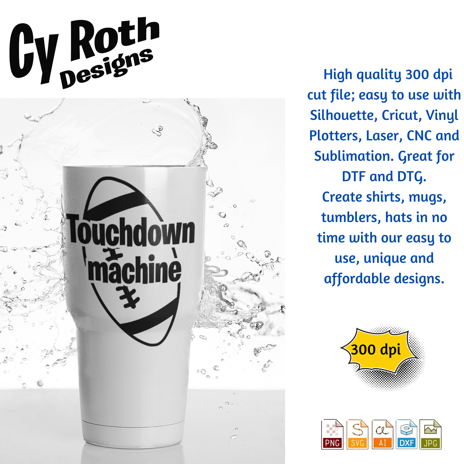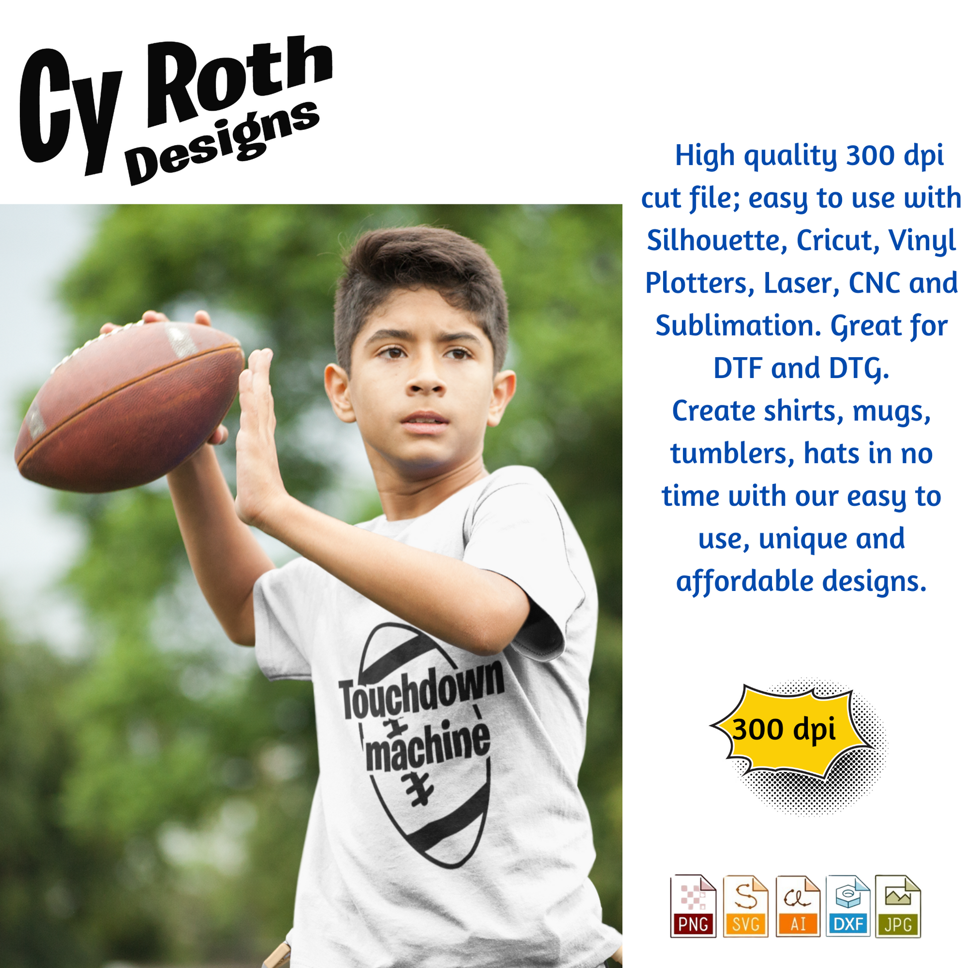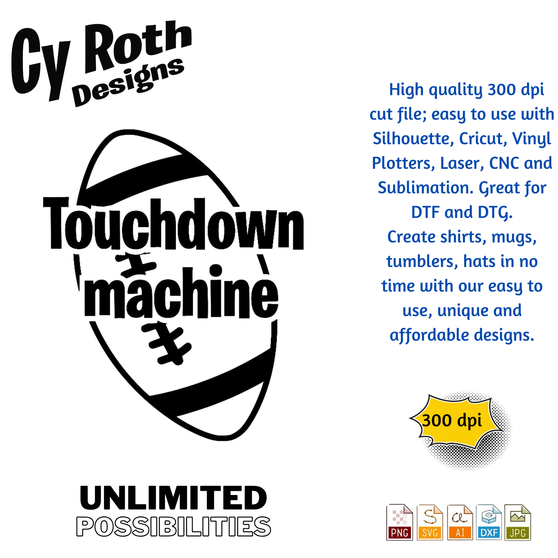 Football svg png jpg ai dxf file, for Silhouette, Cricut, Vinyl Plotters, Laser, CNC and Sublimation. Great for DTF and DTG. Touchdown Machine
