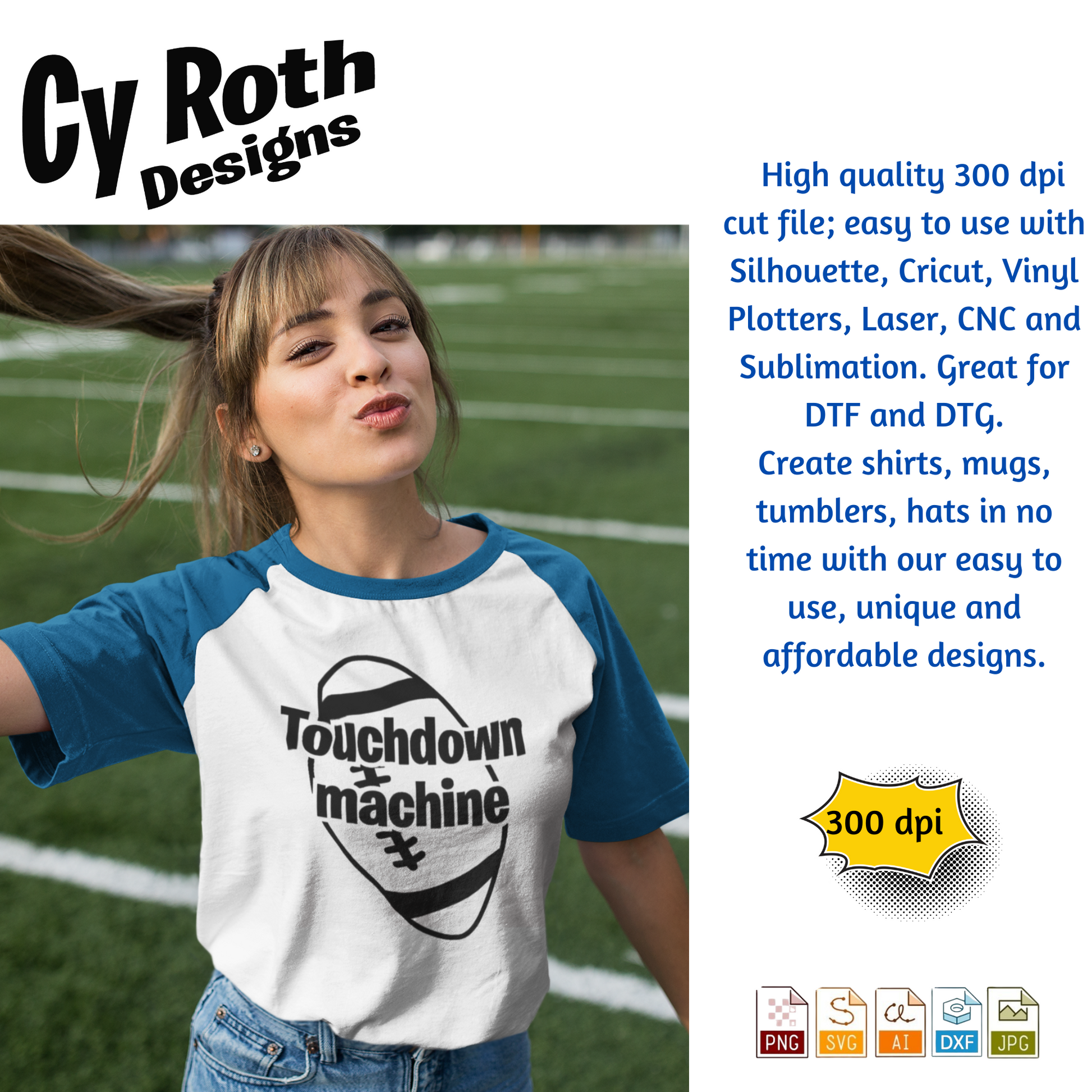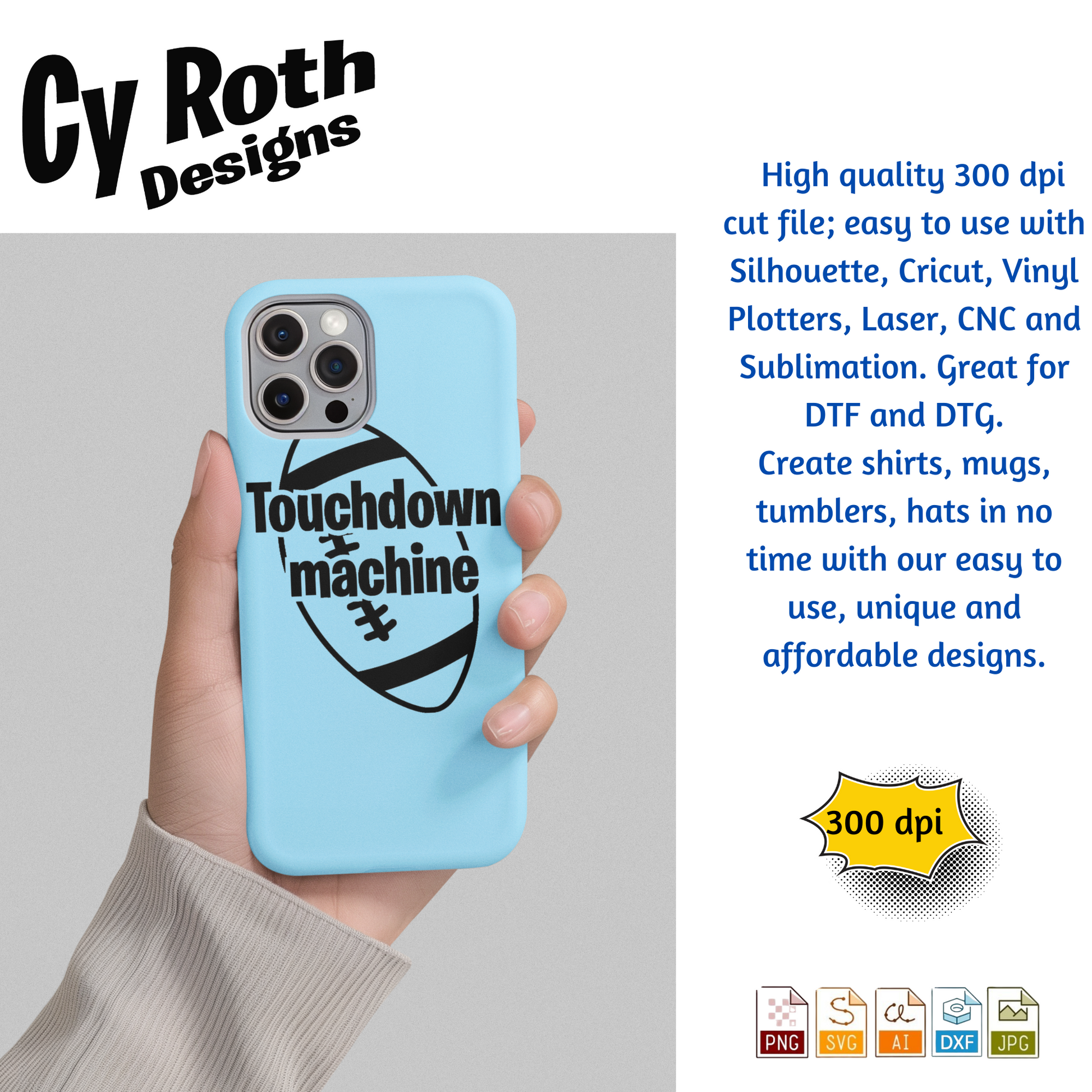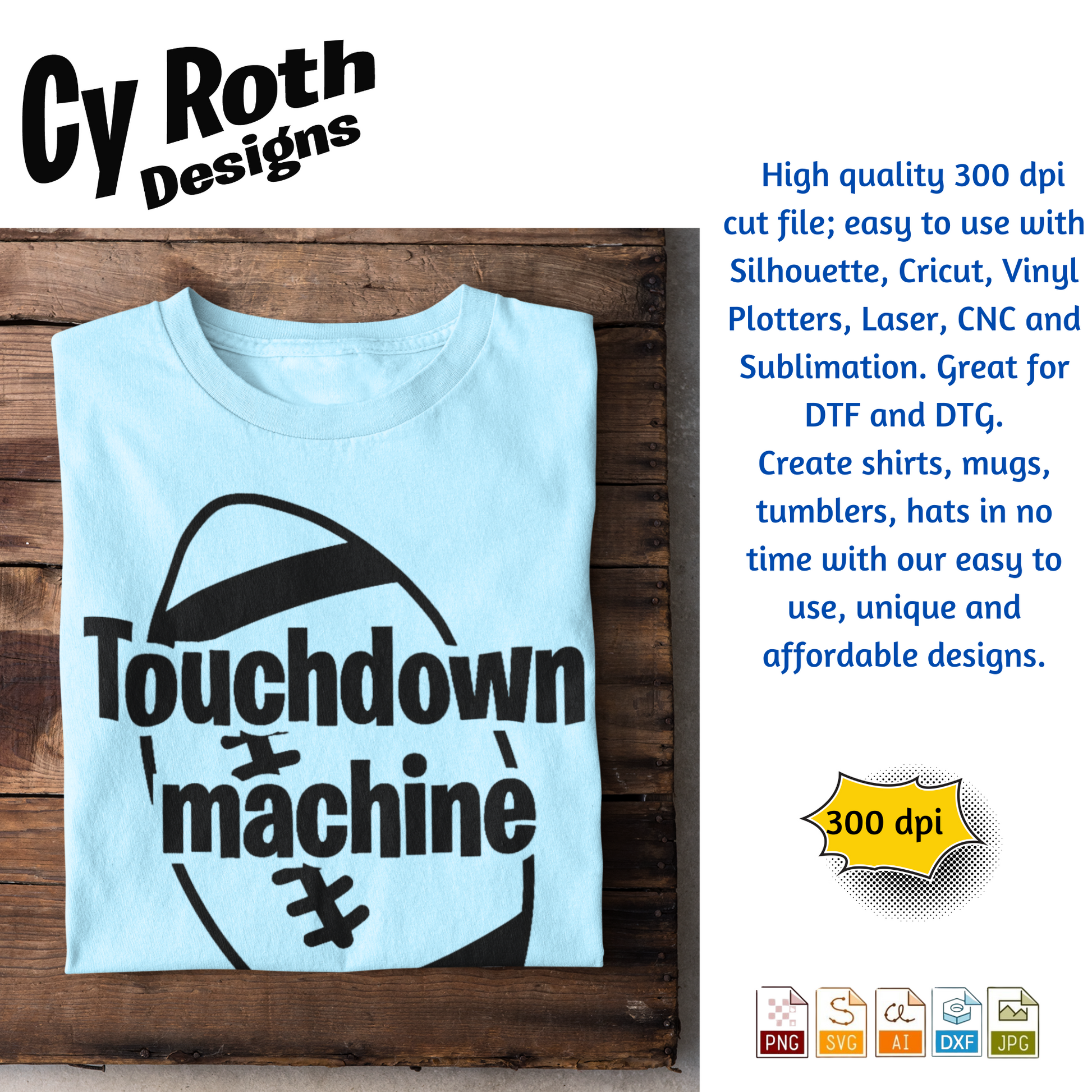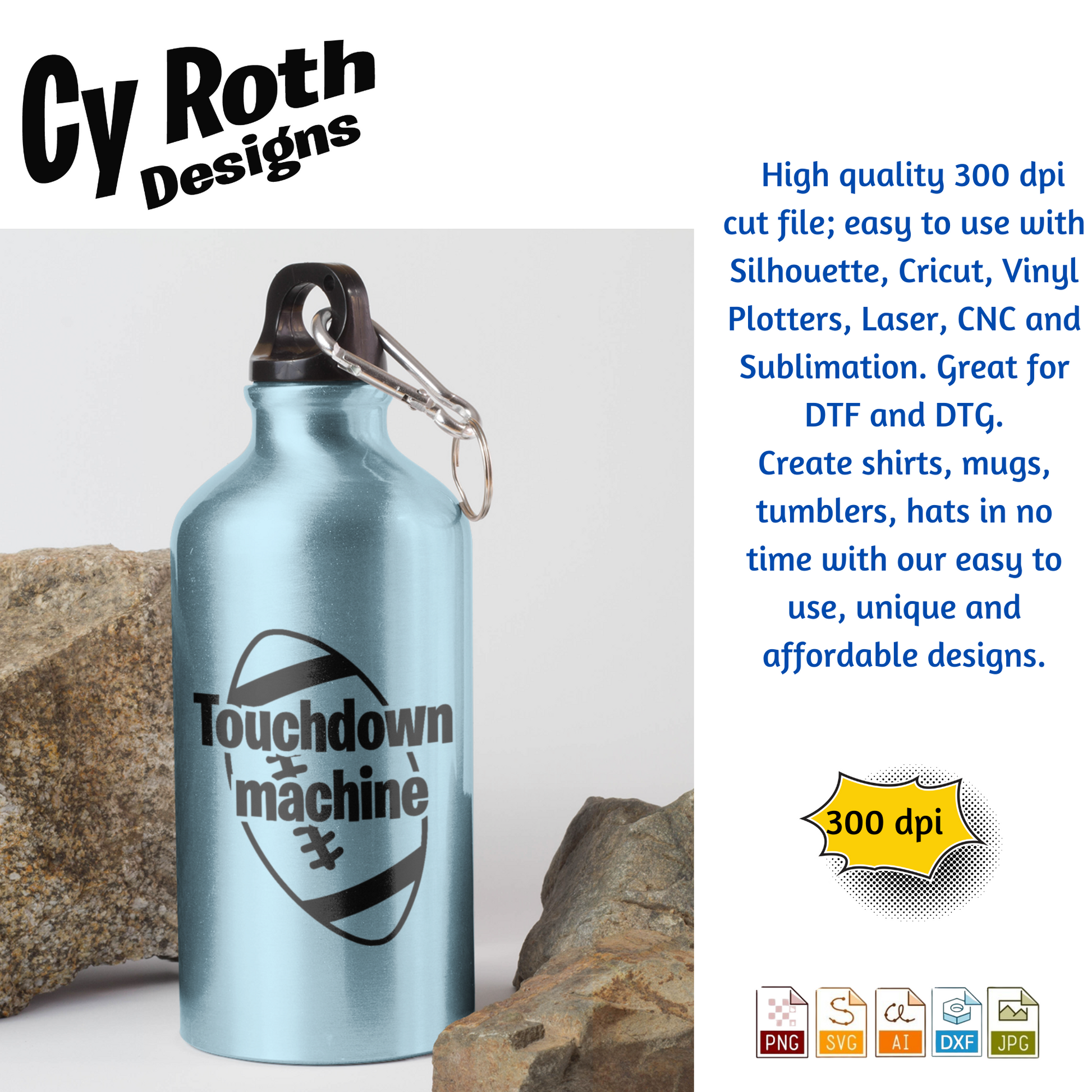 Football svg png jpg ai dxf file, for Silhouette, Cricut, Vinyl Plotters, Laser, CNC and Sublimation. Great for DTF and DTG. Touchdown Machine