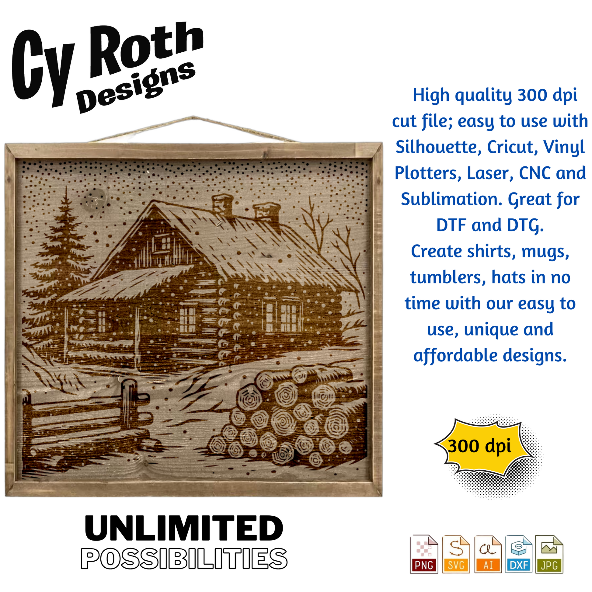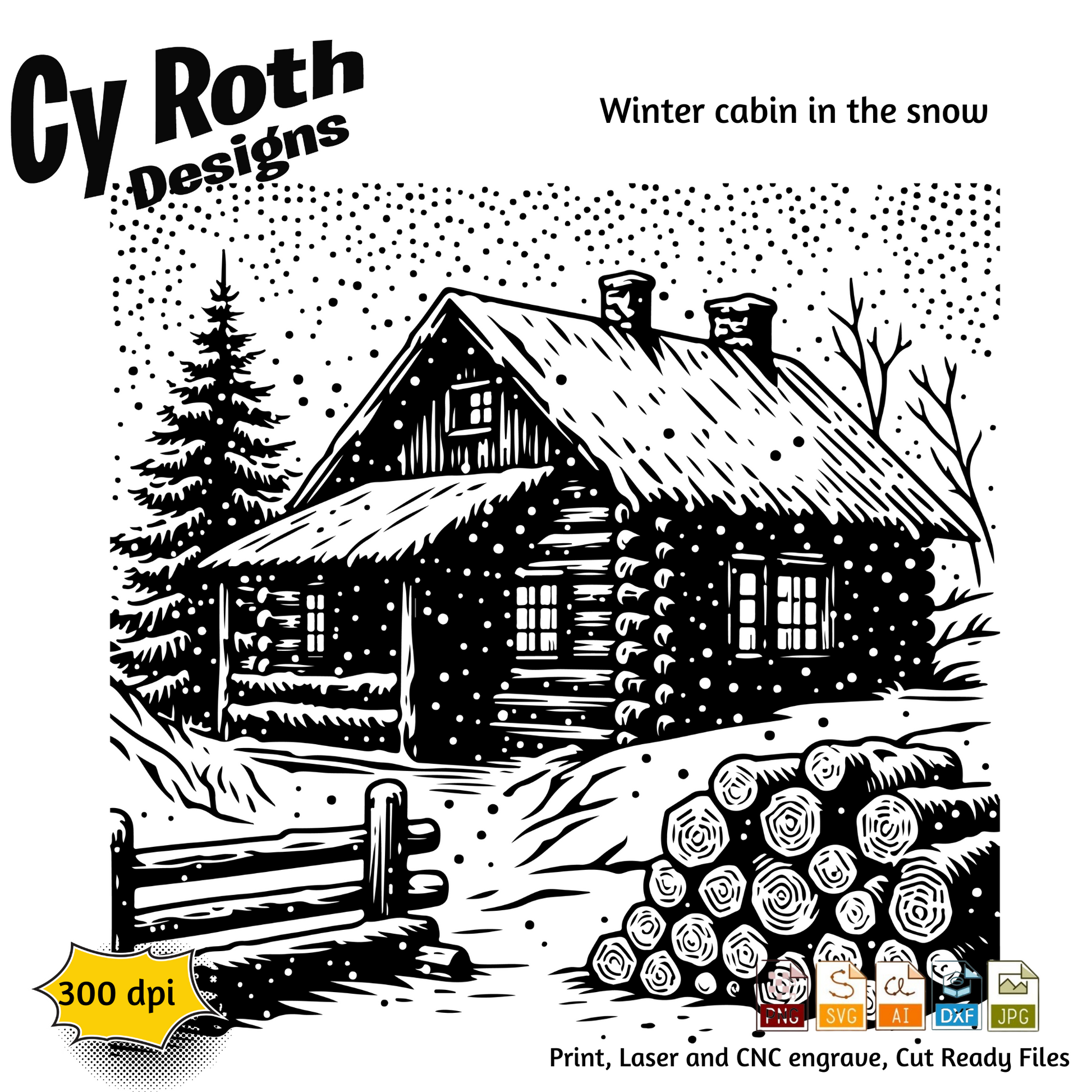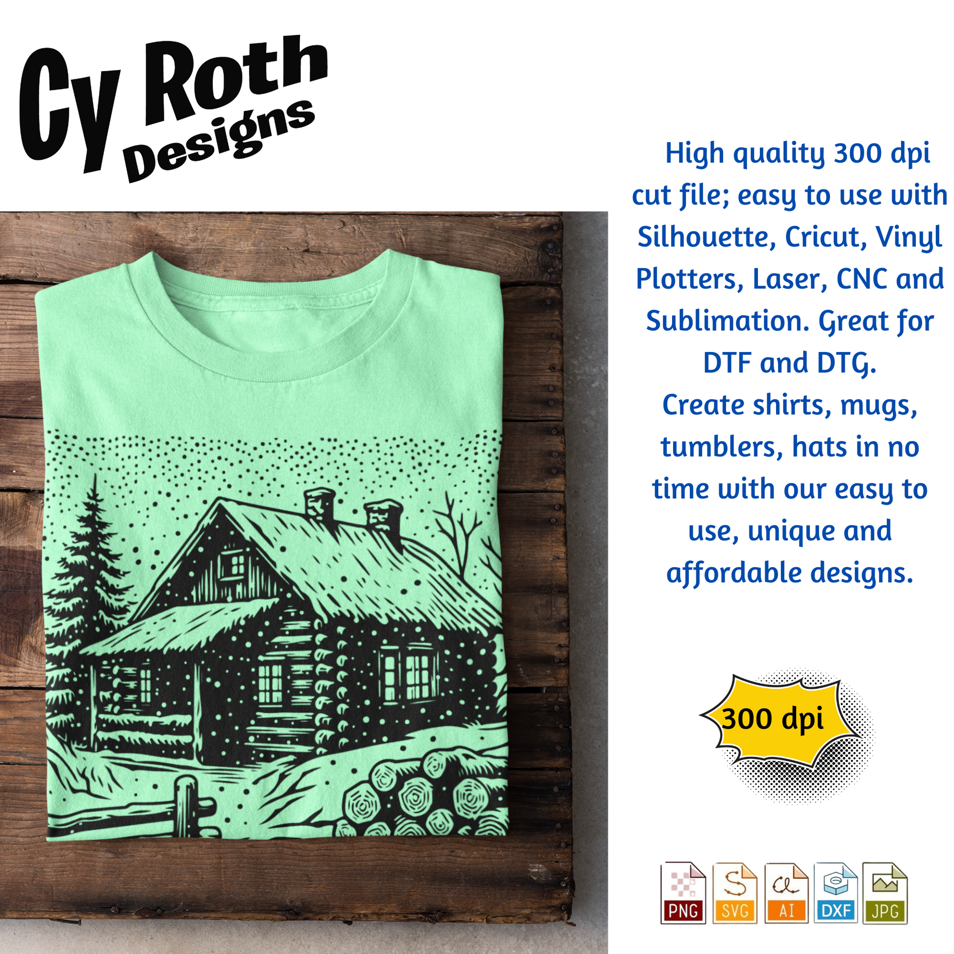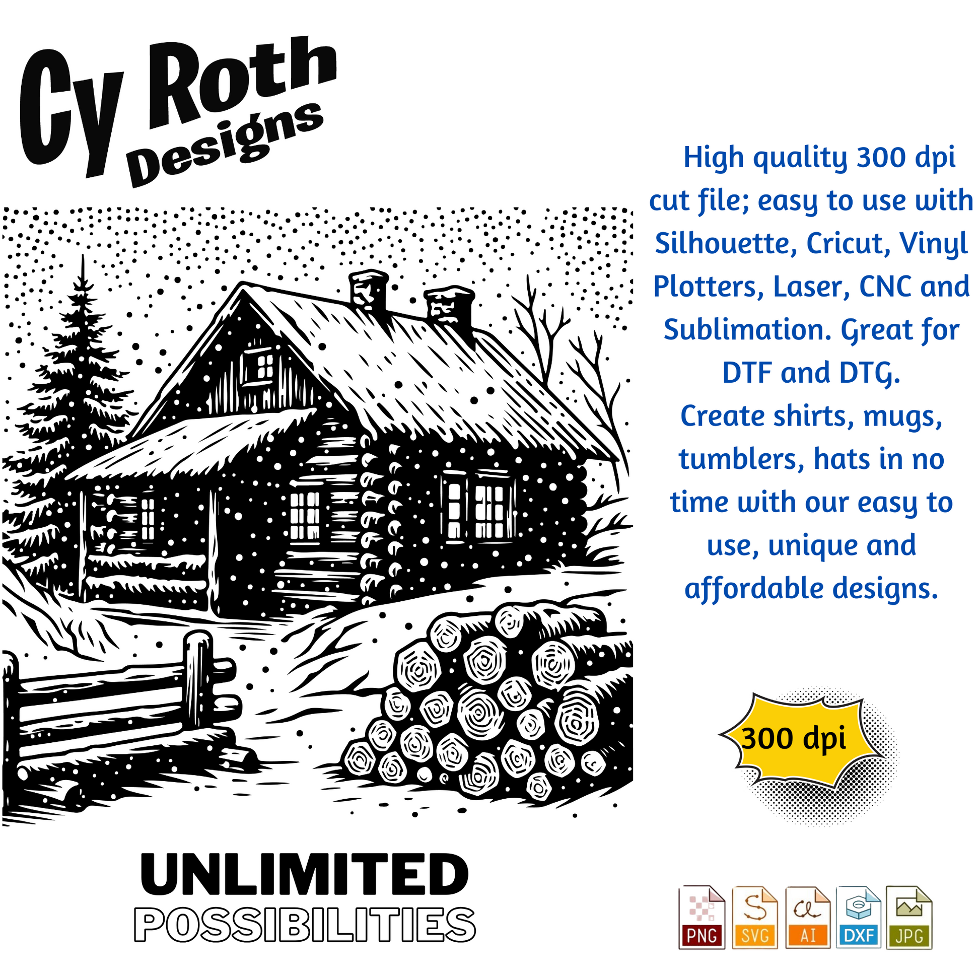 Winter Cabin in the snow svg png jpg ai dxf file, for Silhouette, Cricut, Vinyl Plotters, Laser, CNC and Sublimation. Great for DTF and DTG.