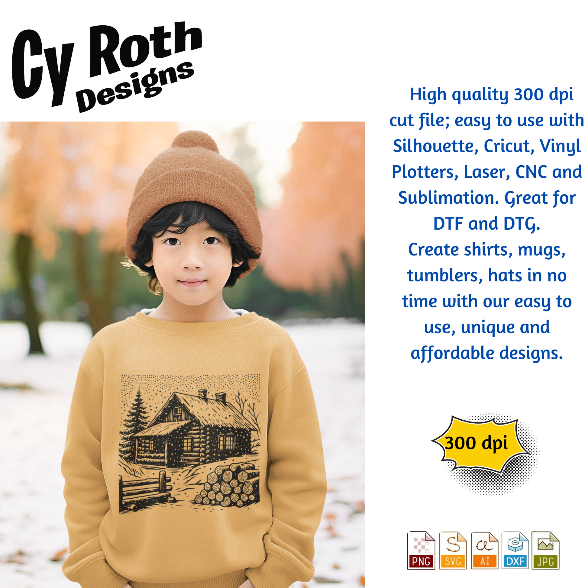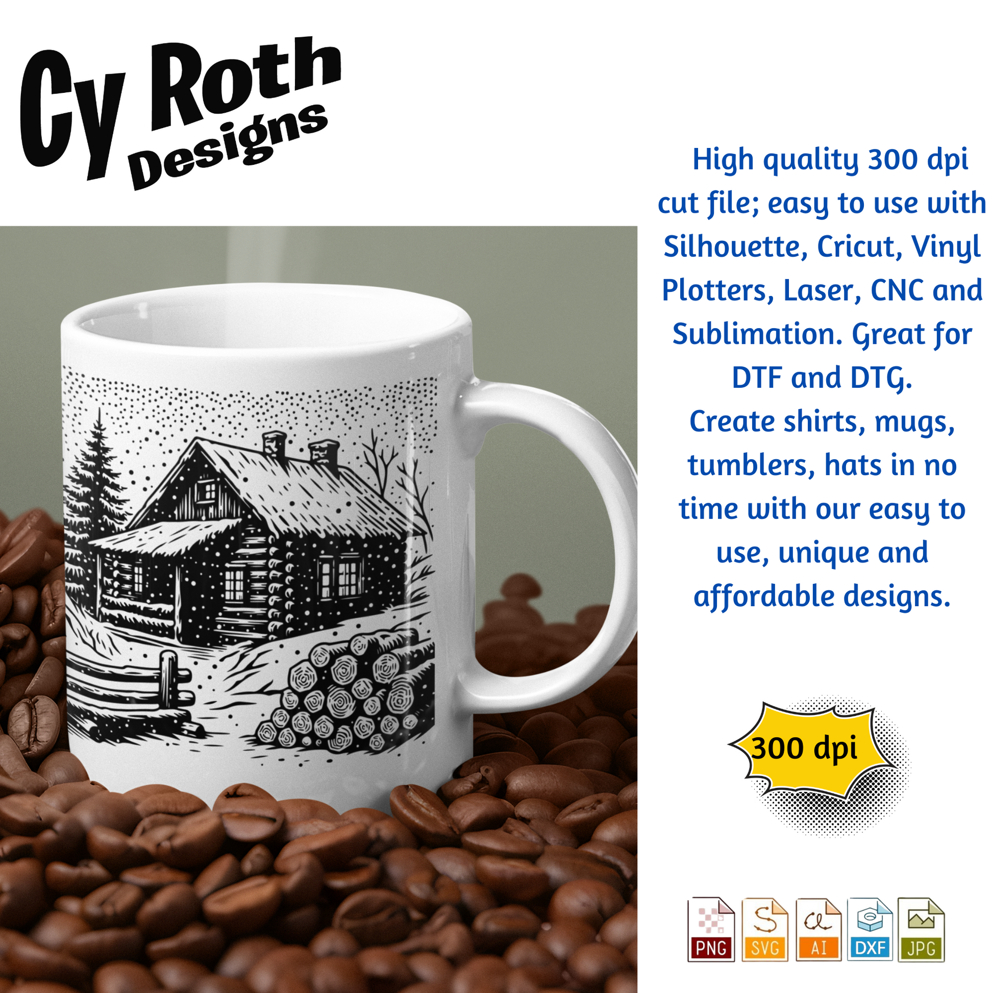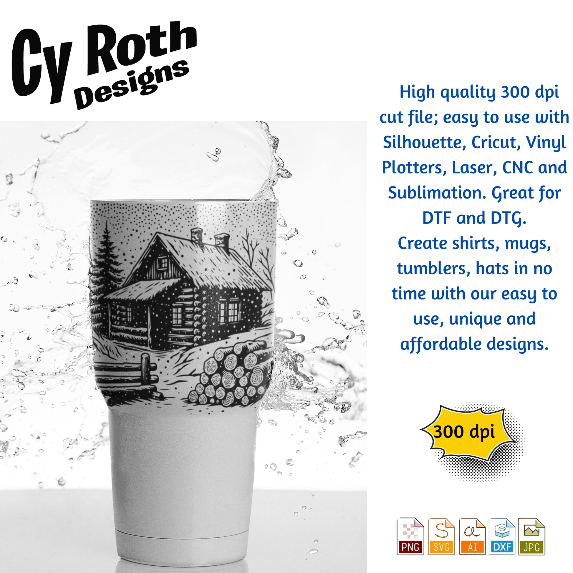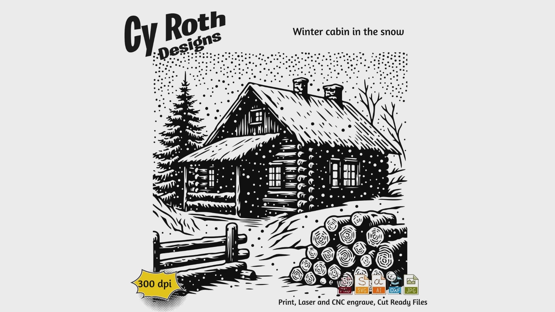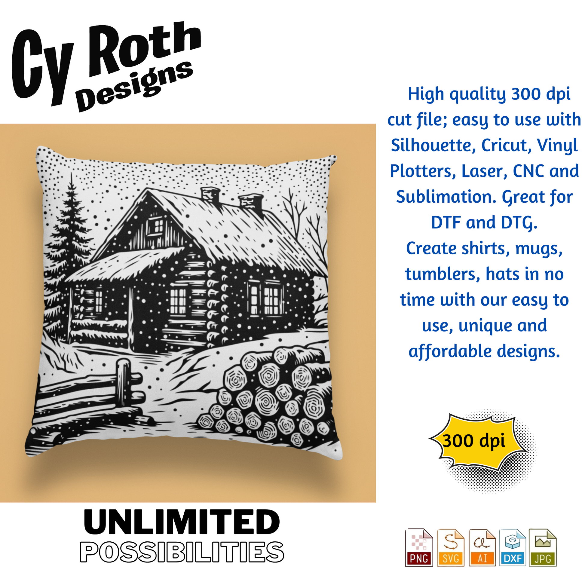Winter Cabin in the snow svg png jpg ai dxf file, for Silhouette, Cricut, Vinyl Plotters, Laser, CNC and Sublimation. Great for DTF and DTG.